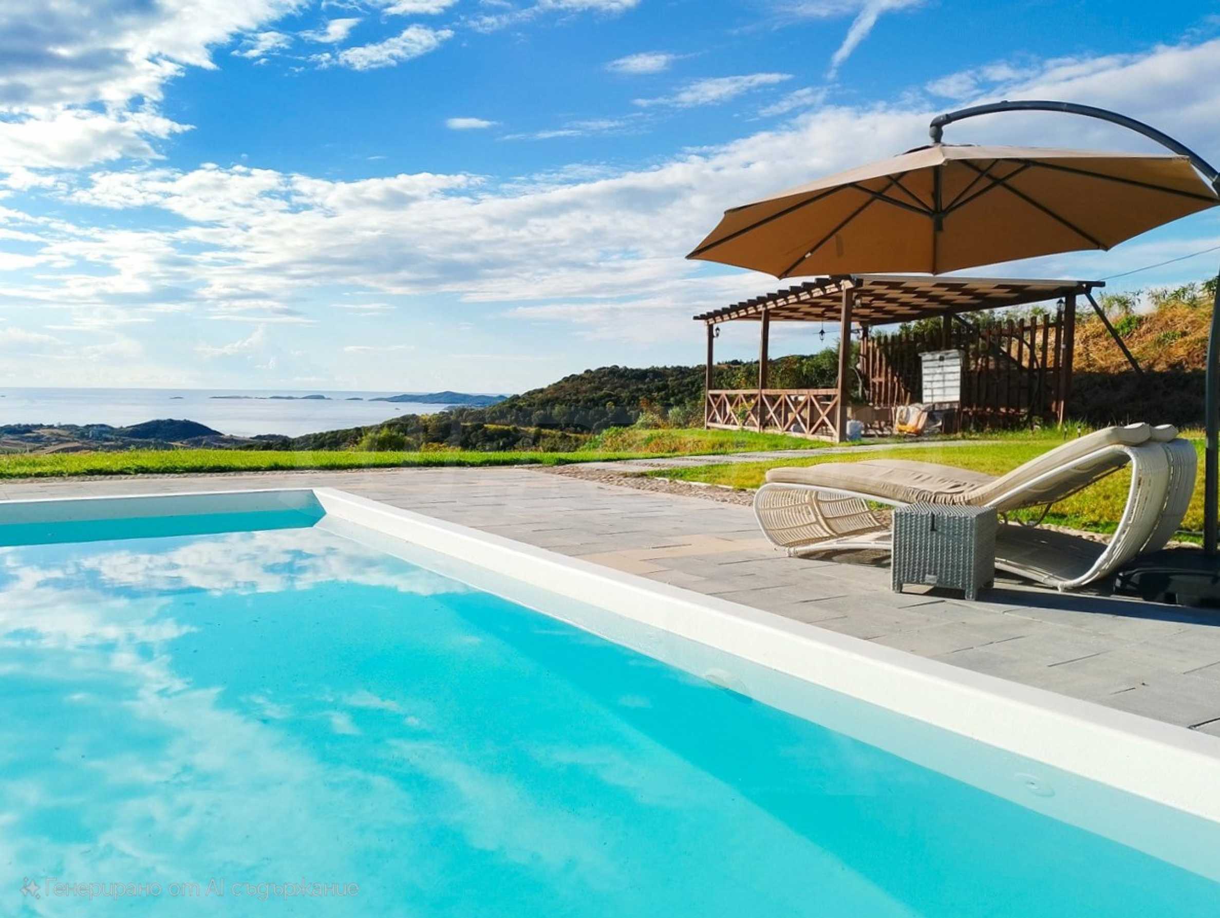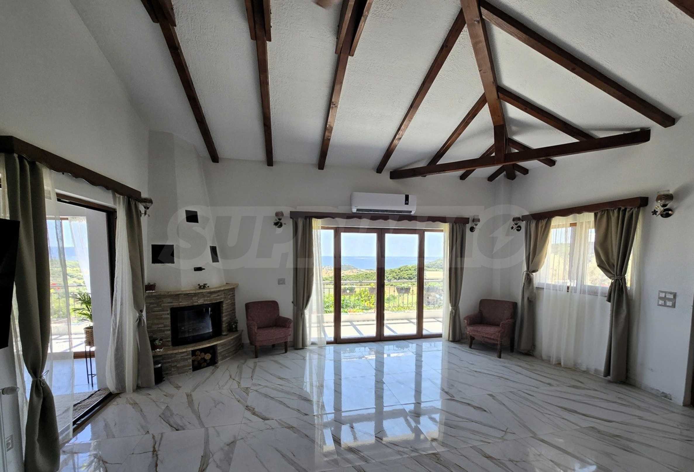 отдельная двухэтажная вилла, расположенная на тихом холме с почти 360° видом на Эгейское море. Вид простирается от залива Иериссос до далекого