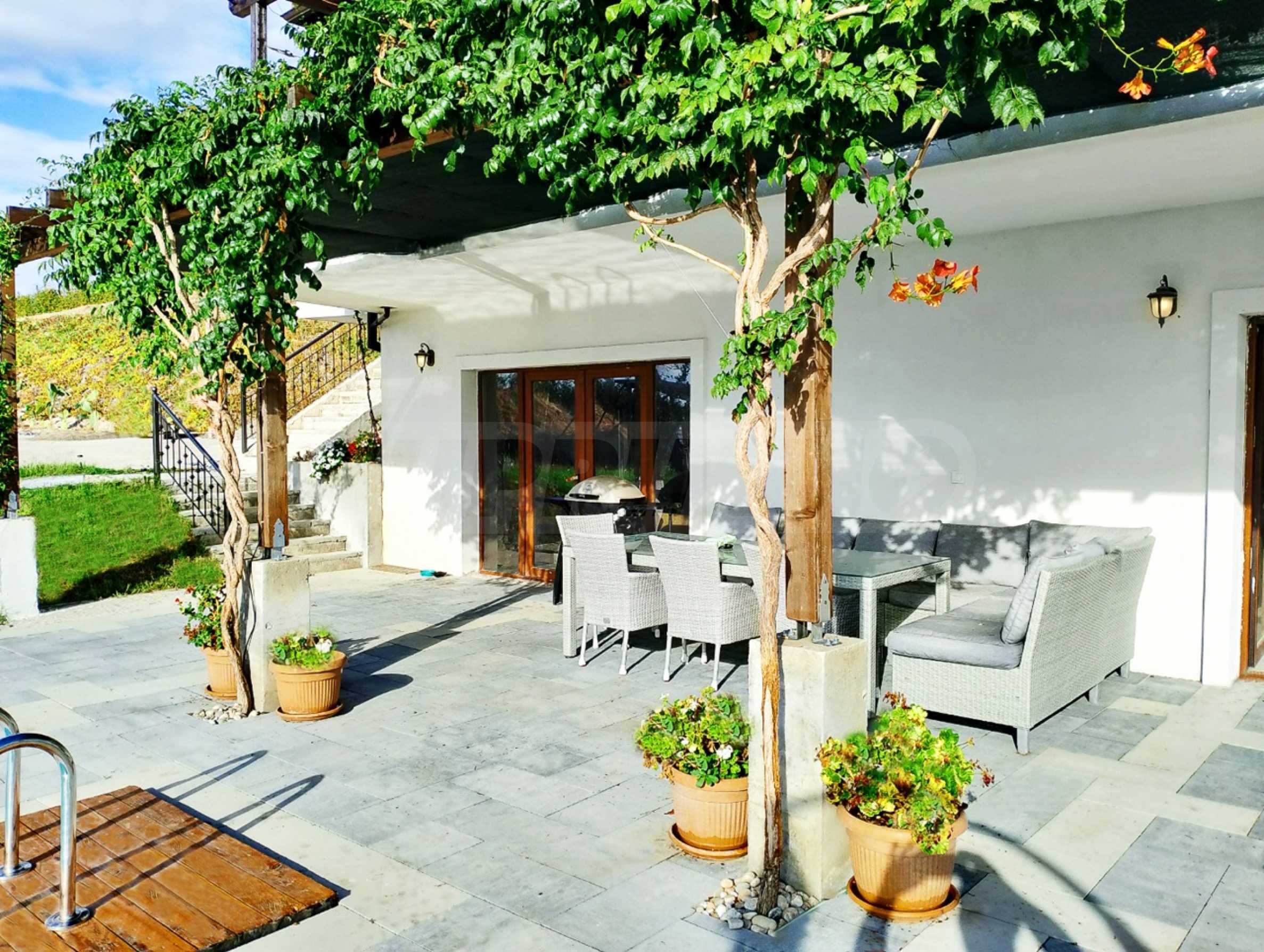 Вилла площадью 220 м? спроектирована на двух отдельных уровнях, каждый из которых имеет отдельный вход.