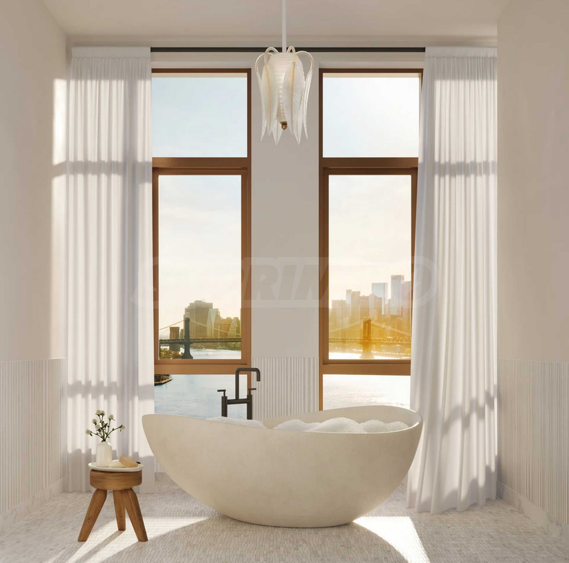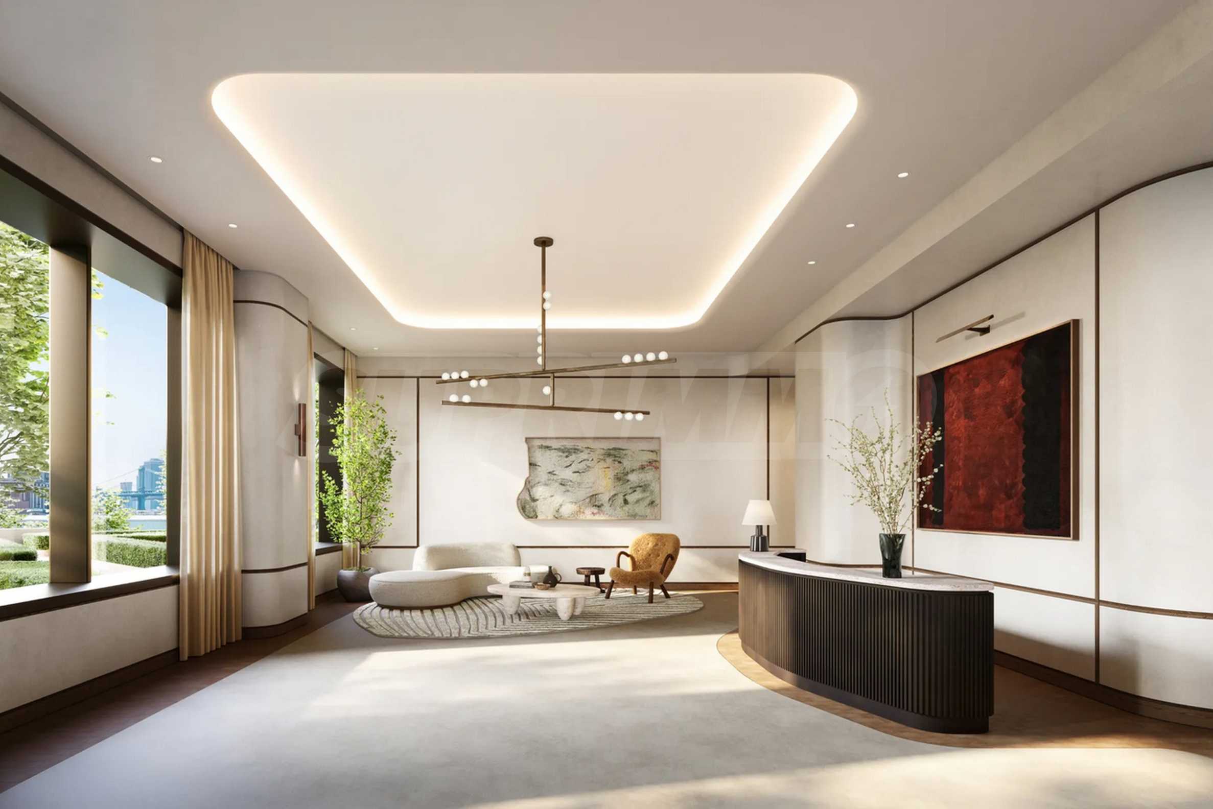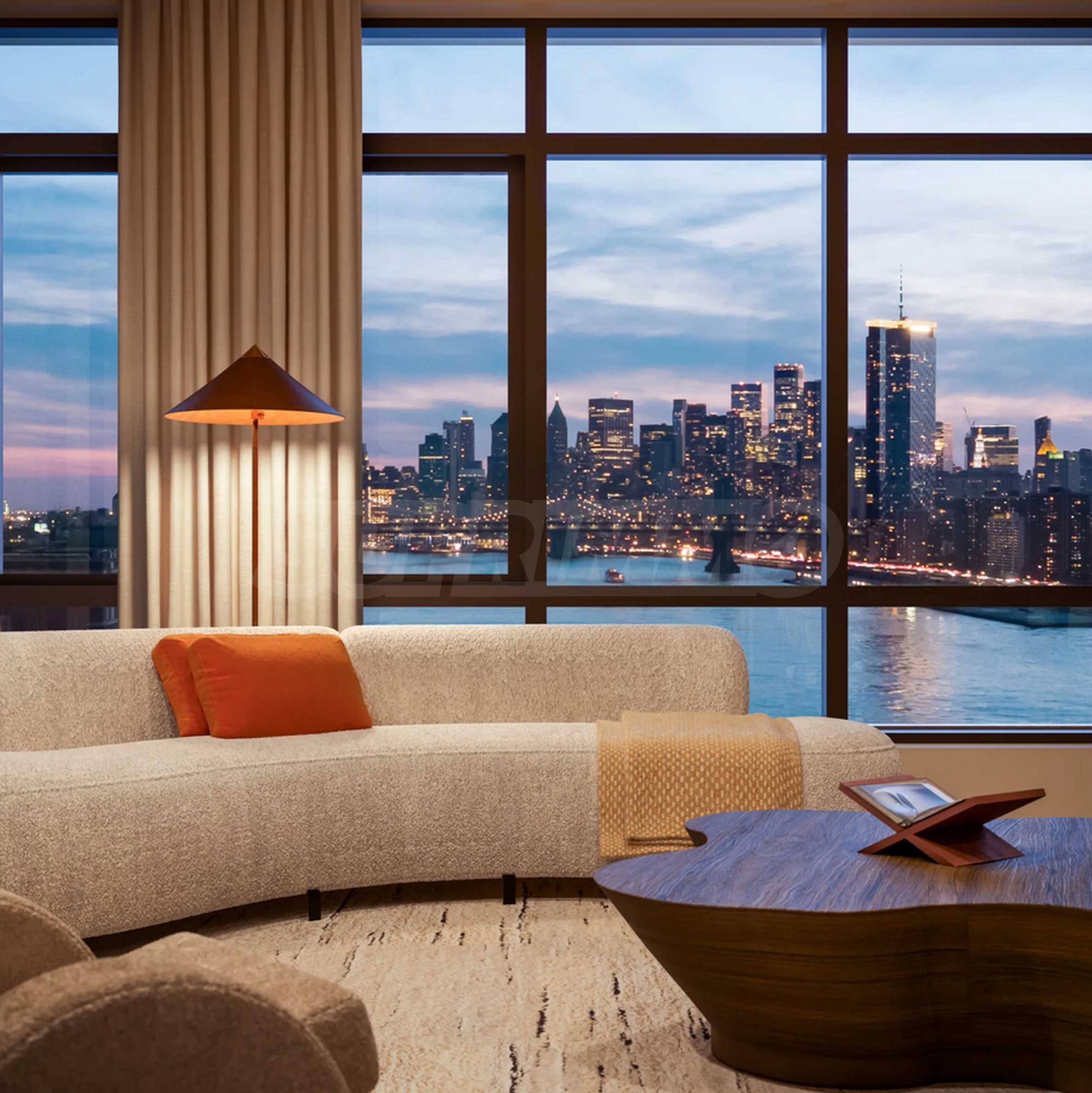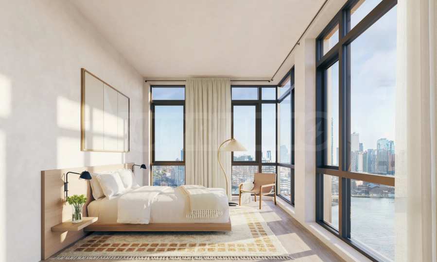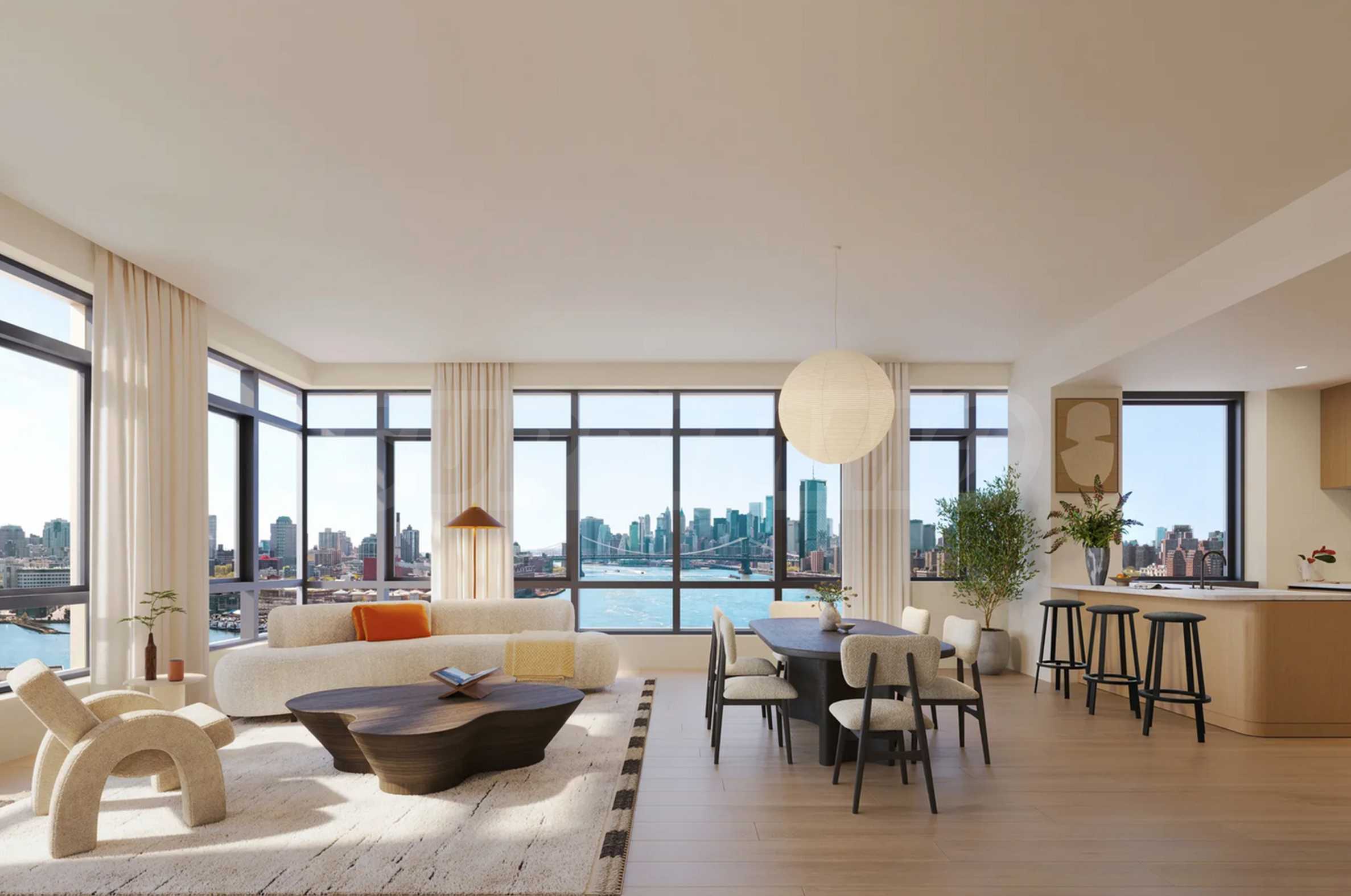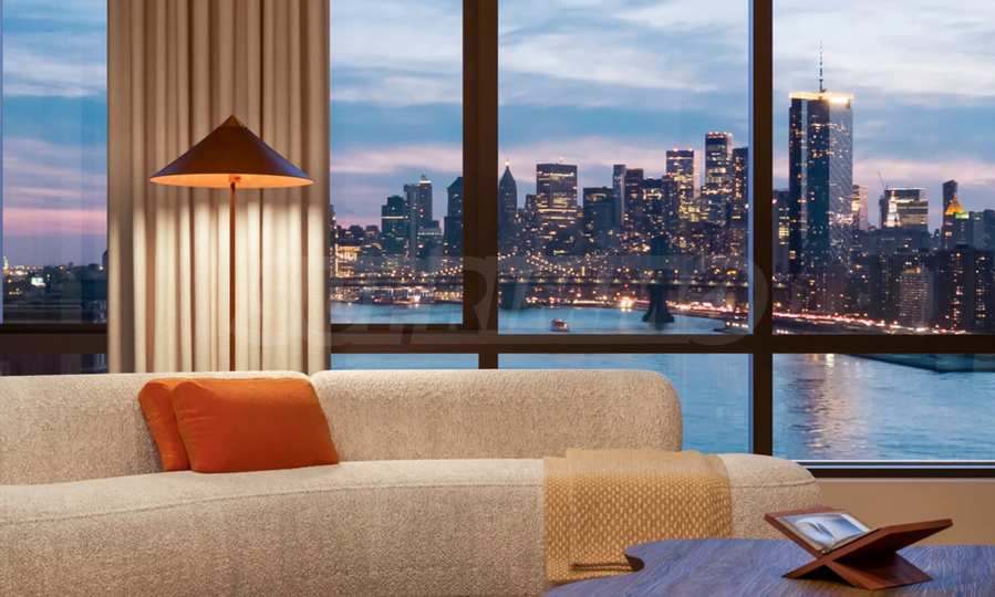 Как только вы войдете, вы почувствуете успокаивающую элегантность — от дубового паркета естественных оттенков до высоких потолков и панорамных окон от пола до потолка, которые наполняют каждую комнату солнечным светом и открывают захватывающие виды на реку, Манхэттен и яркий горизонт Нью-Йорка.