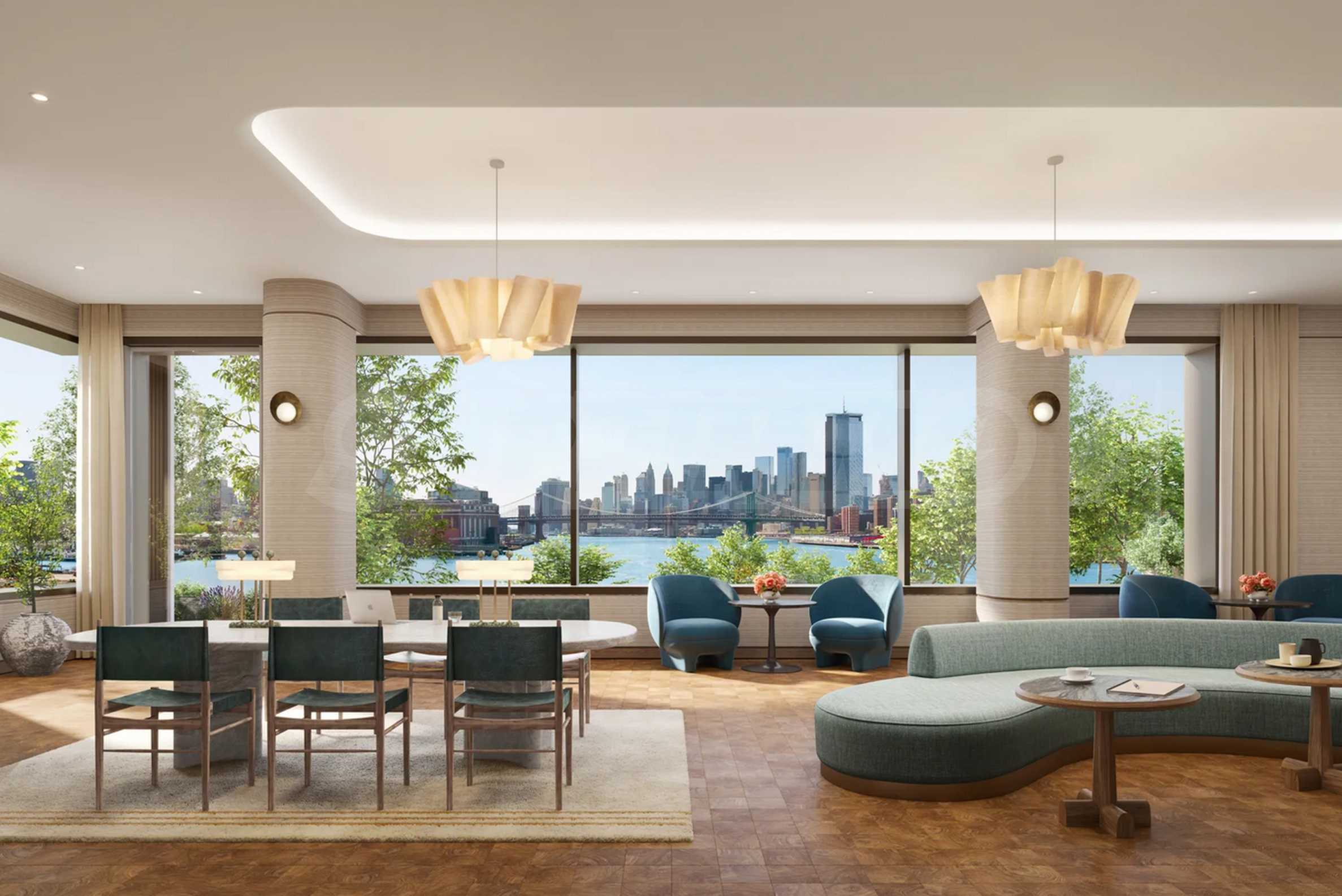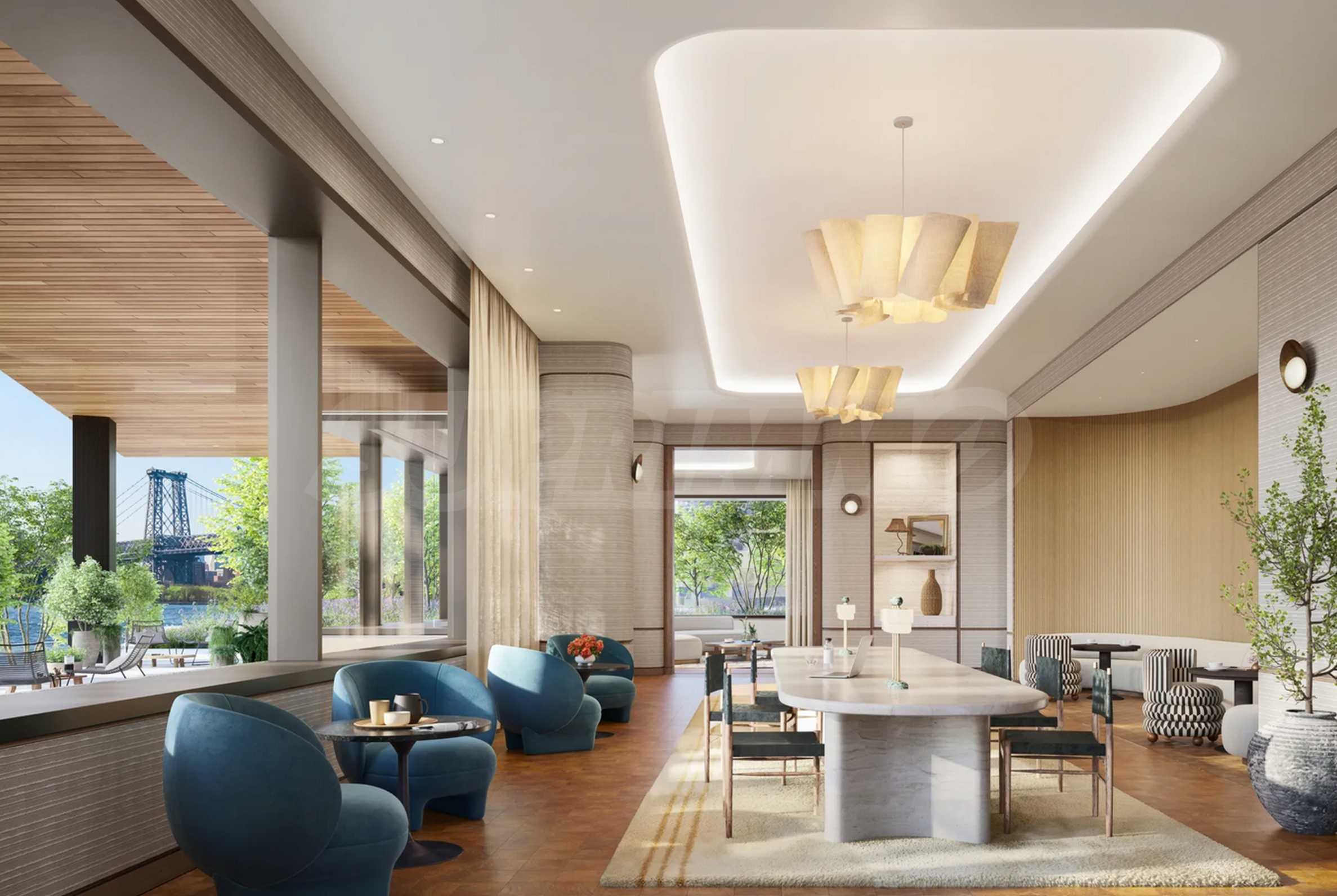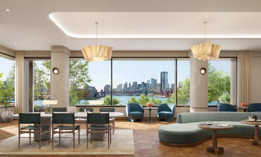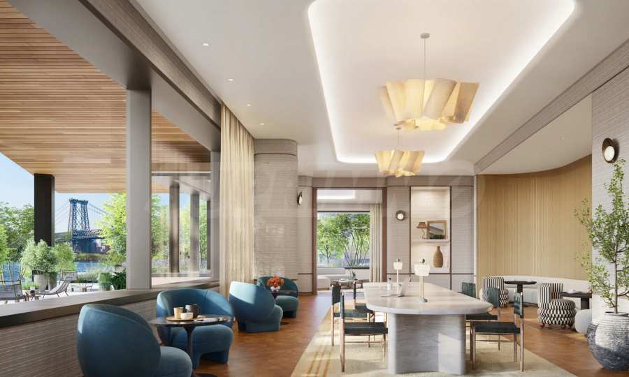 В One Williamsburg Wharf внутренние помещения спроектированы с учетом максимального комфорта, производительности и удовольствия. Элегантные частные лаунжи, комнаты для развлечений, кинотеатр, библиотека, общие рабочие пространства, а также тихие зеленые зоны идеально подходят для медитации, сосредоточения и вдохновения или просто для наслаждения восходом солнца над рекой. Независимо от того, проводите ли вы деловую встречу или делите бокал вина с друзьями, атмосфера всегда стильная, уютная и вдохновляющая.