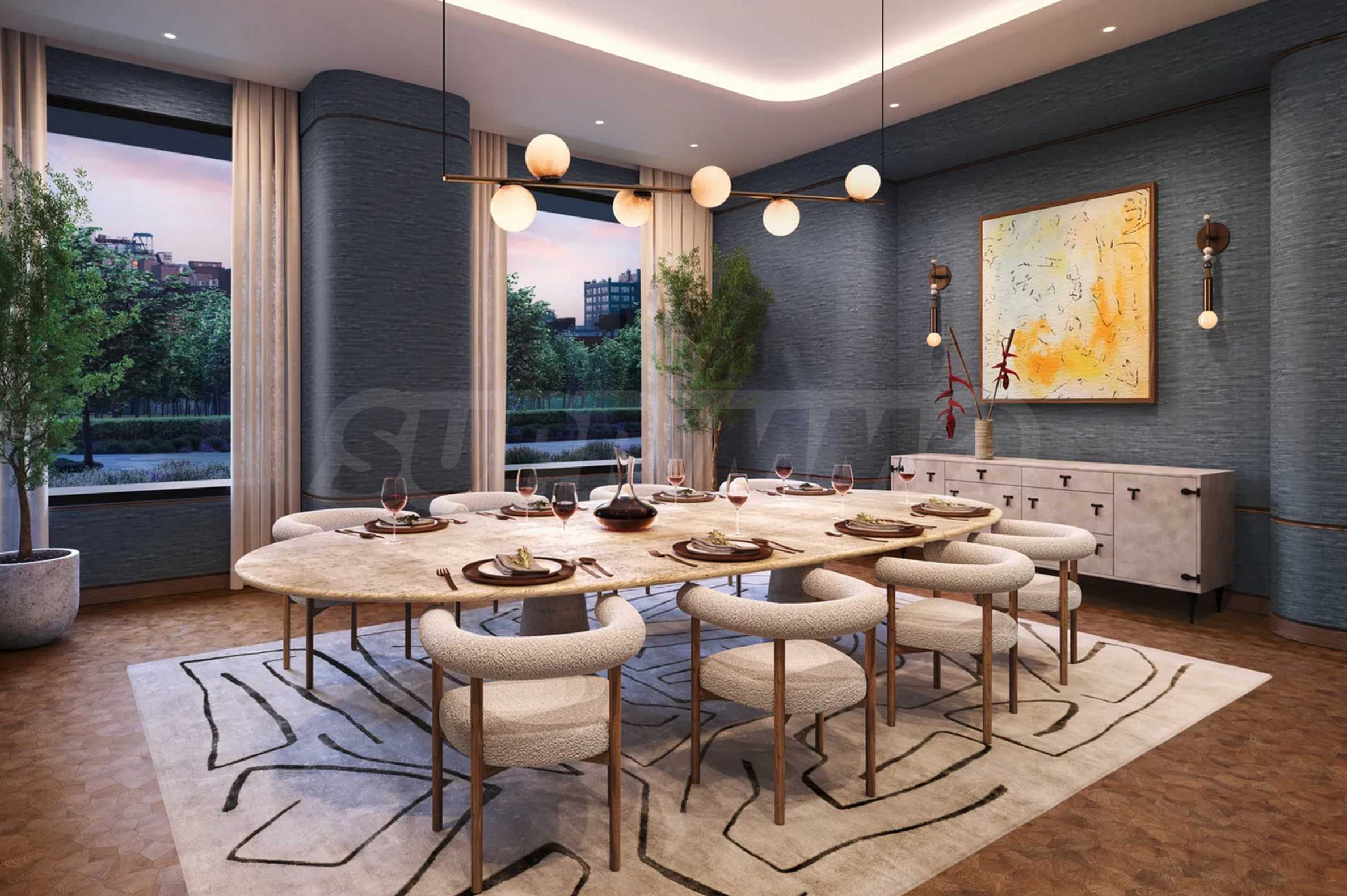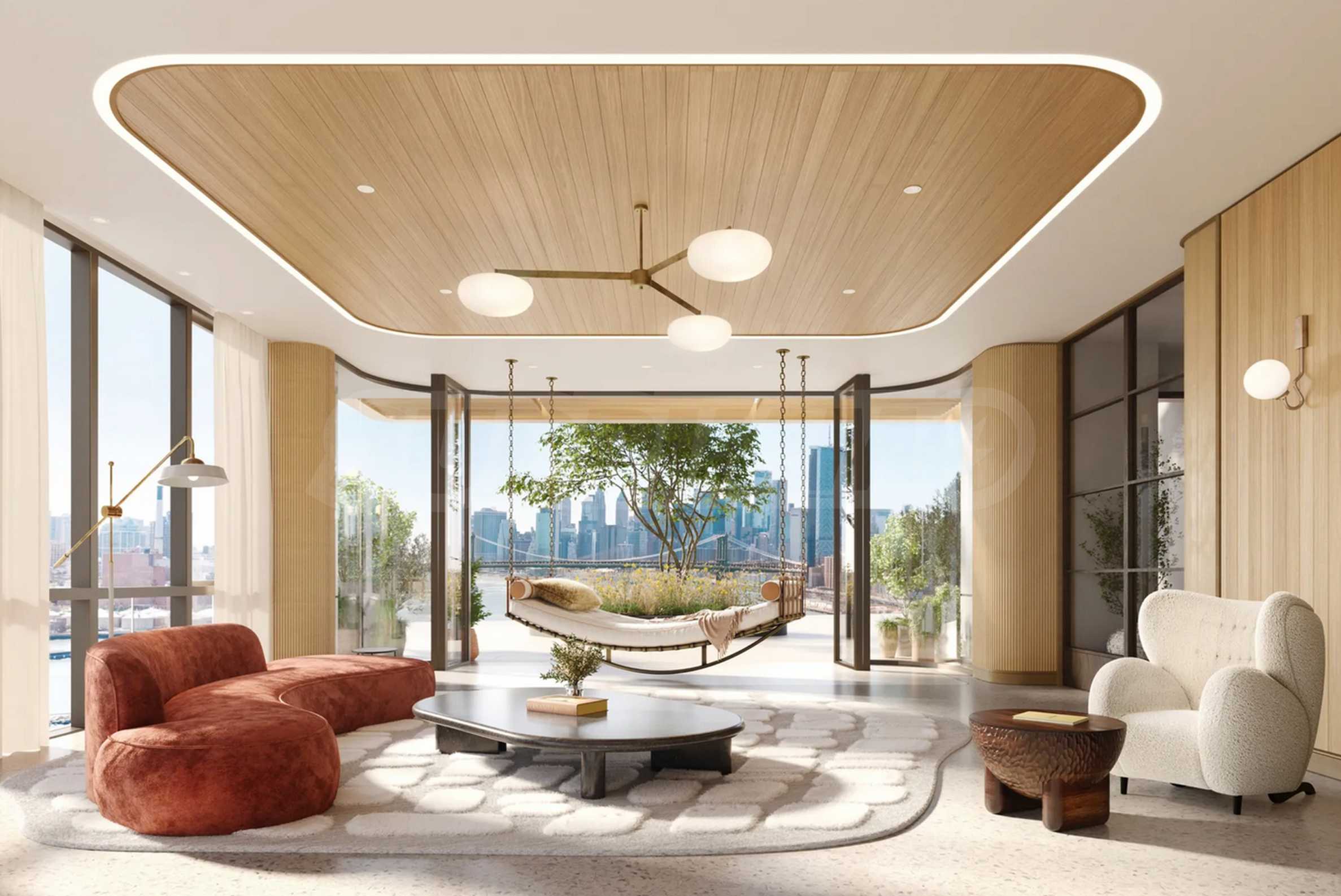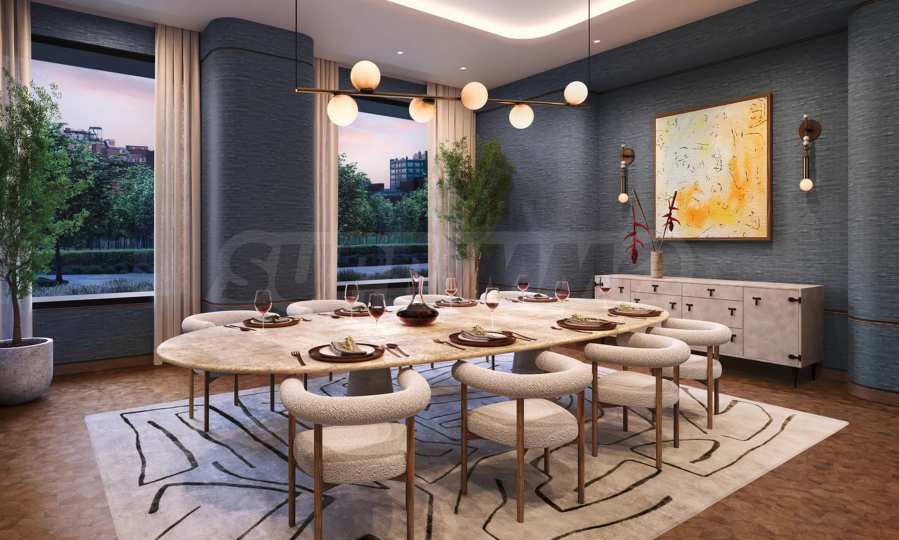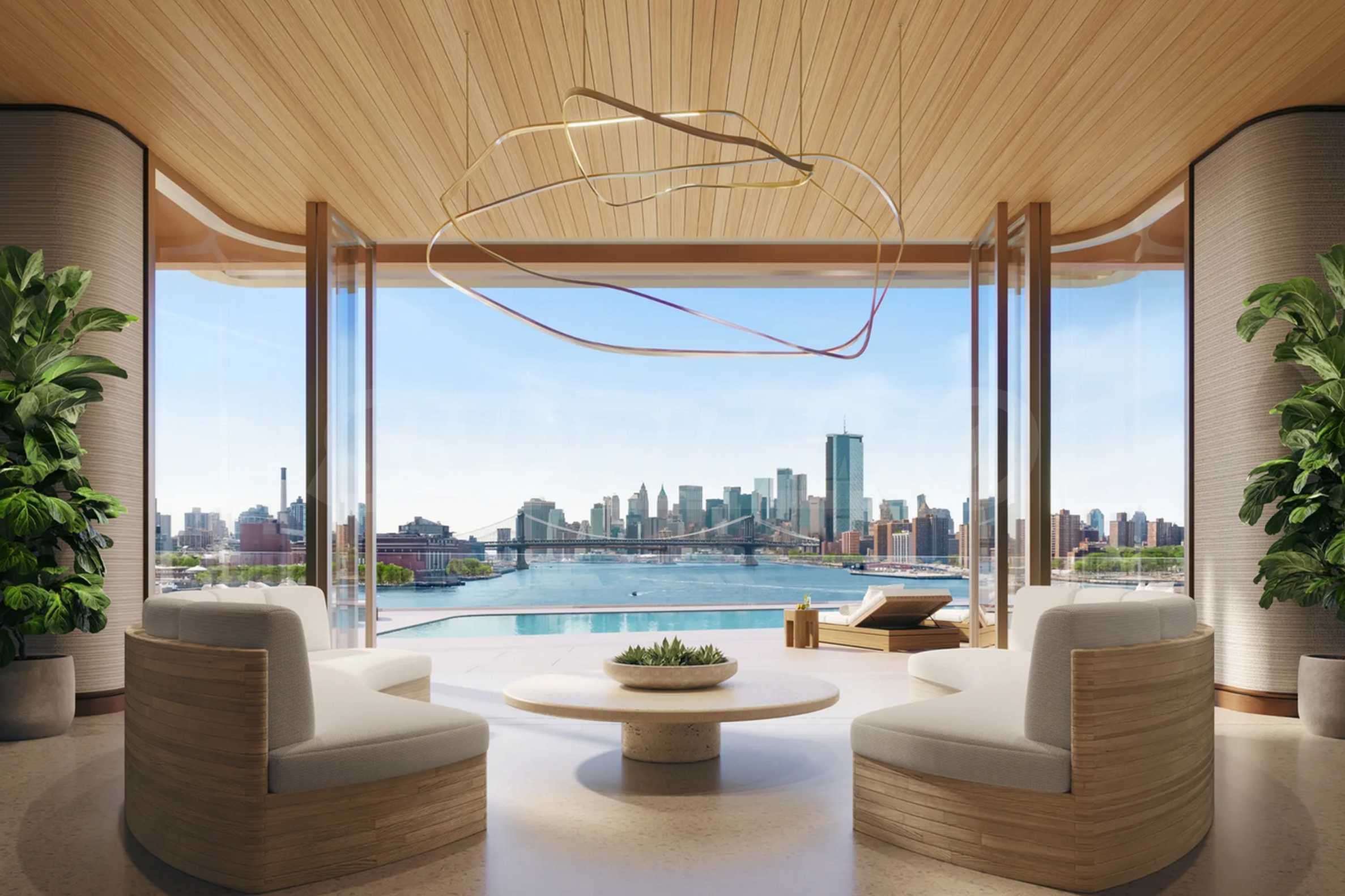 В One Williamsburg Wharf внутренние помещения спроектированы с учетом максимального комфорта, производительности и удовольствия. Элегантные частные лаунжи, комнаты для развлечений, кинотеатр, библиотека, общие рабочие пространства, а также тихие зеленые зоны идеально подходят для медитации, сосредоточения и вдохновения или просто для наслаждения восходом солнца над рекой. Независимо от того, проводите ли вы деловую встречу или делите бокал вина с друзьями, атмосфера всегда стильная, уютная и вдохновляющая.