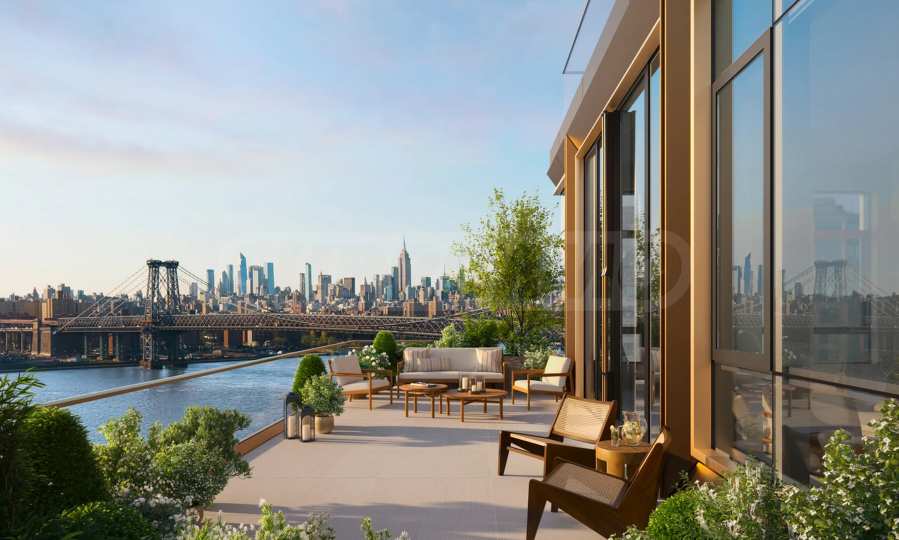 • Квартиры с тремя спальнями и тремя ванными комнатами — настоящие частные дома в небе — с просторными гостиными, отдельными обеденными зонами, встроенными шкафами, прачечными и часто — в некоторых резиденциях имеются просторные террасы с прямым видом на Манхэттен или реку.