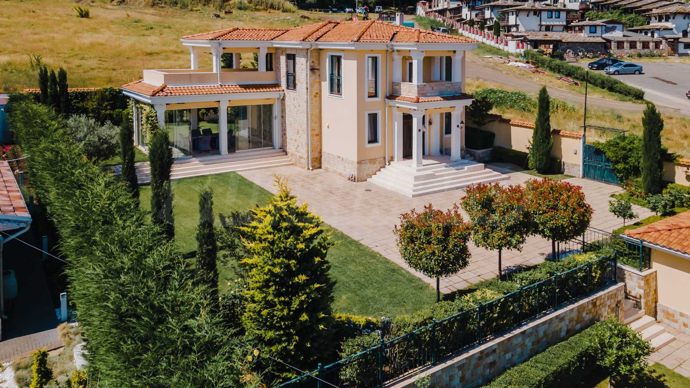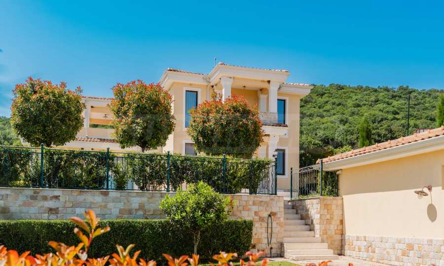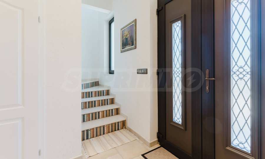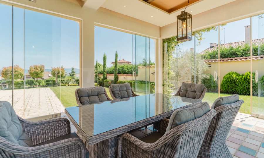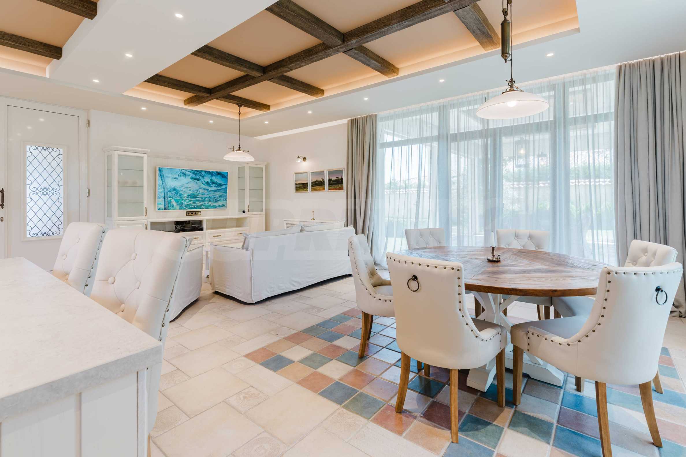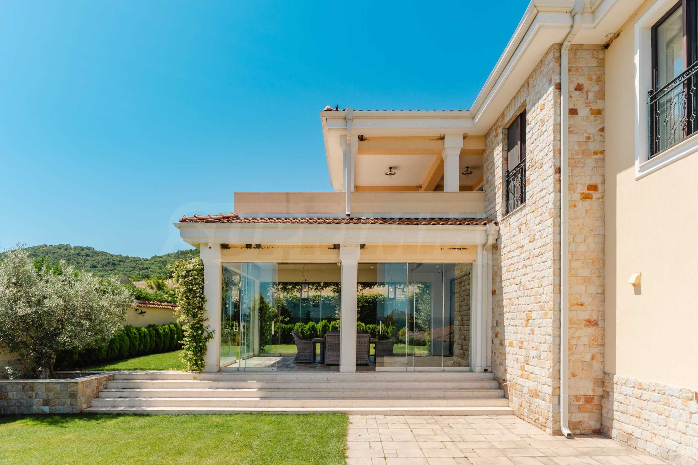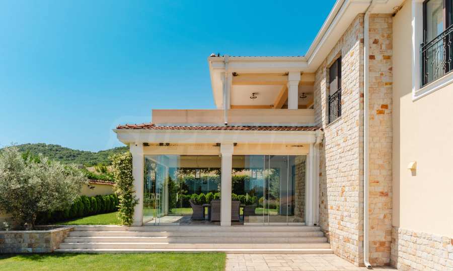 Эта вилла впечатляет своим элегантным дизайном, вдохновленным средиземноморской архитектурой, в сочетании с элементами традиций болгарского Возрождения. Она сочетает в себе роскошь, комфорт и современные технологии.