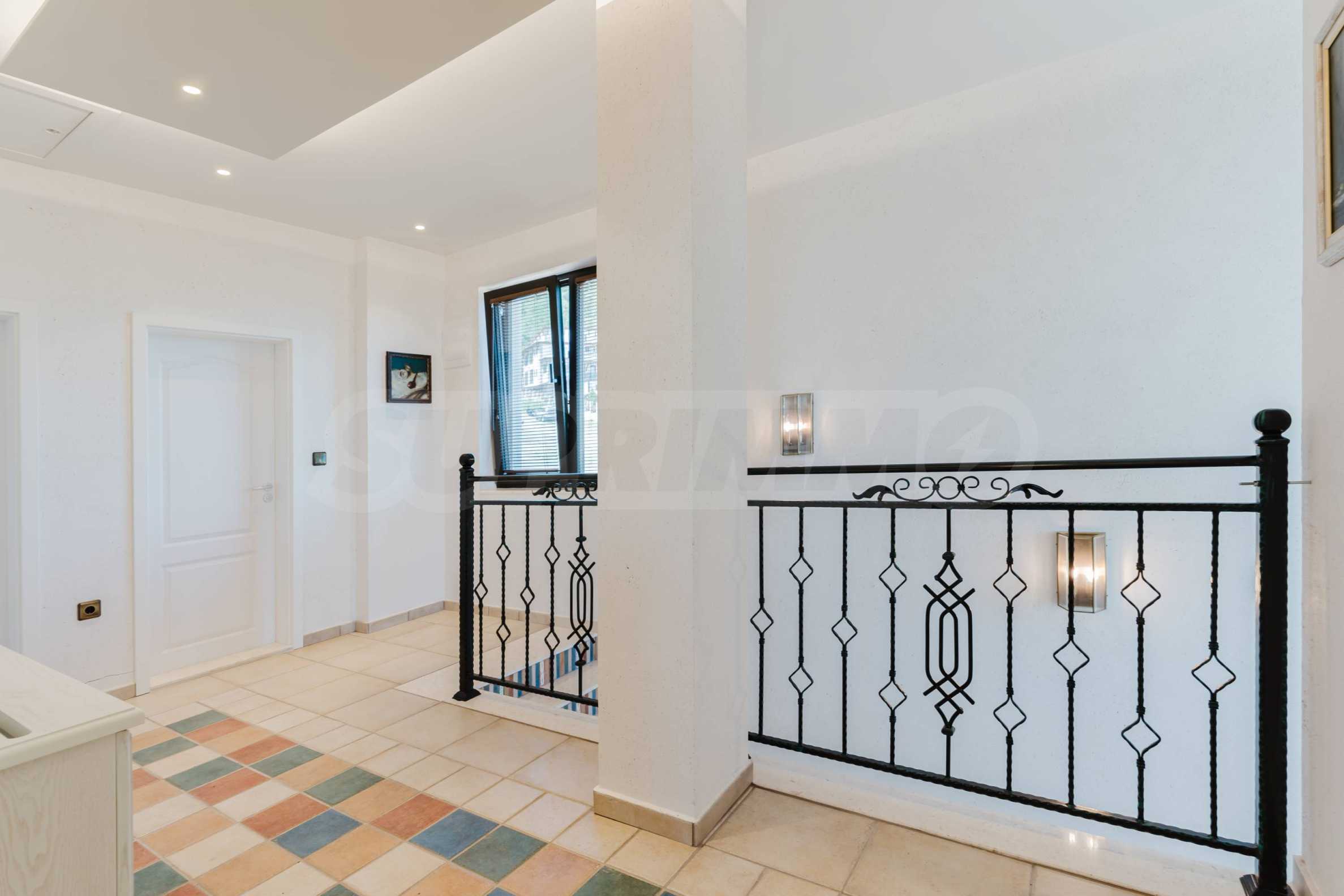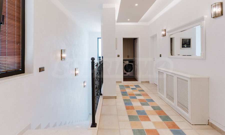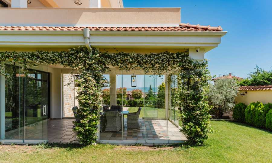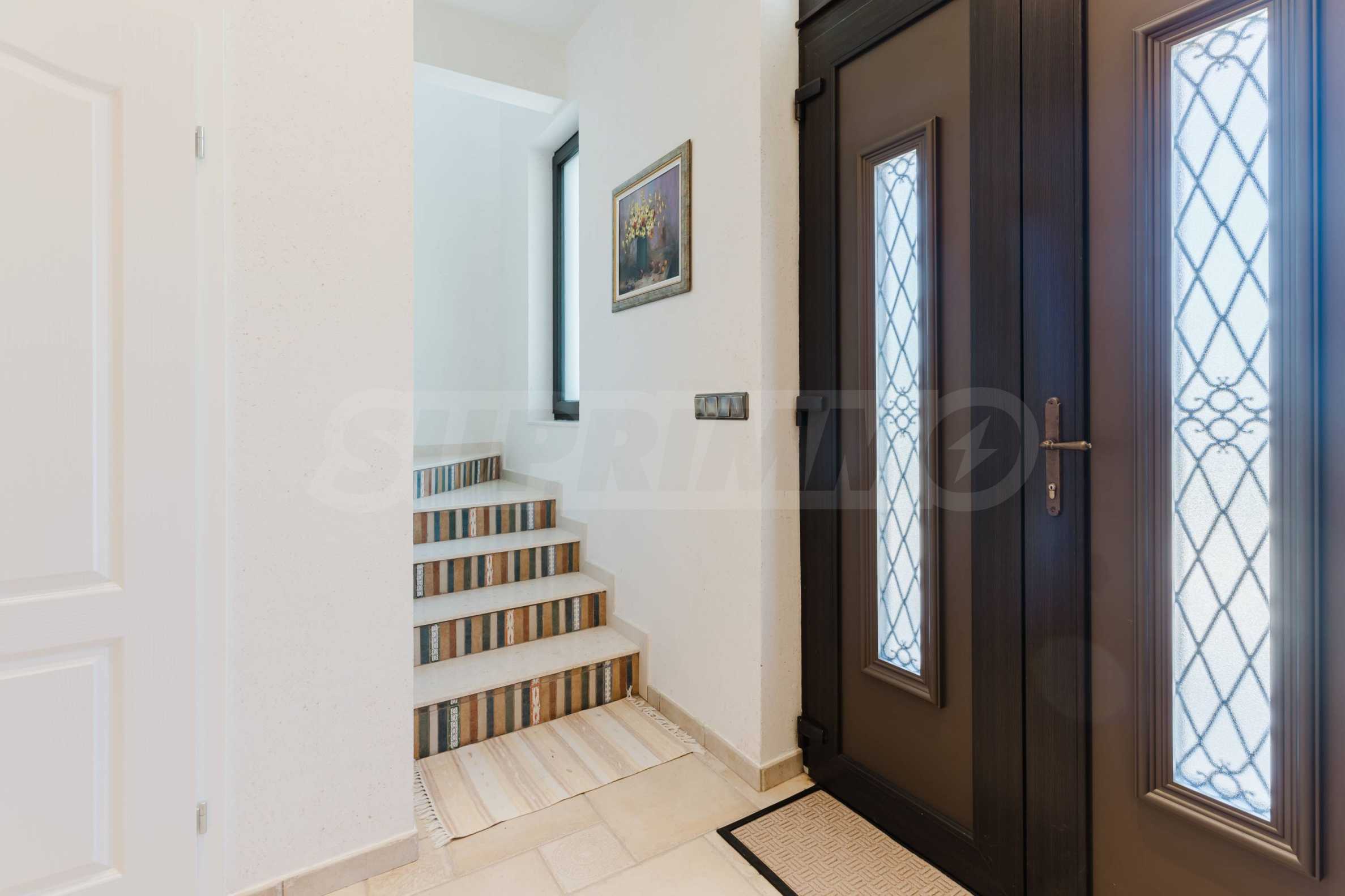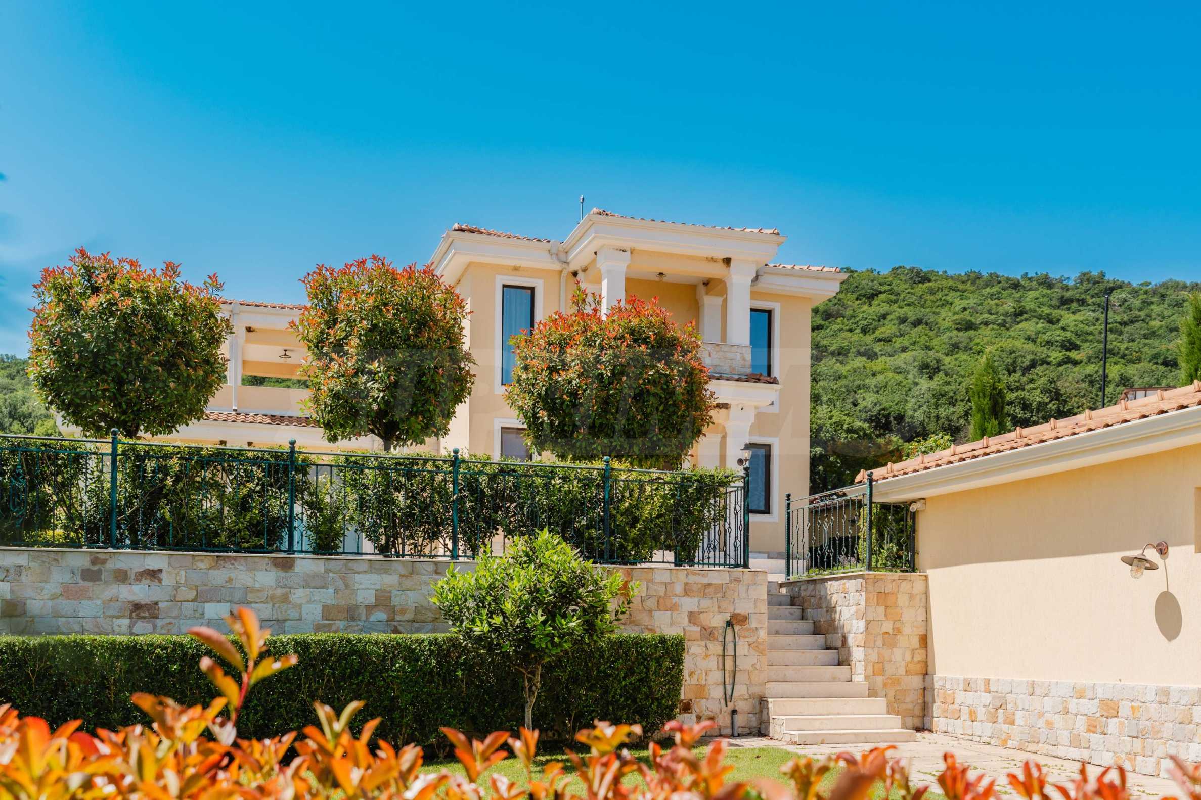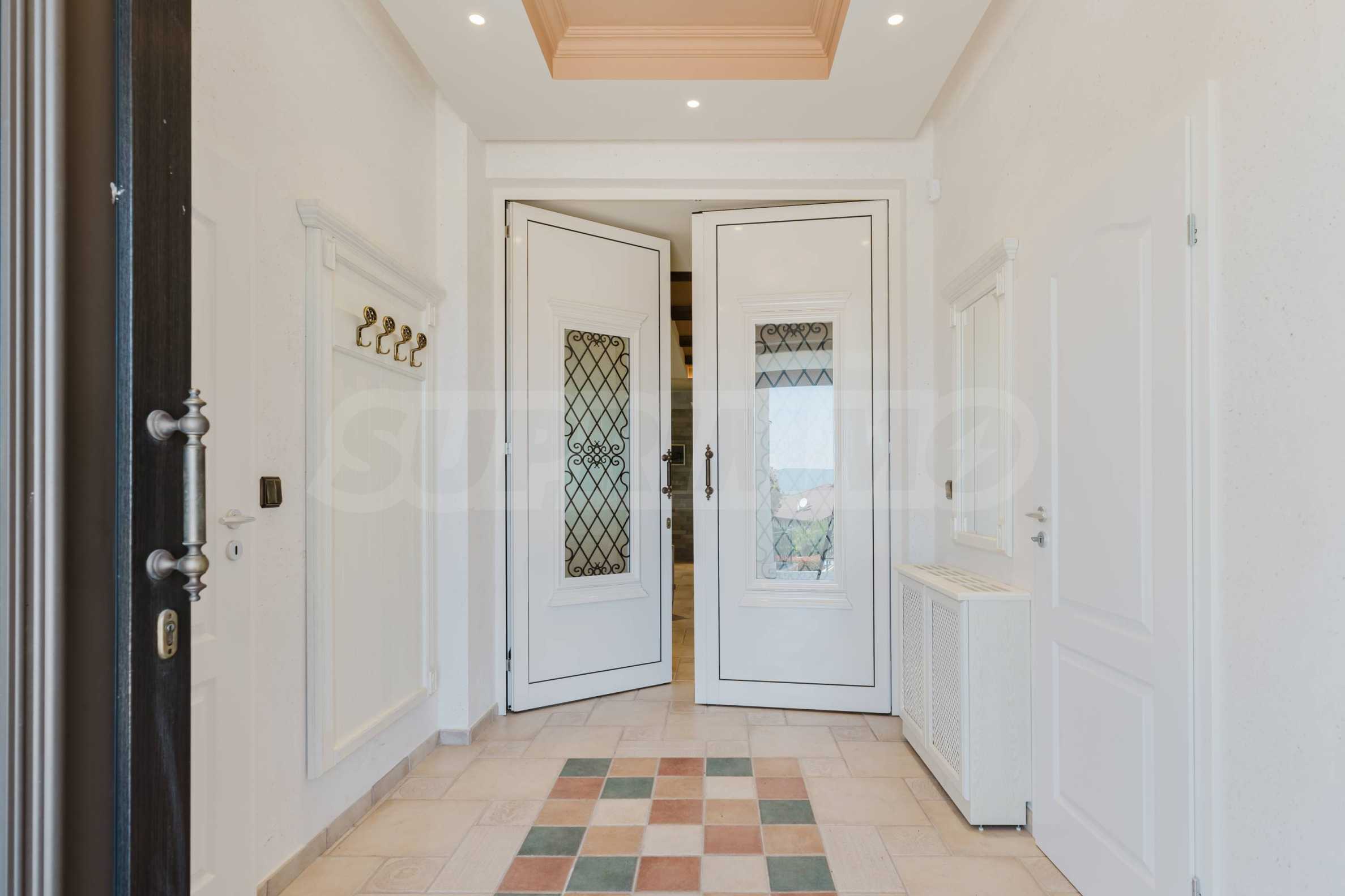 Эта вилла впечатляет своим элегантным дизайном, вдохновленным средиземноморской архитектурой, в сочетании с элементами традиций болгарского Возрождения. Она сочетает в себе роскошь, комфорт и современные технологии.