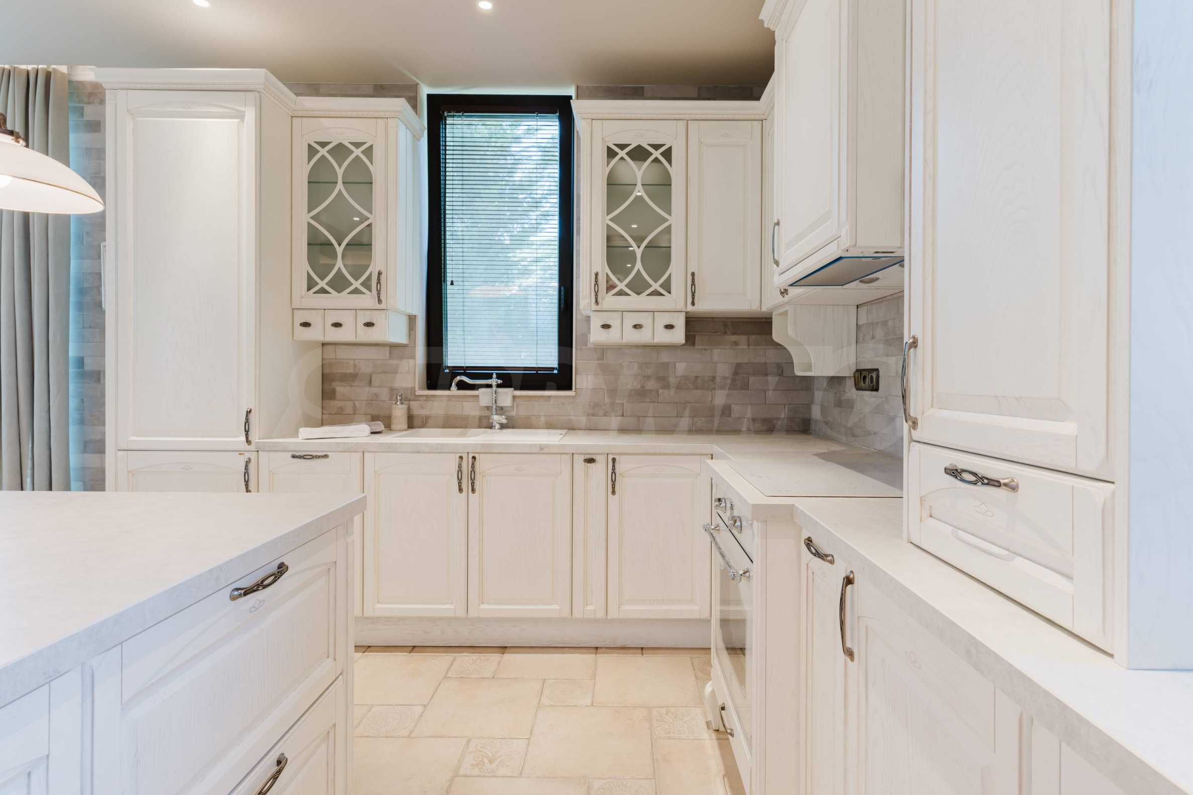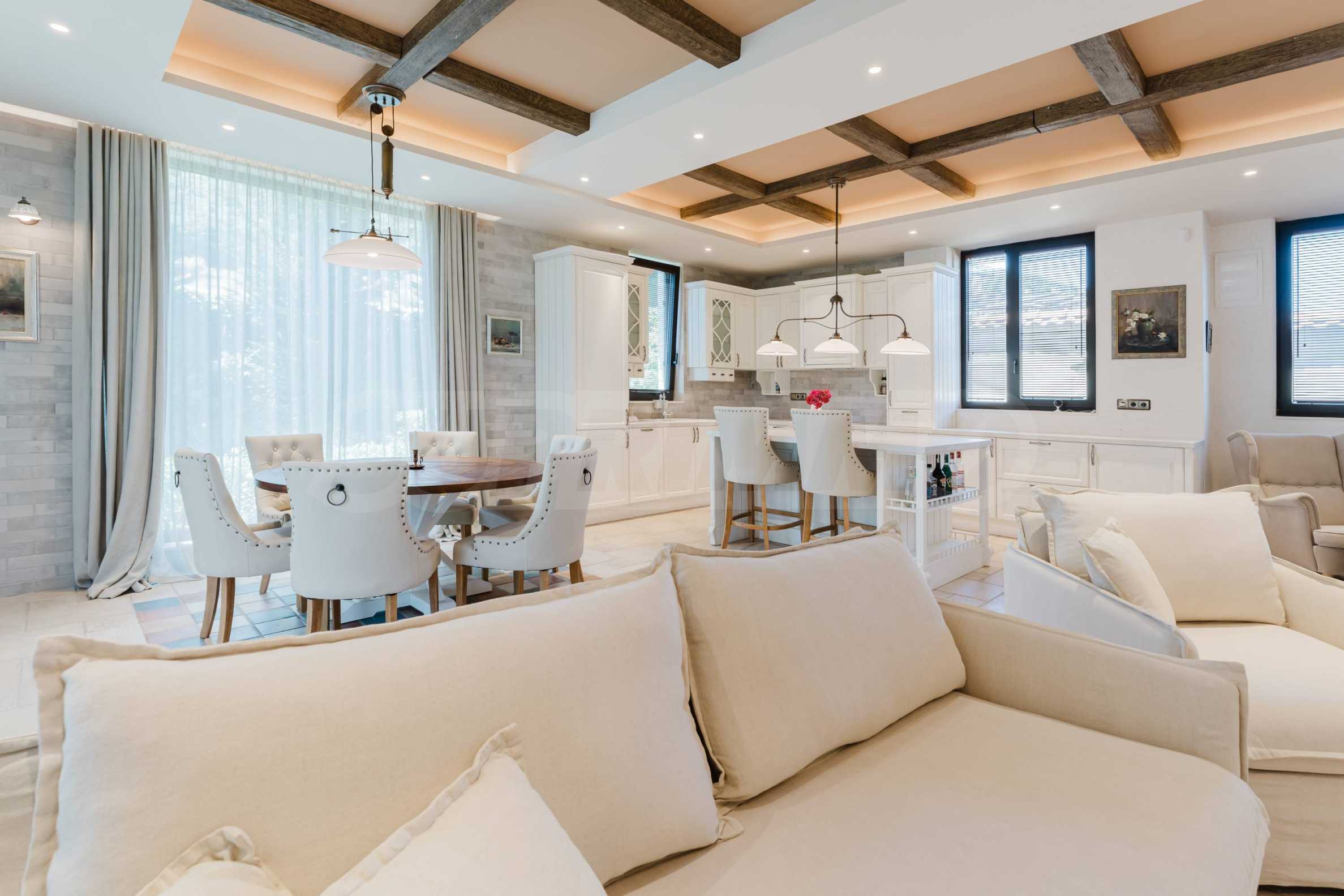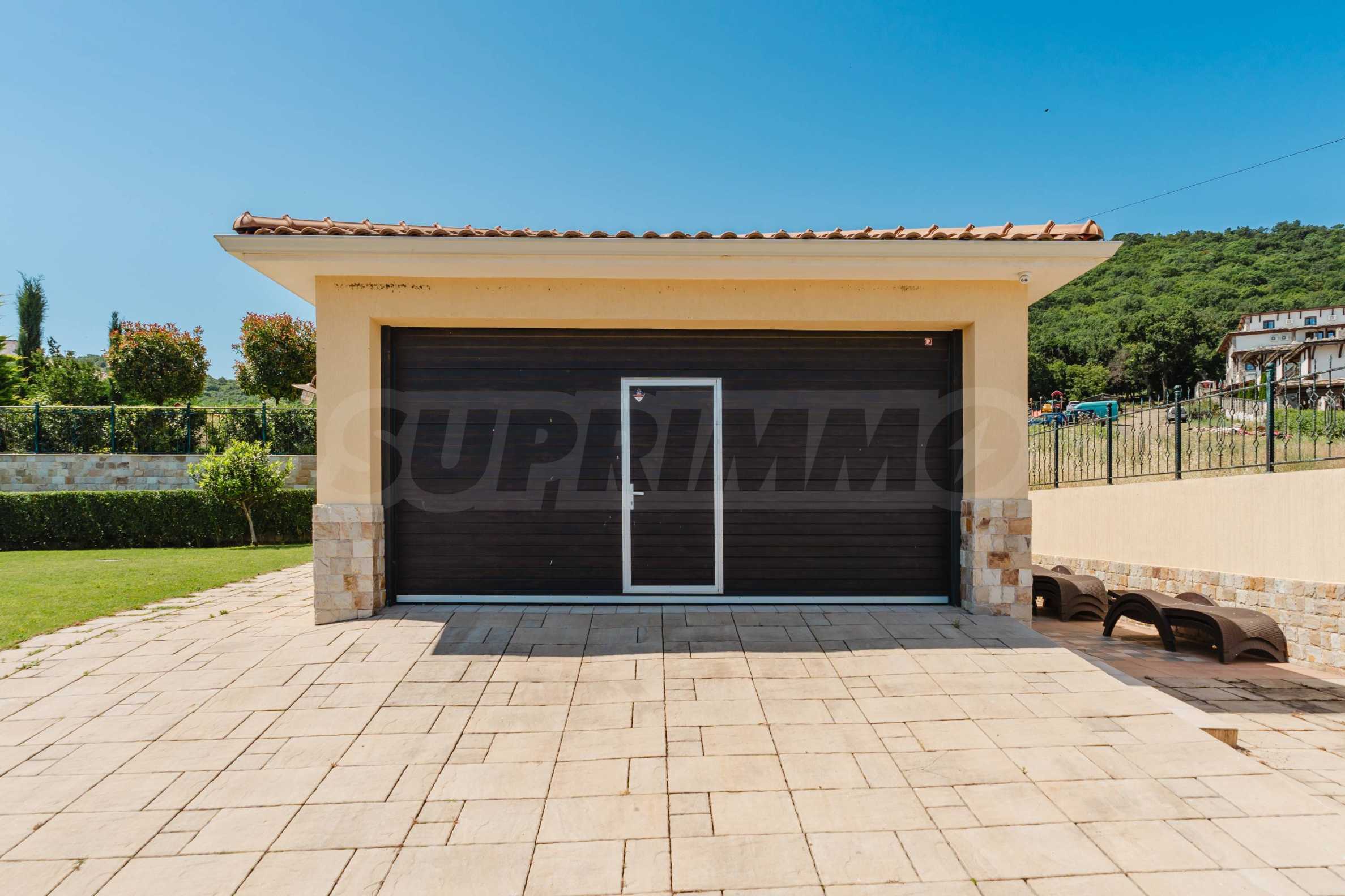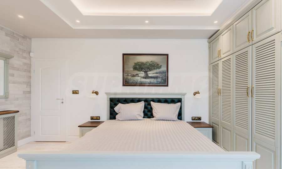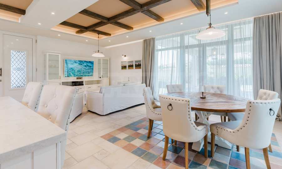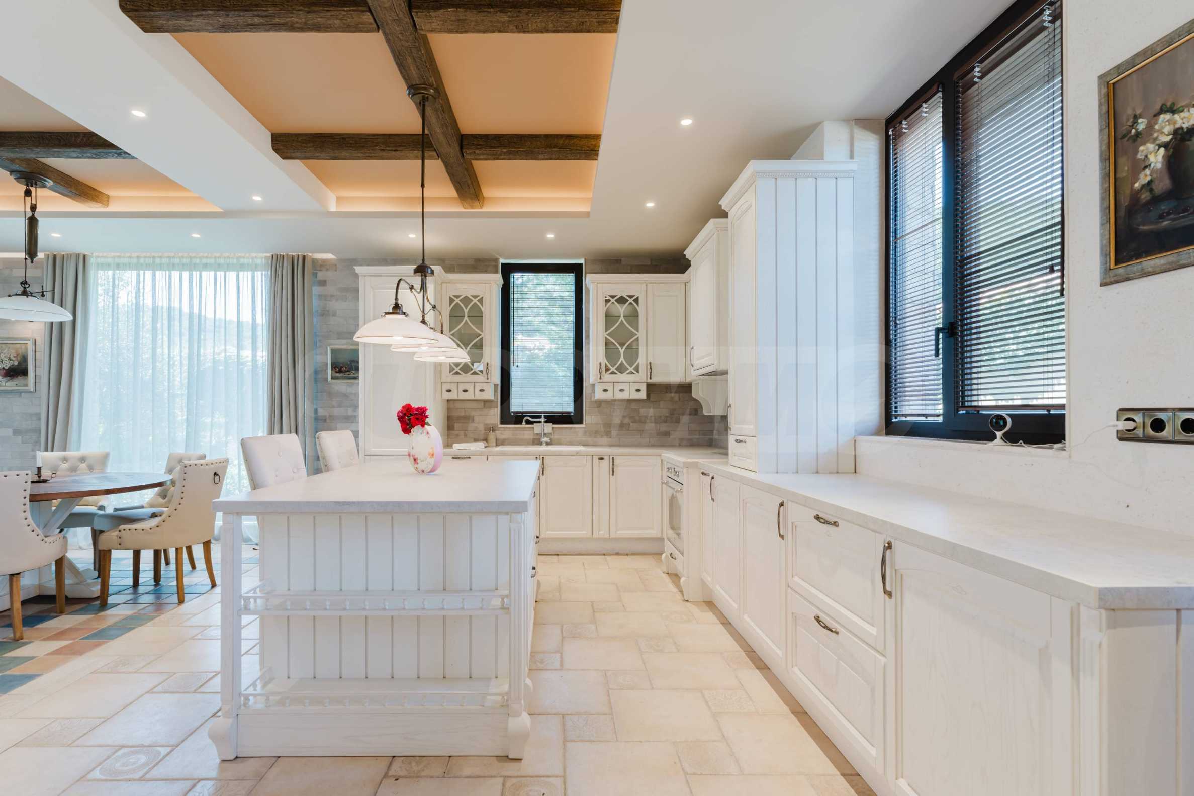 Эта вилла впечатляет своим элегантным дизайном, вдохновленным средиземноморской архитектурой, в сочетании с элементами традиций болгарского Возрождения. Она сочетает в себе роскошь, комфорт и современные технологии.