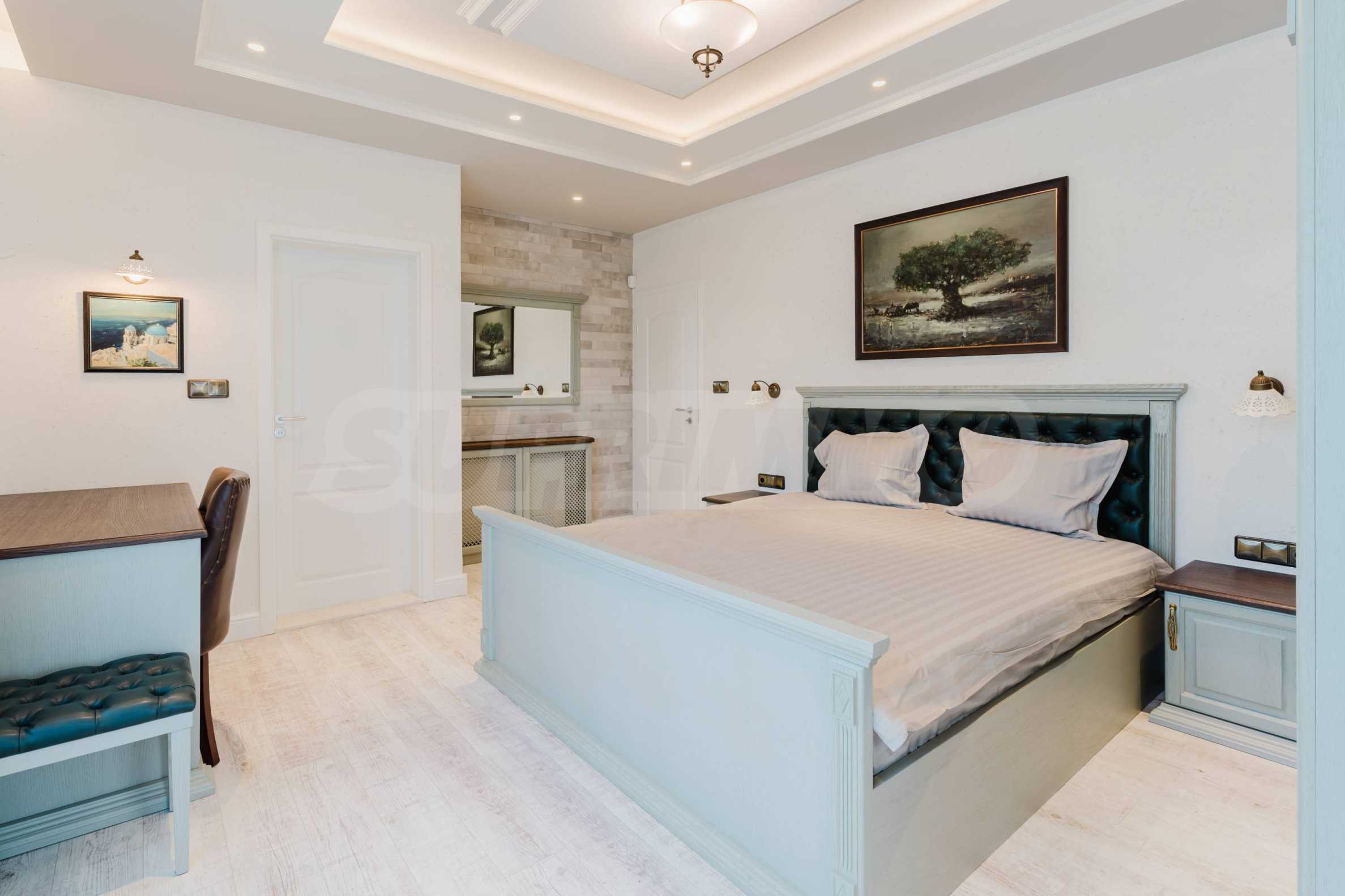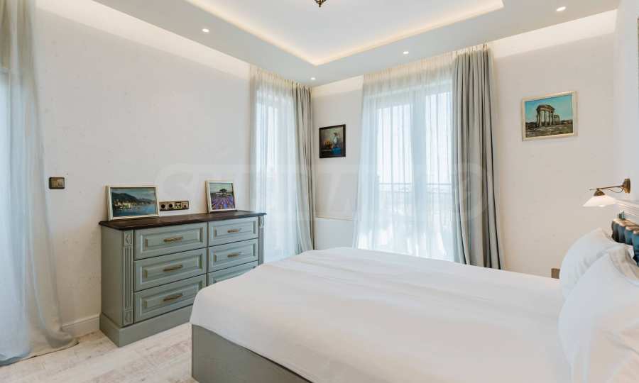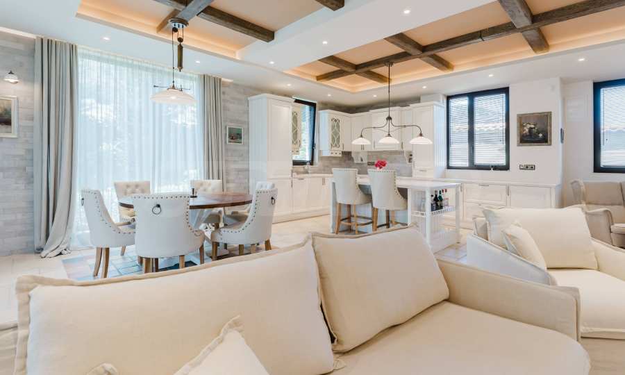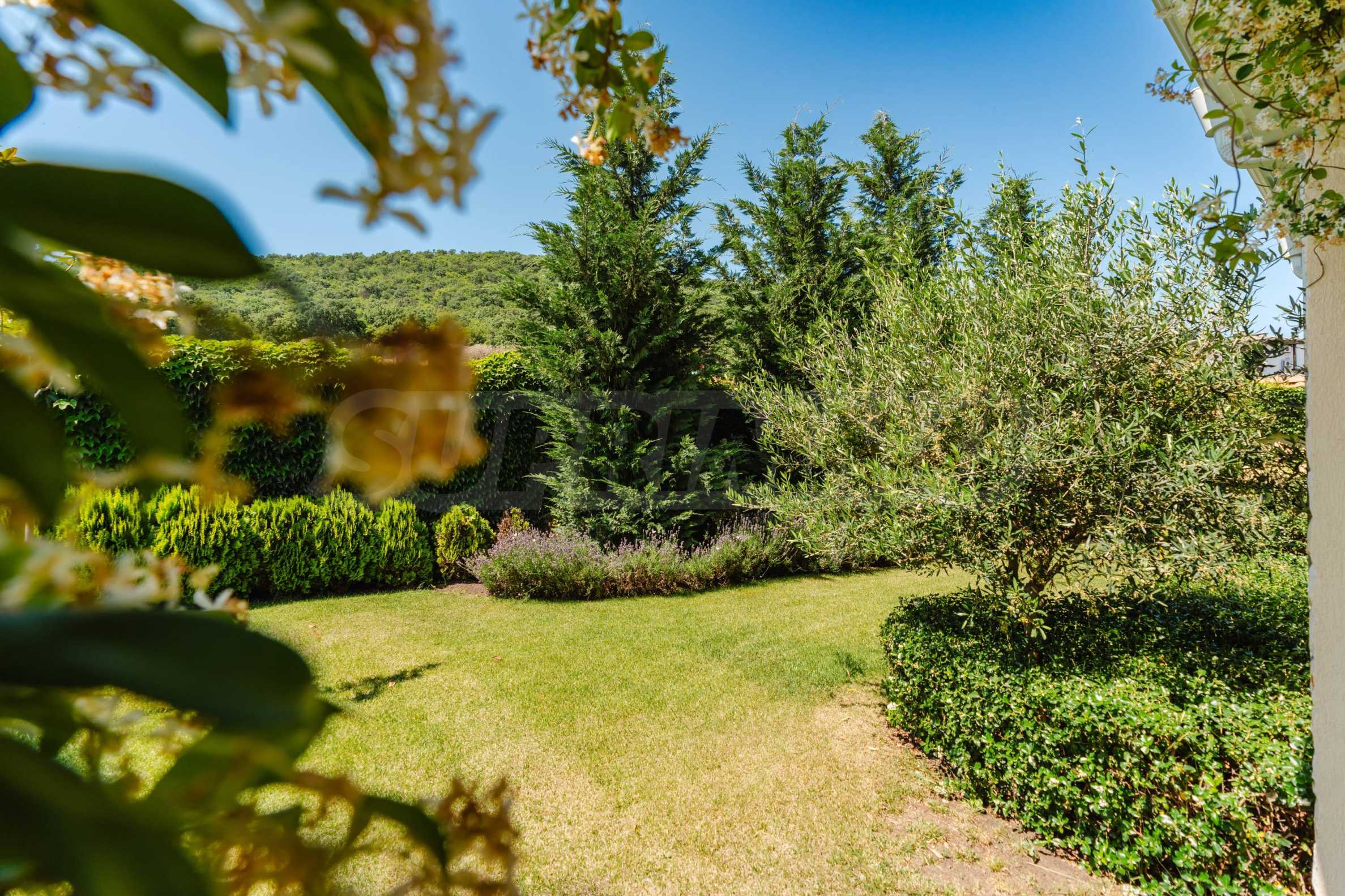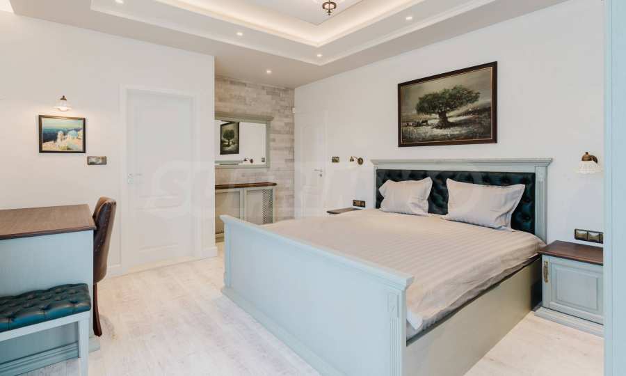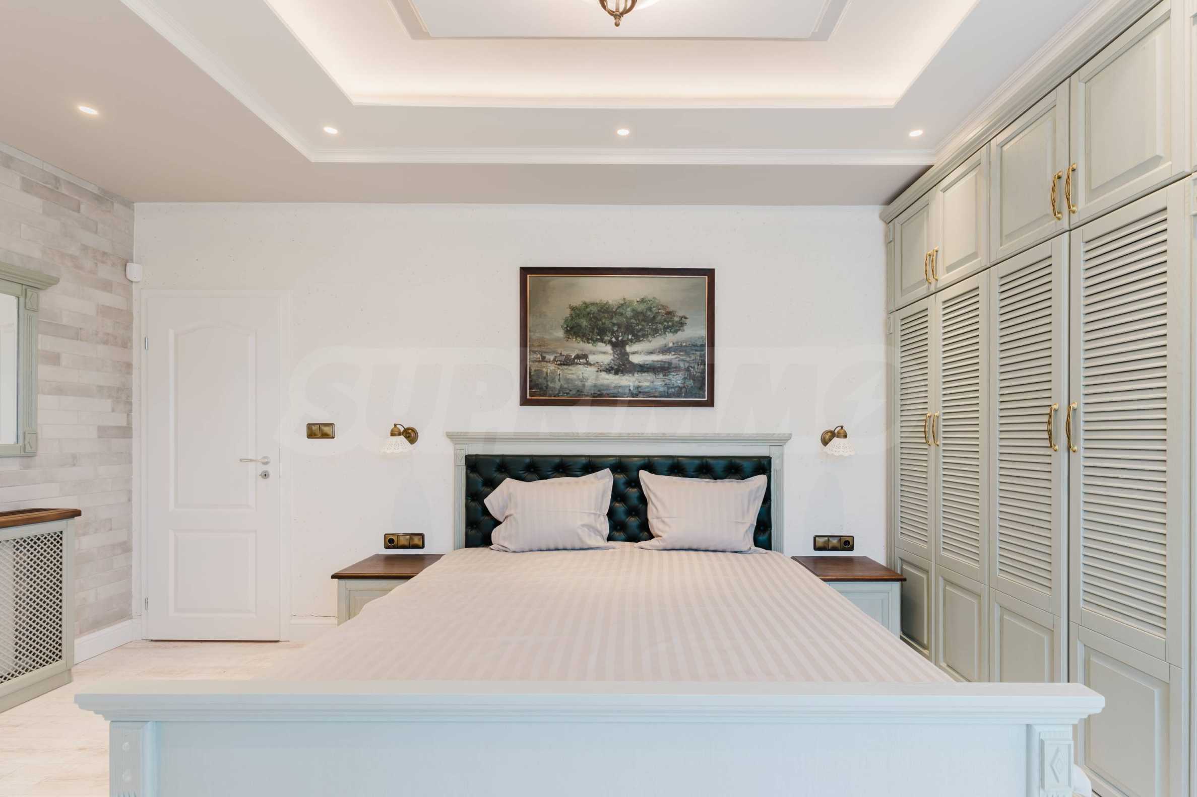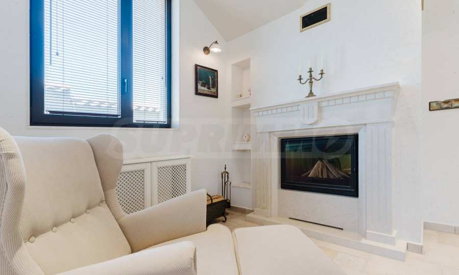Эта вилла впечатляет своим элегантным дизайном, вдохновленным средиземноморской архитектурой, в сочетании с элементами традиций болгарского Возрождения. Она сочетает в себе роскошь, комфорт и современные технологии.