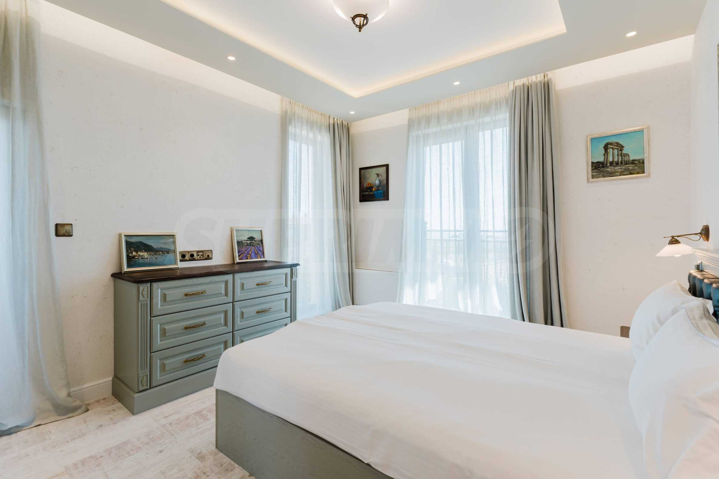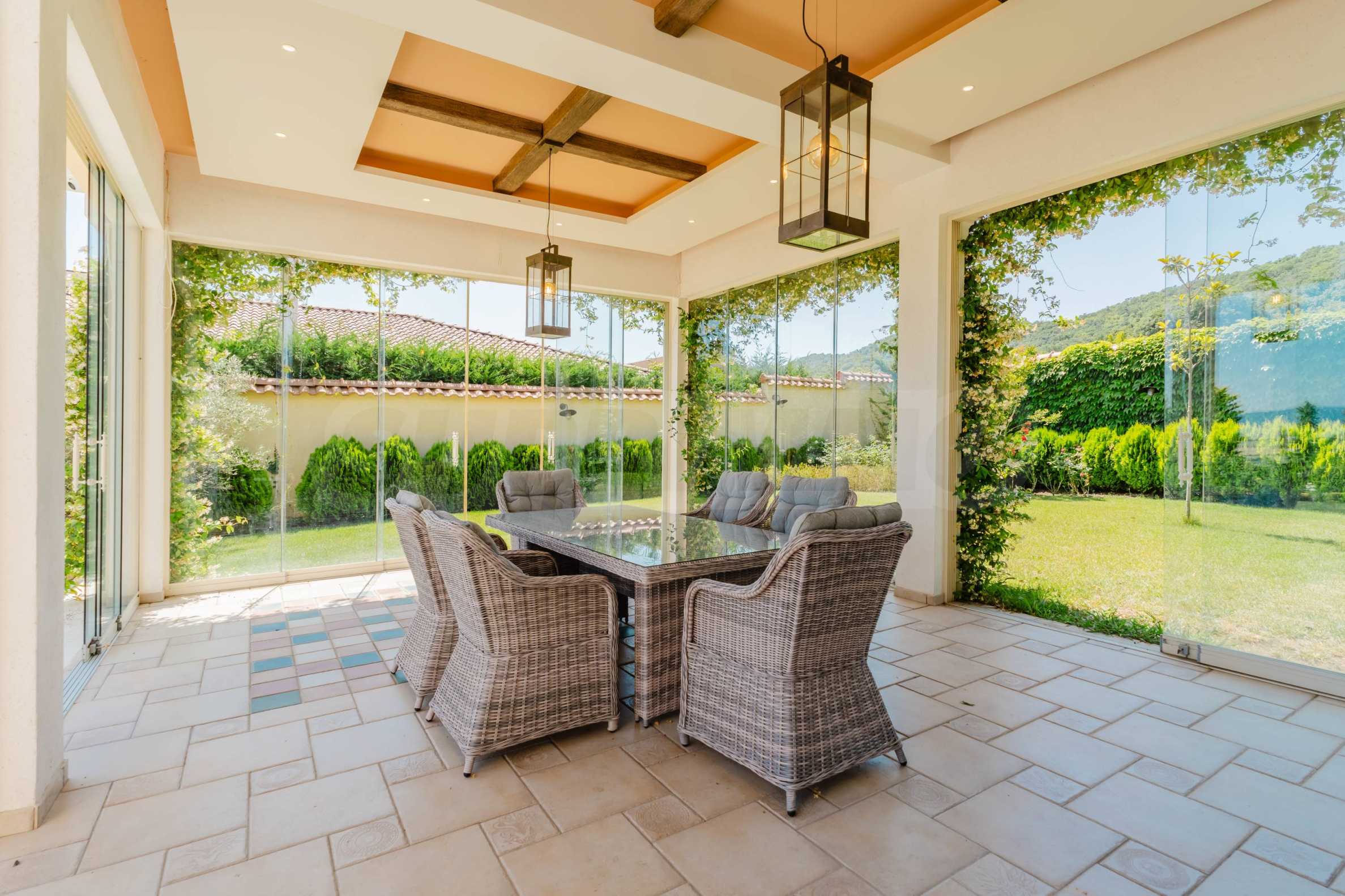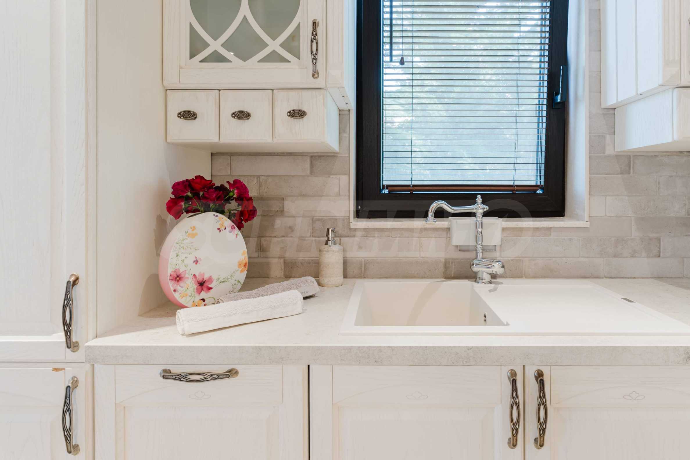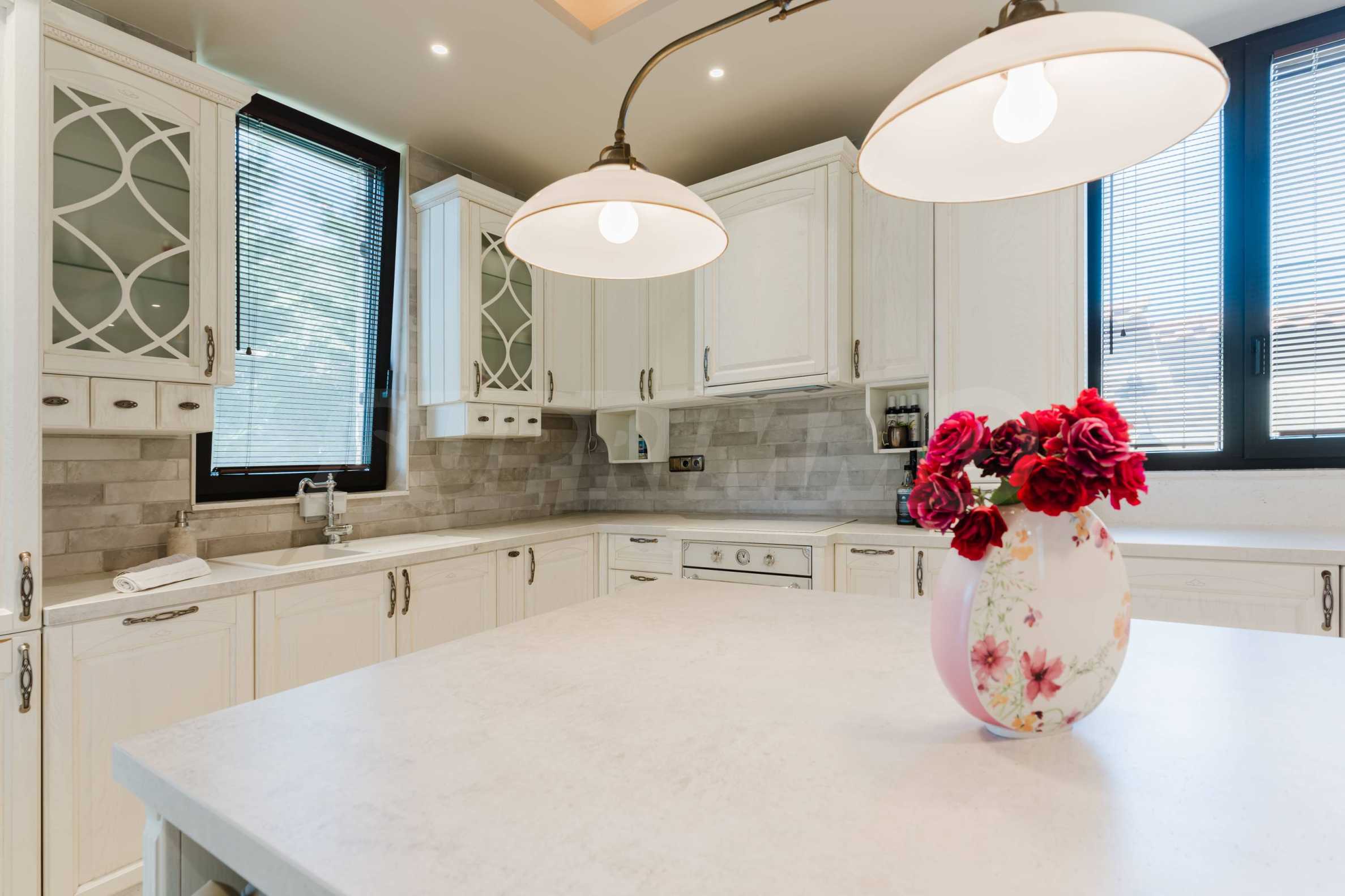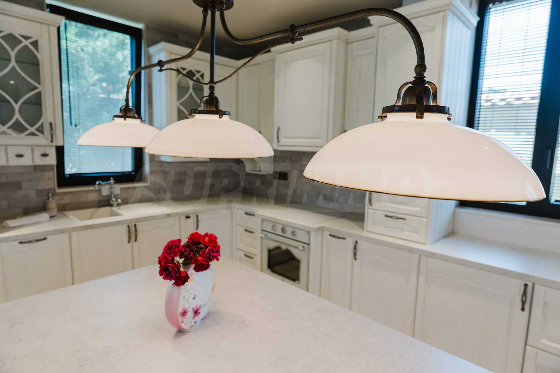 Эта вилла впечатляет своим элегантным дизайном, вдохновленным средиземноморской архитектурой, в сочетании с элементами традиций болгарского Возрождения. Она сочетает в себе роскошь, комфорт и современные технологии.