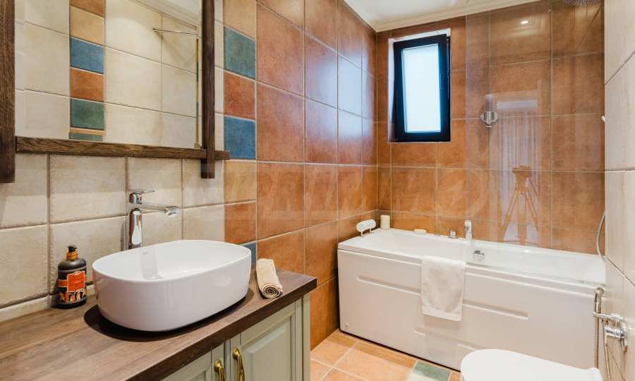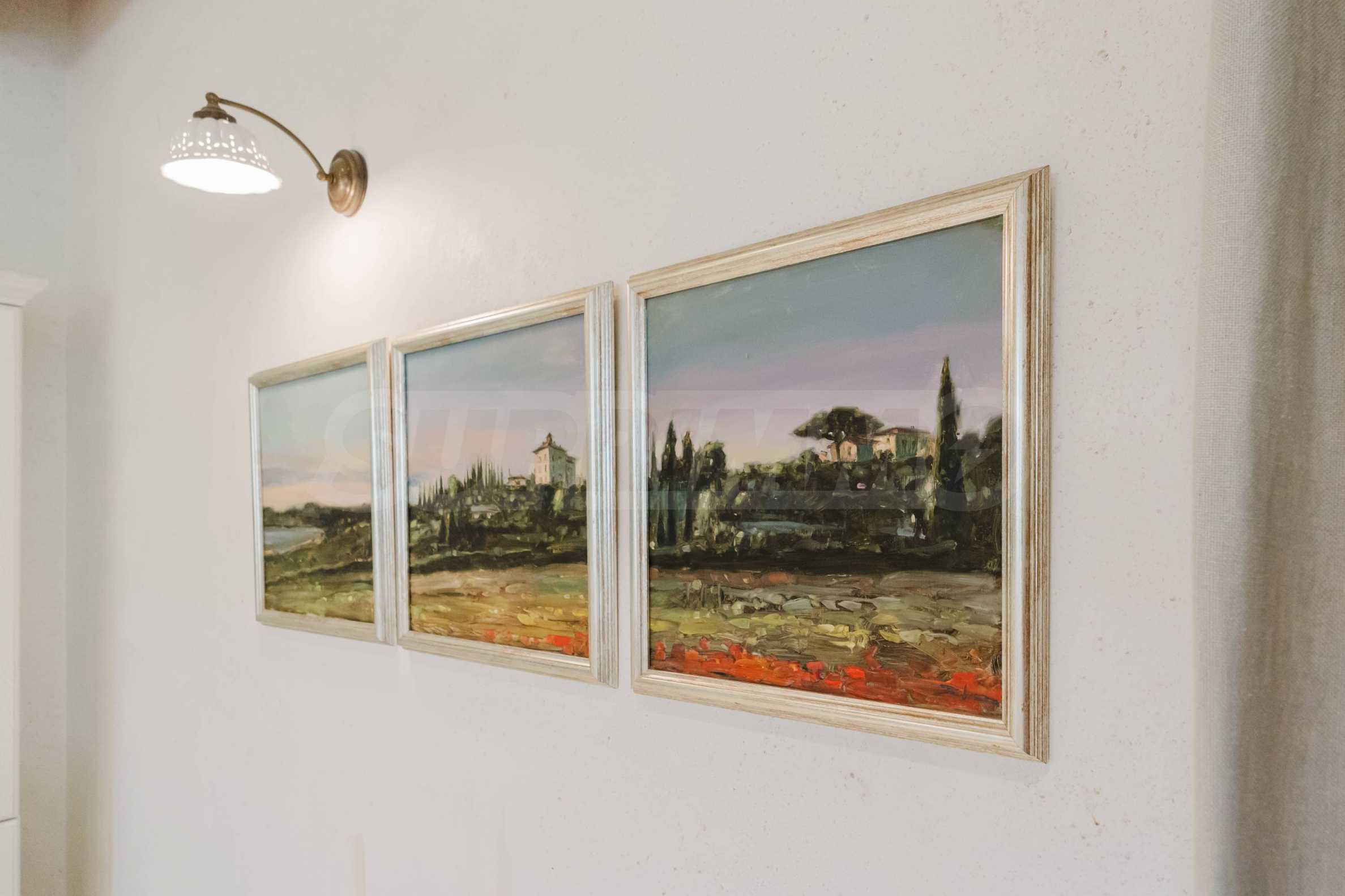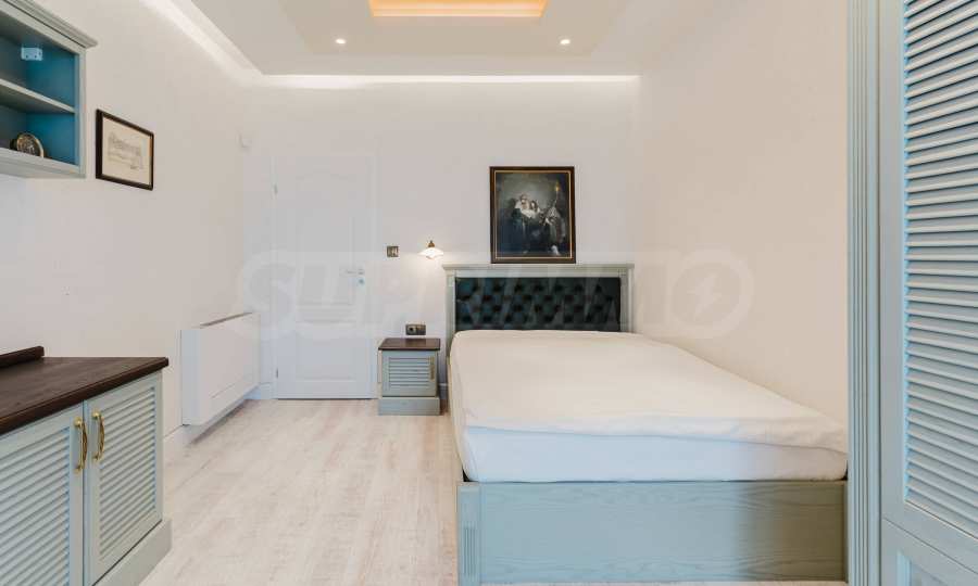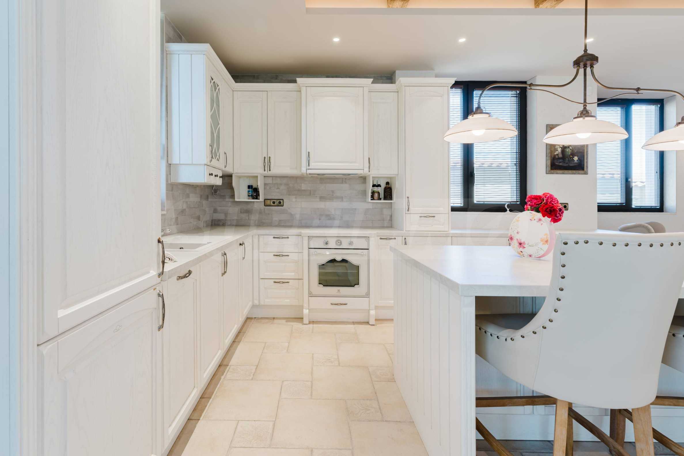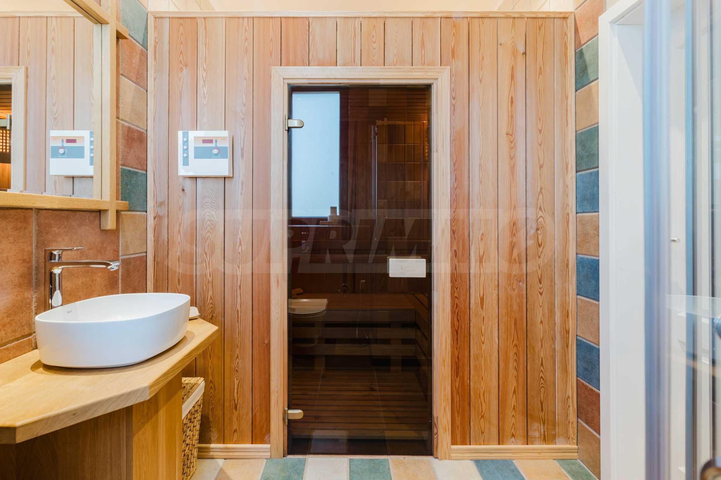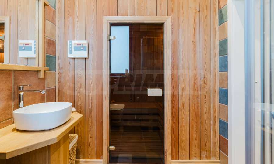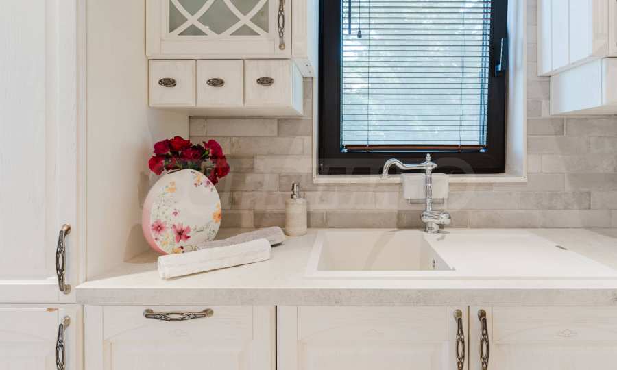 Эта вилла впечатляет своим элегантным дизайном, вдохновленным средиземноморской архитектурой, в сочетании с элементами традиций болгарского Возрождения. Она сочетает в себе роскошь, комфорт и современные технологии.