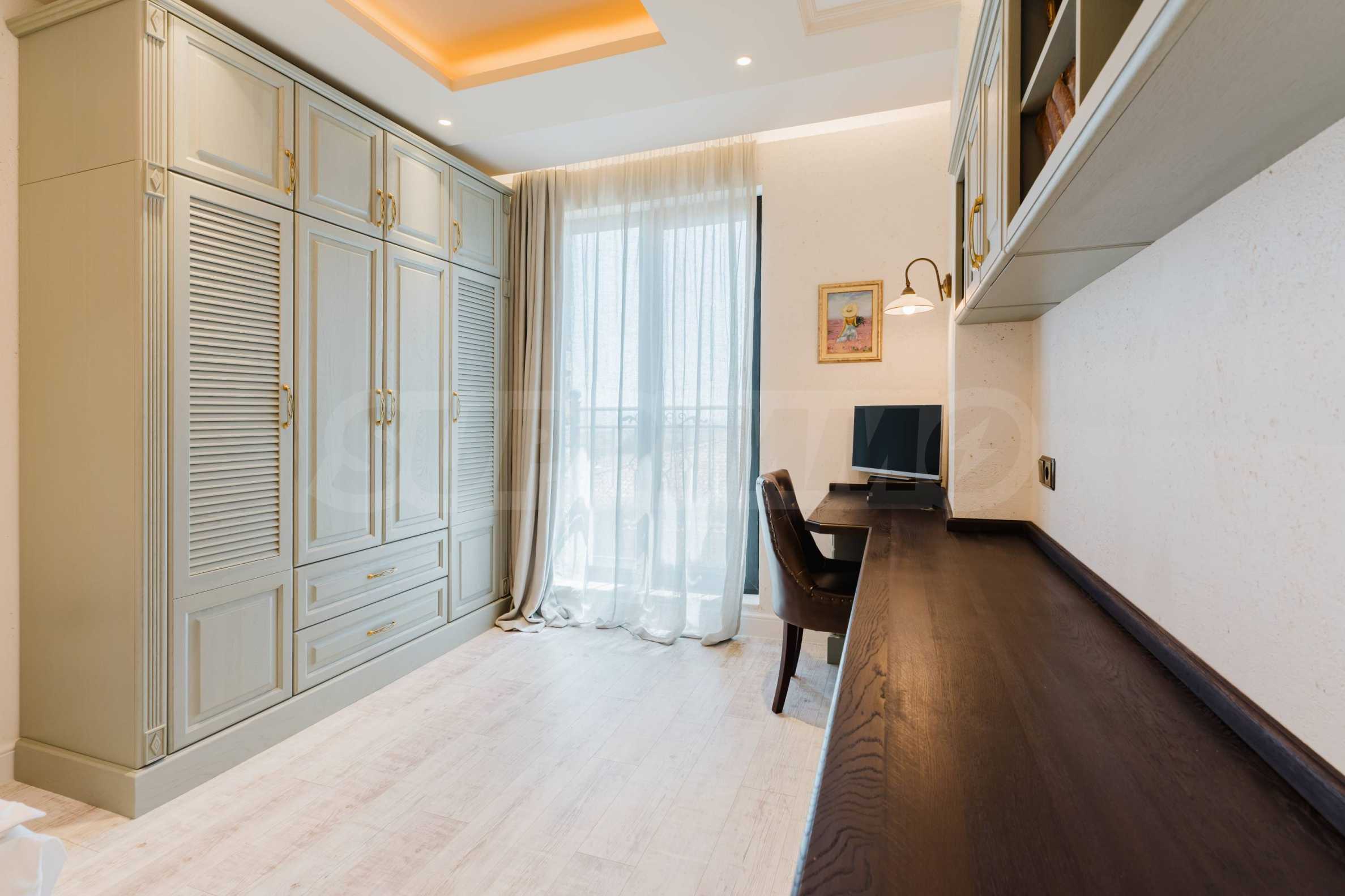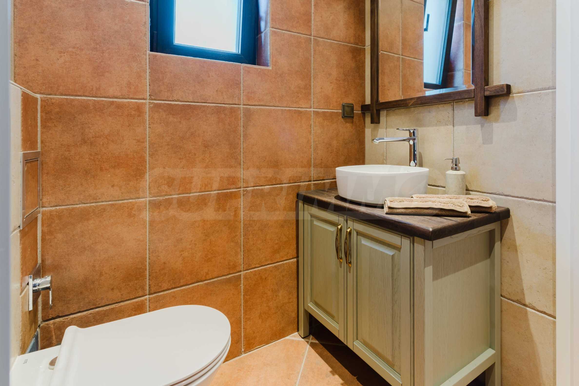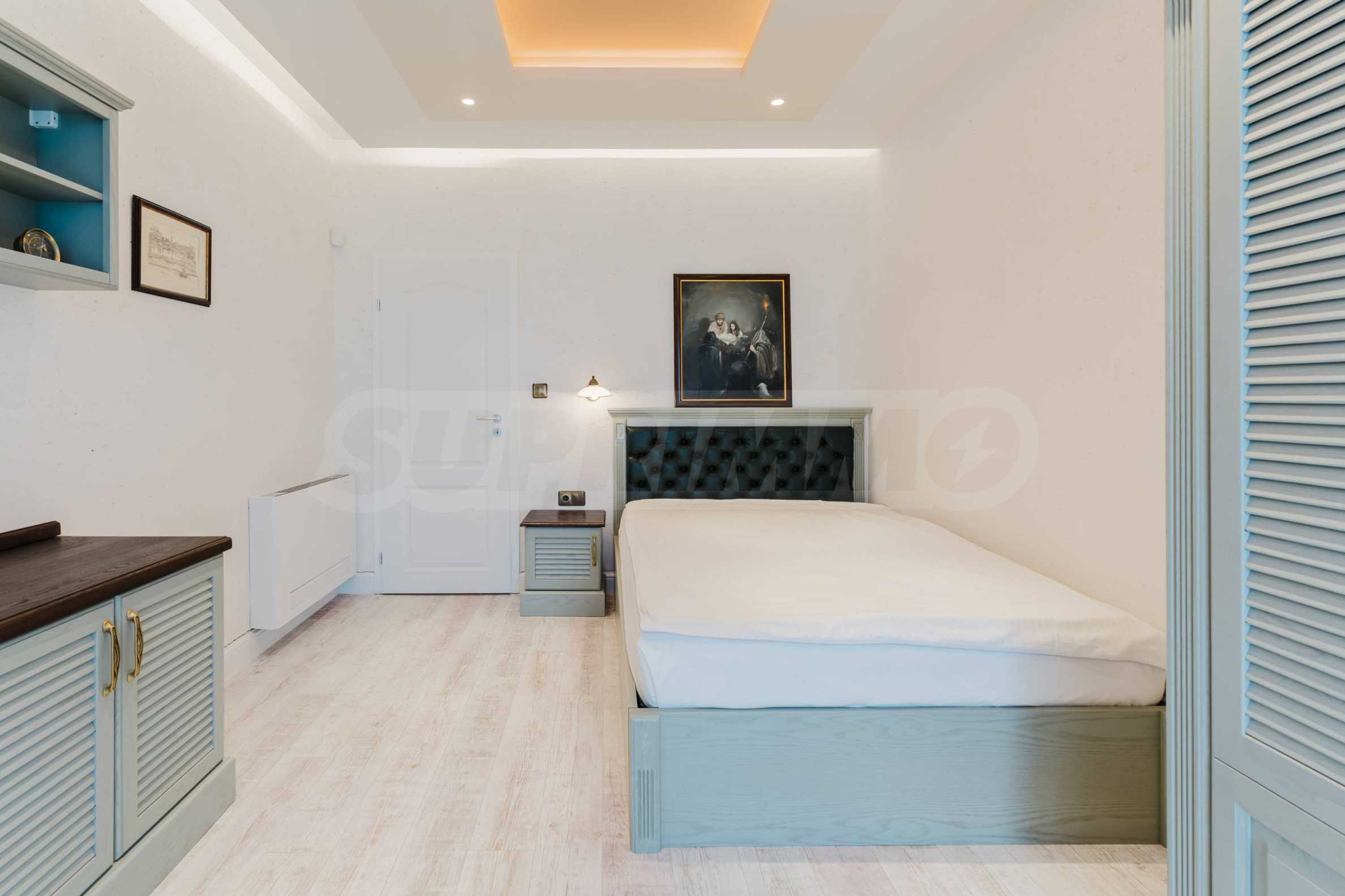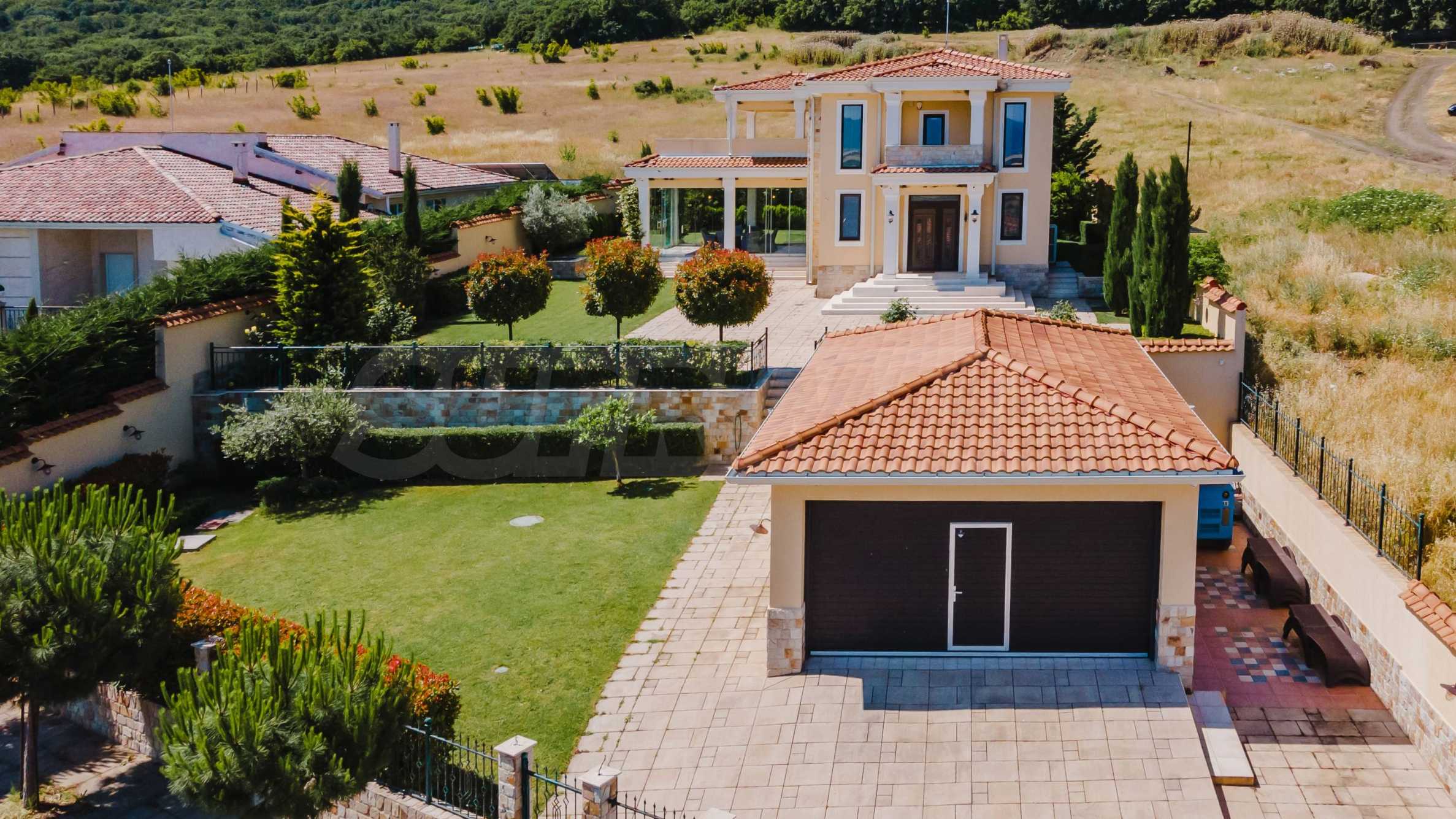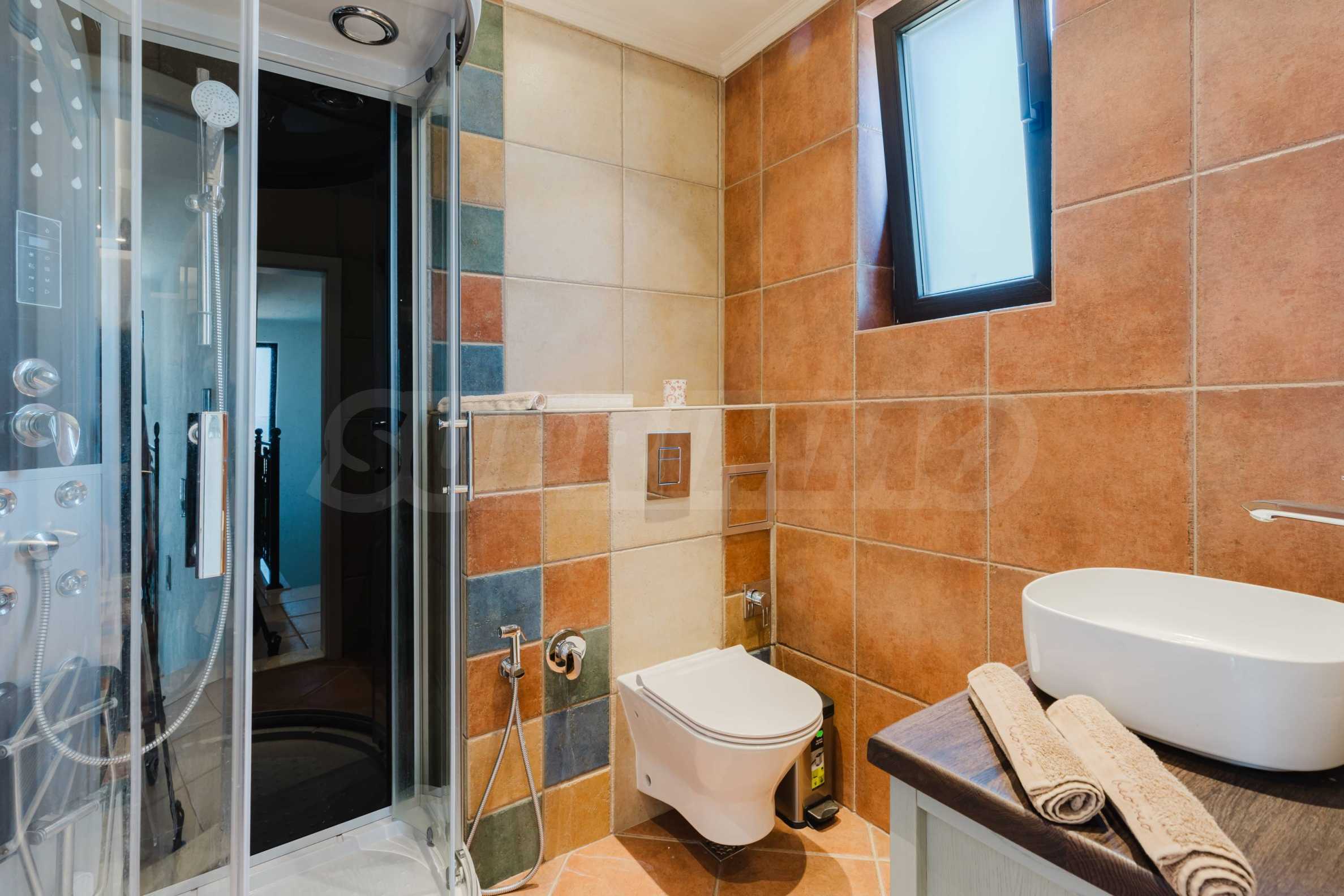 Эта вилла впечатляет своим элегантным дизайном, вдохновленным средиземноморской архитектурой, в сочетании с элементами традиций болгарского Возрождения. Она сочетает в себе роскошь, комфорт и современные технологии.