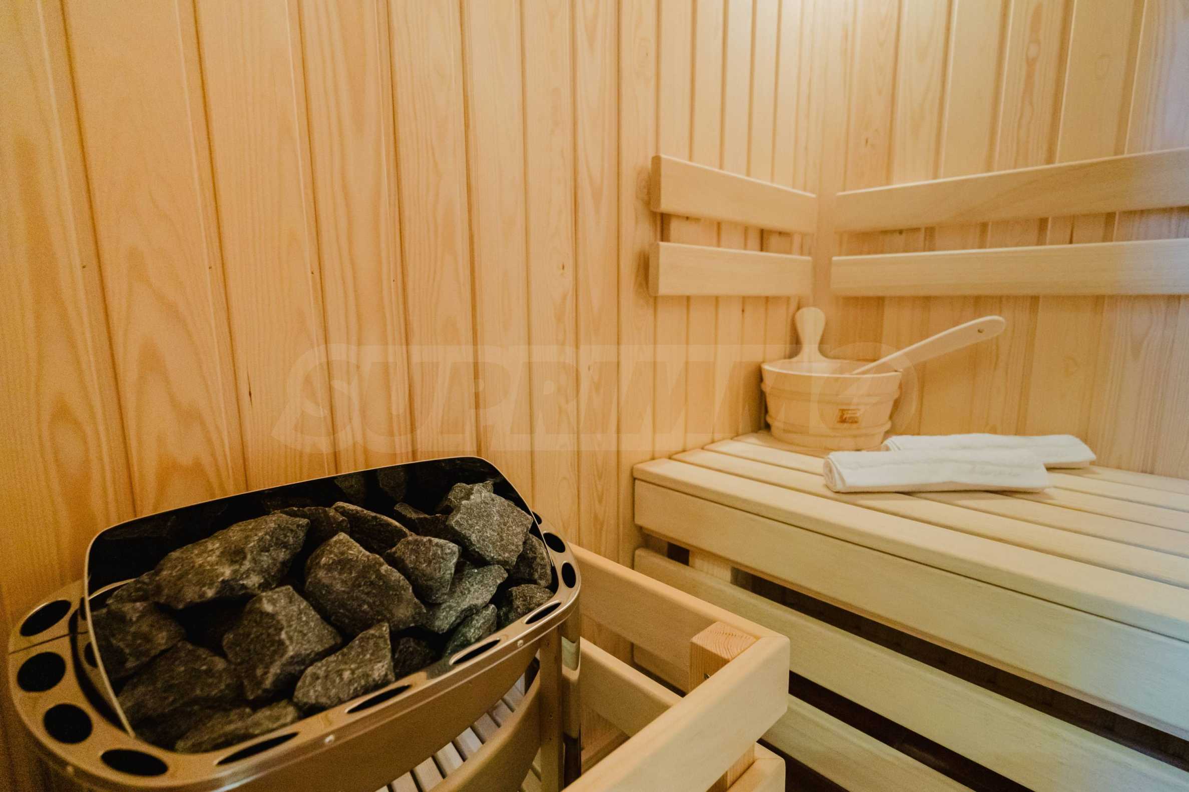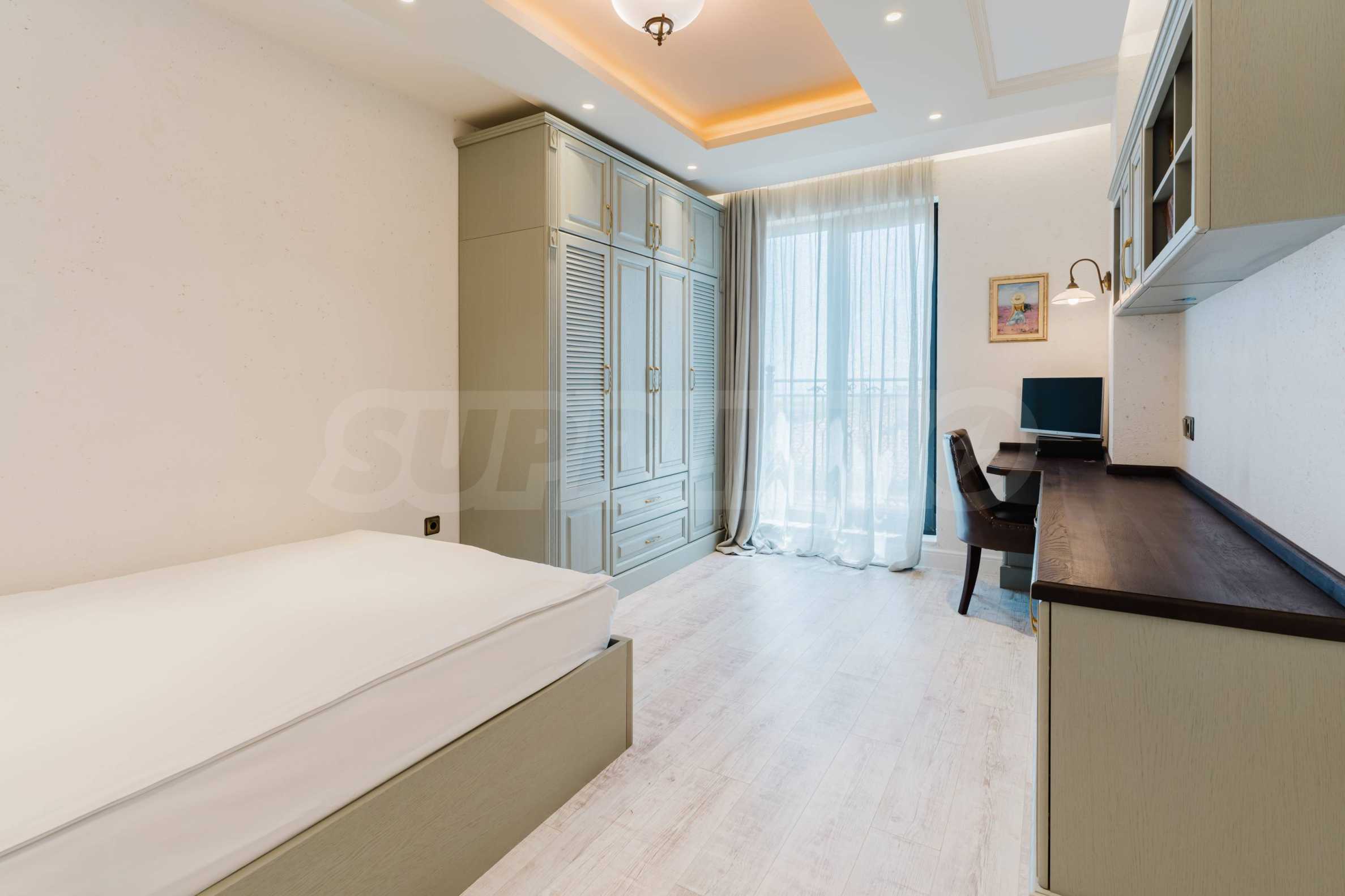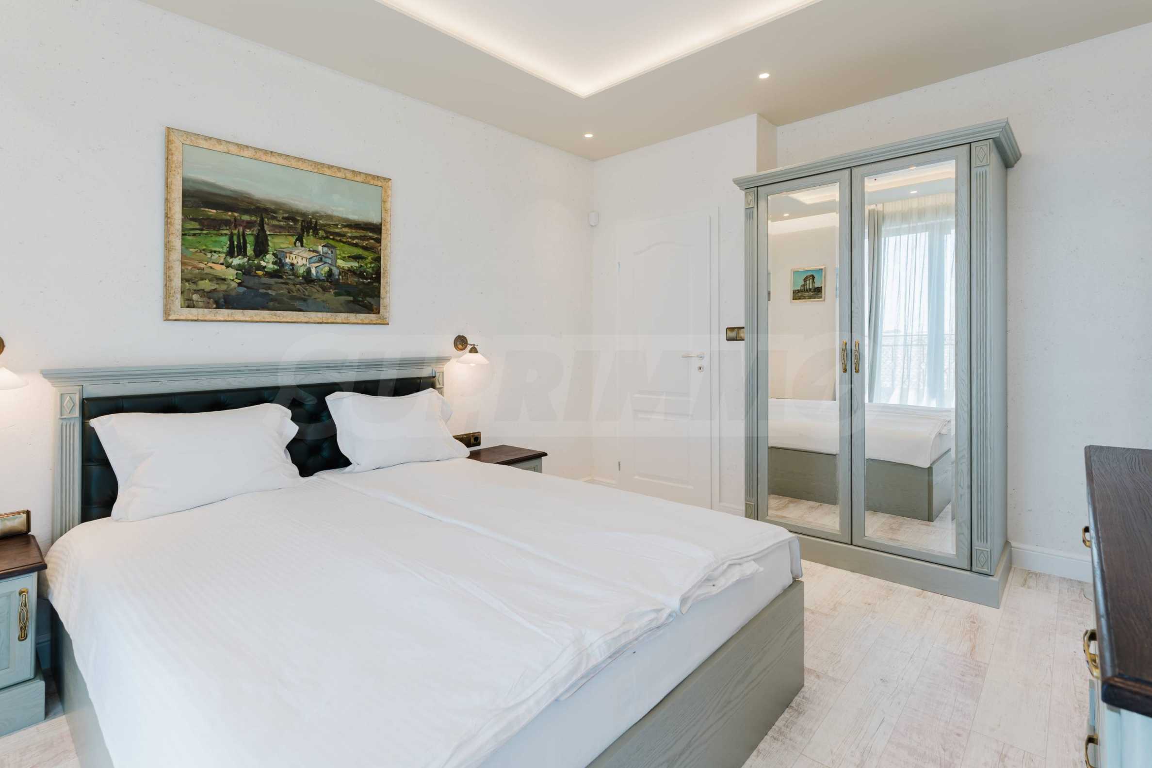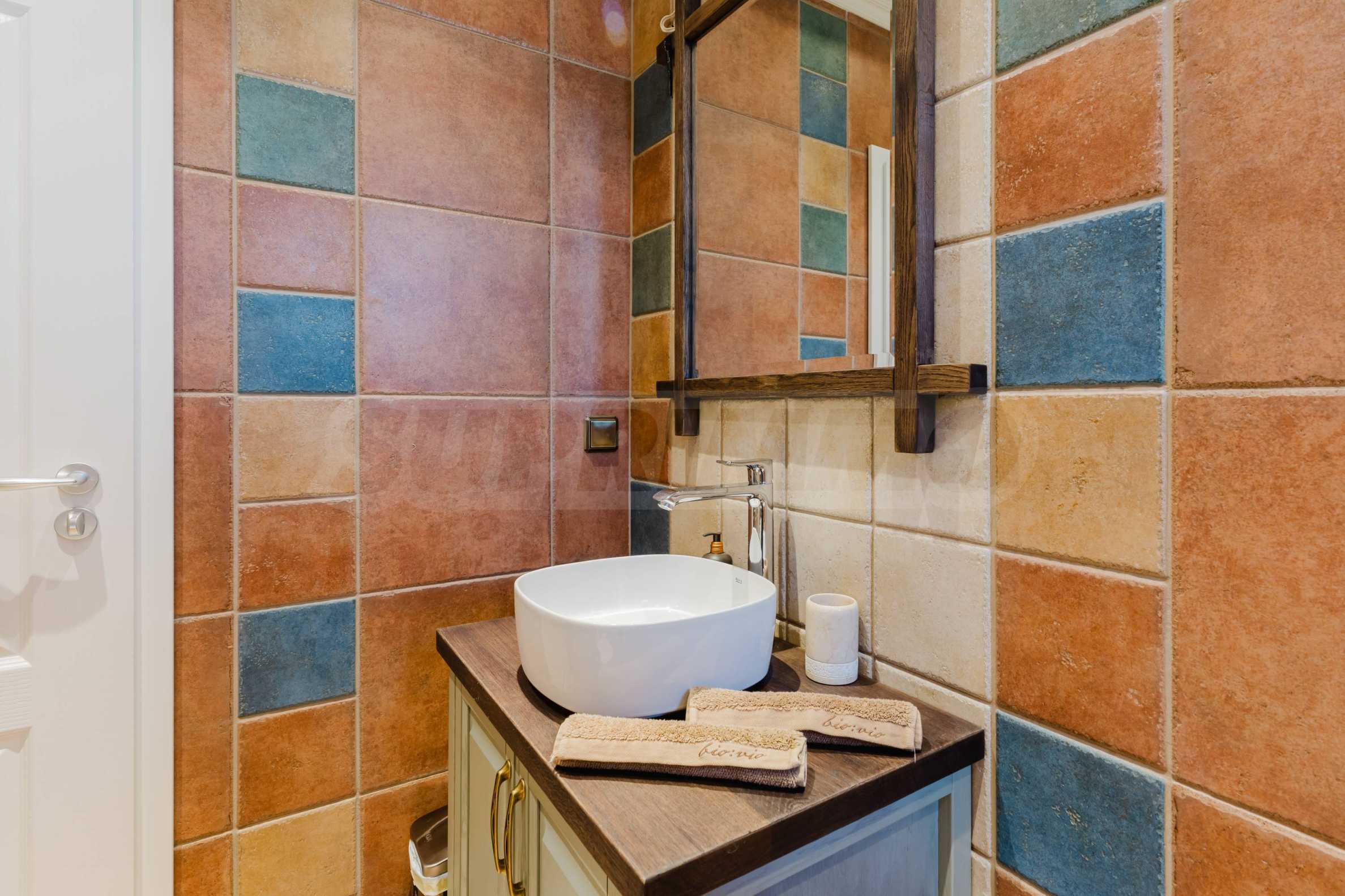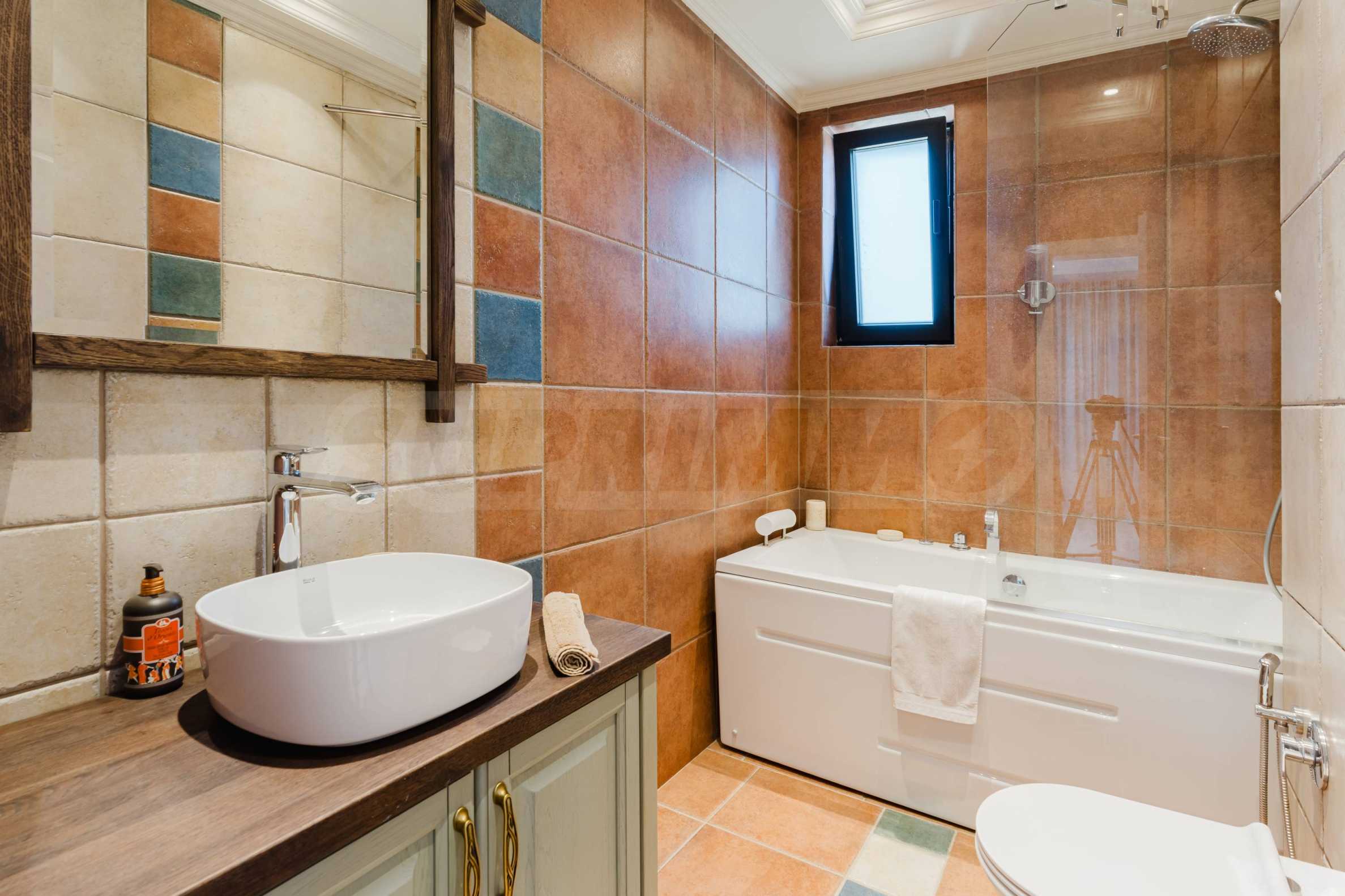 Эта вилла впечатляет своим элегантным дизайном, вдохновленным средиземноморской архитектурой, в сочетании с элементами традиций болгарского Возрождения. Она сочетает в себе роскошь, комфорт и современные технологии.