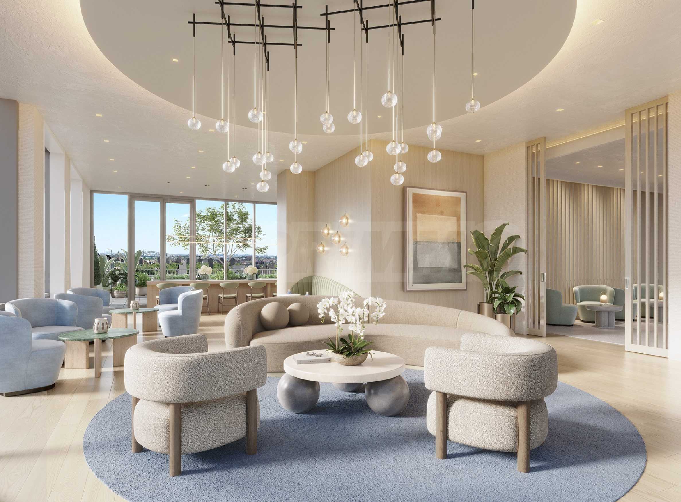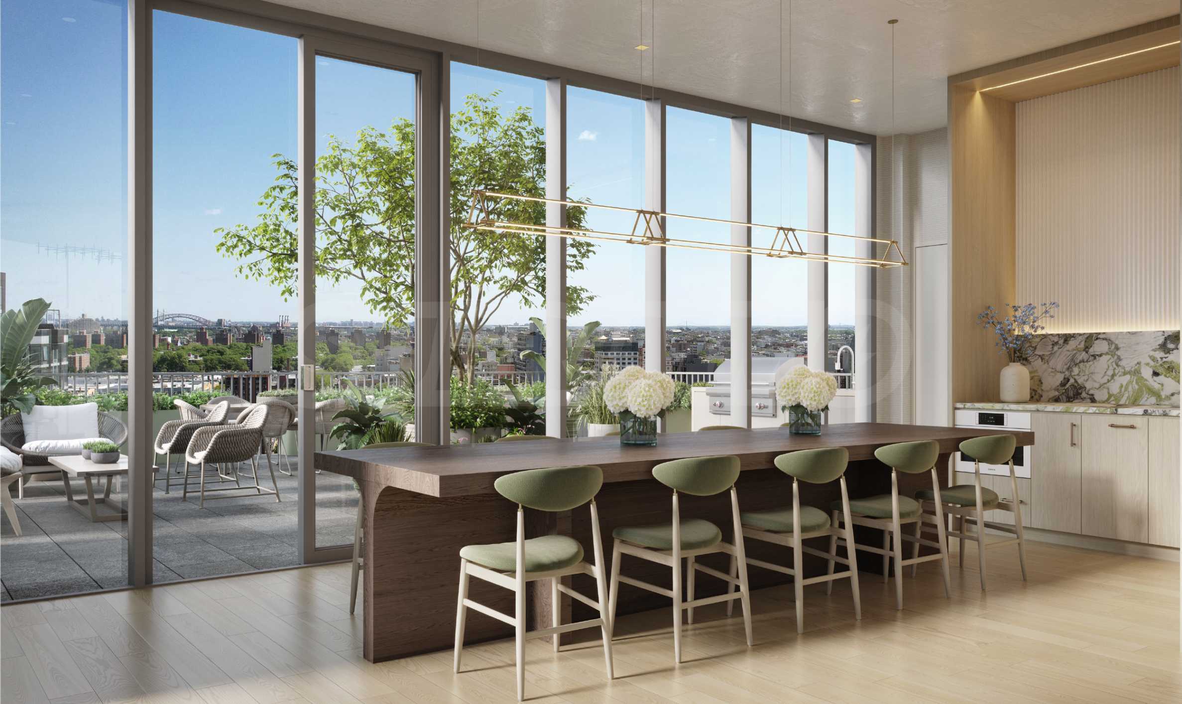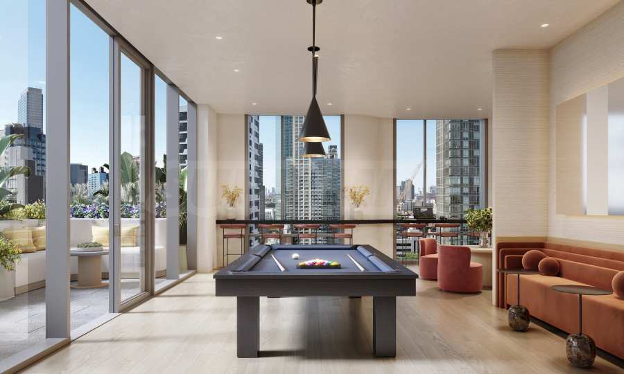 На вершине этого элегантного 19-этажного здания находится жемчужина Radiant — терраса на крыше с исключительными удобствами и вдохновляющими видами. Застекленный вестибюль Sky предлагает панорамный вид на горизонт Манхэттена и Ист-Ривер, а роскошные зоны отдыха и профессионально оборудованная кухня обеспечивают идеальную обстановку для совместной работы, кулинарных мероприятий и памятных ужинов. Специально спроектированная игровая комната для детей и взрослых предлагает возможности для развлечений в изысканной и уютной атмосфере.