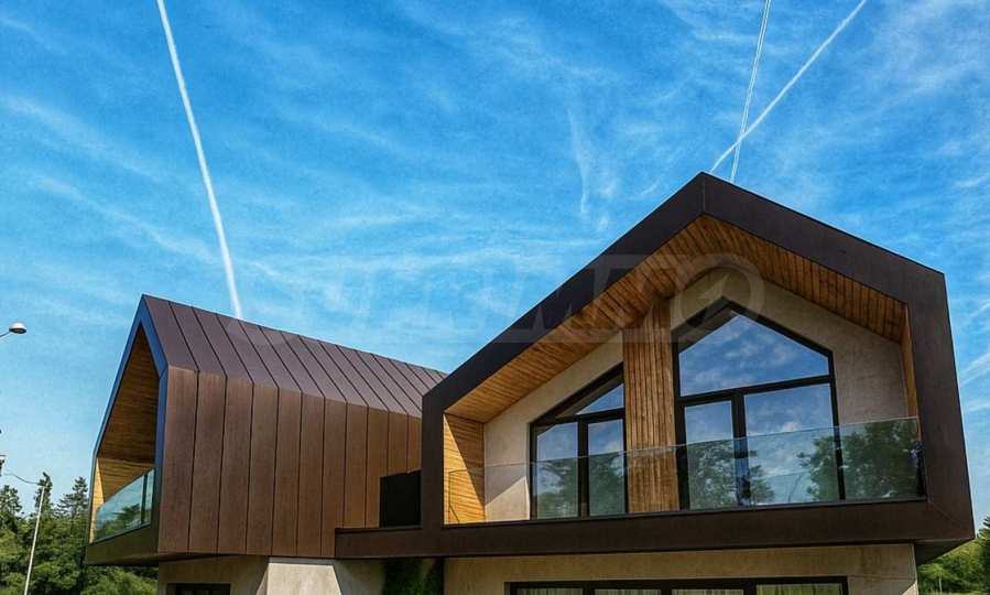 • Деревянная обшивка части фасада из обработанной термодревесины;