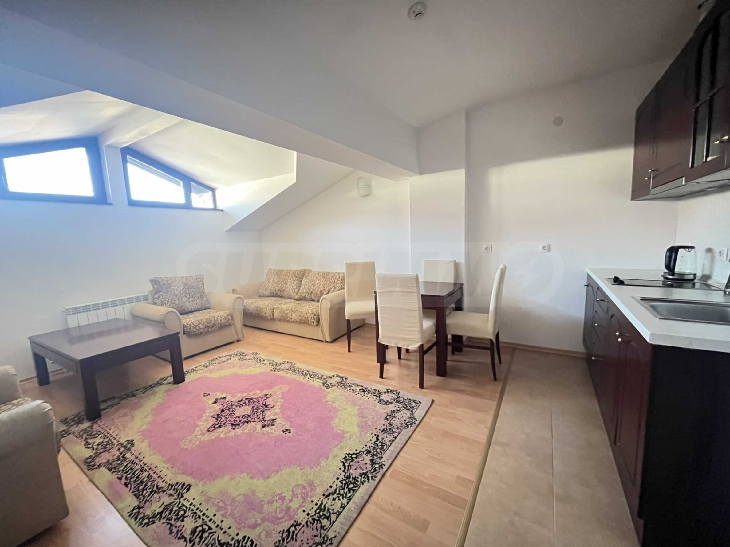 Светлая двухкомнатная квартира, расположенная в жилом доме с низкой таксой обслуживания, недалеко от центра Банско