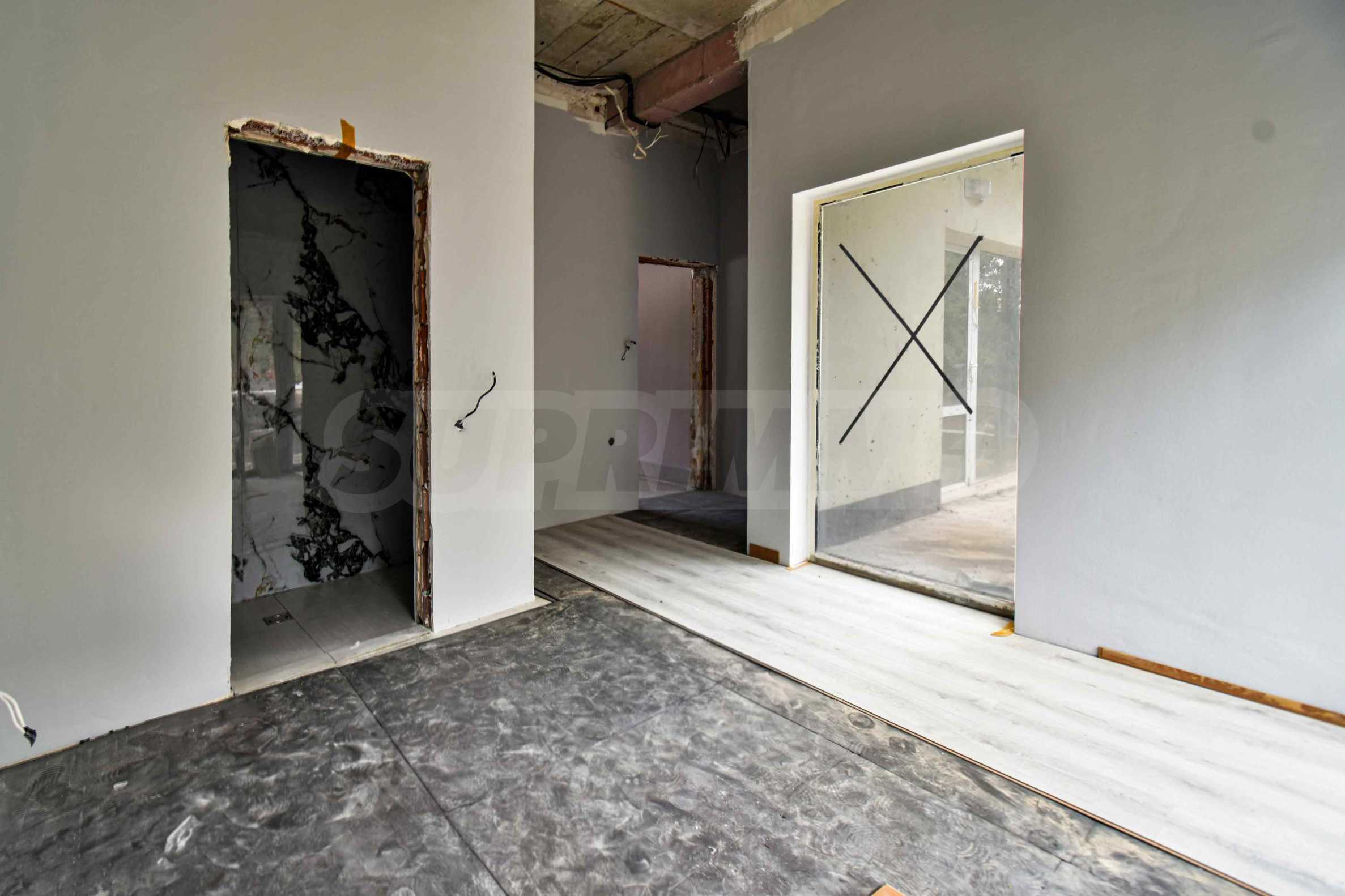 Пространство разделено на три отдельные комнаты, каждая со своим санузлом, что позволяет гибко использовать площадь. Кроме того, объект имеет два отдельных входа с фасада, а также два выхода на террасы в задней части здания, что обеспечивает дополнительную функциональность и удобство для логистики или организации потоков клиентов и персонала.