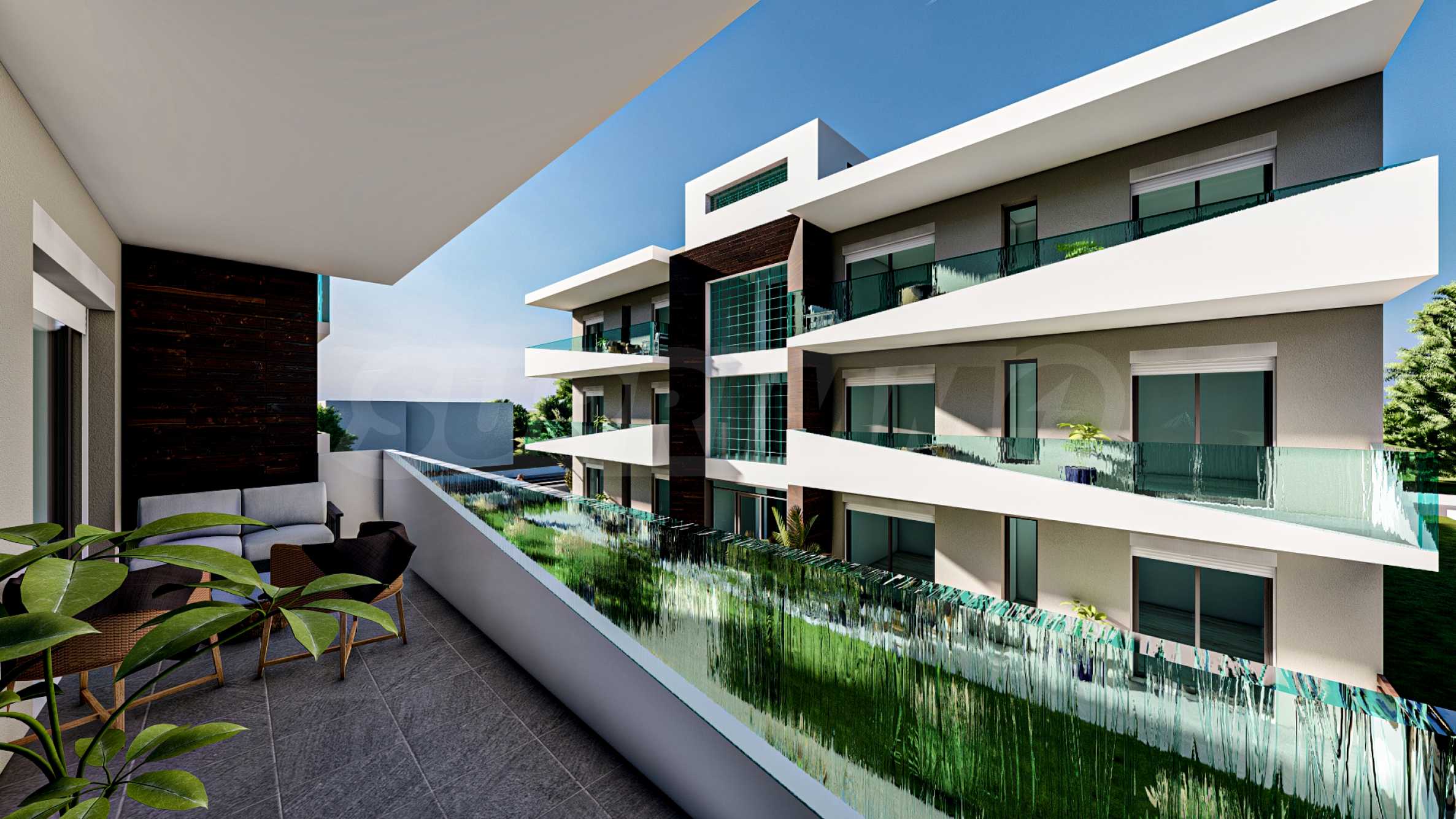 Комплекс состоит из двух зданий, по шесть квартир в каждом. Здания впечатляют своим фасадом, включающим декоративные деревянные элементы, асимметричные линии террас и стеклянные элементы, которые ещё больше украшают вид. Строительные материалы тщательно подобраны и соответствуют всем требованиям качества, что гарантирует долгий срок службы зданий.