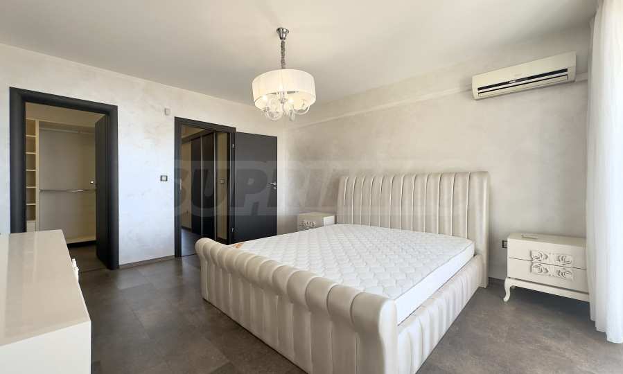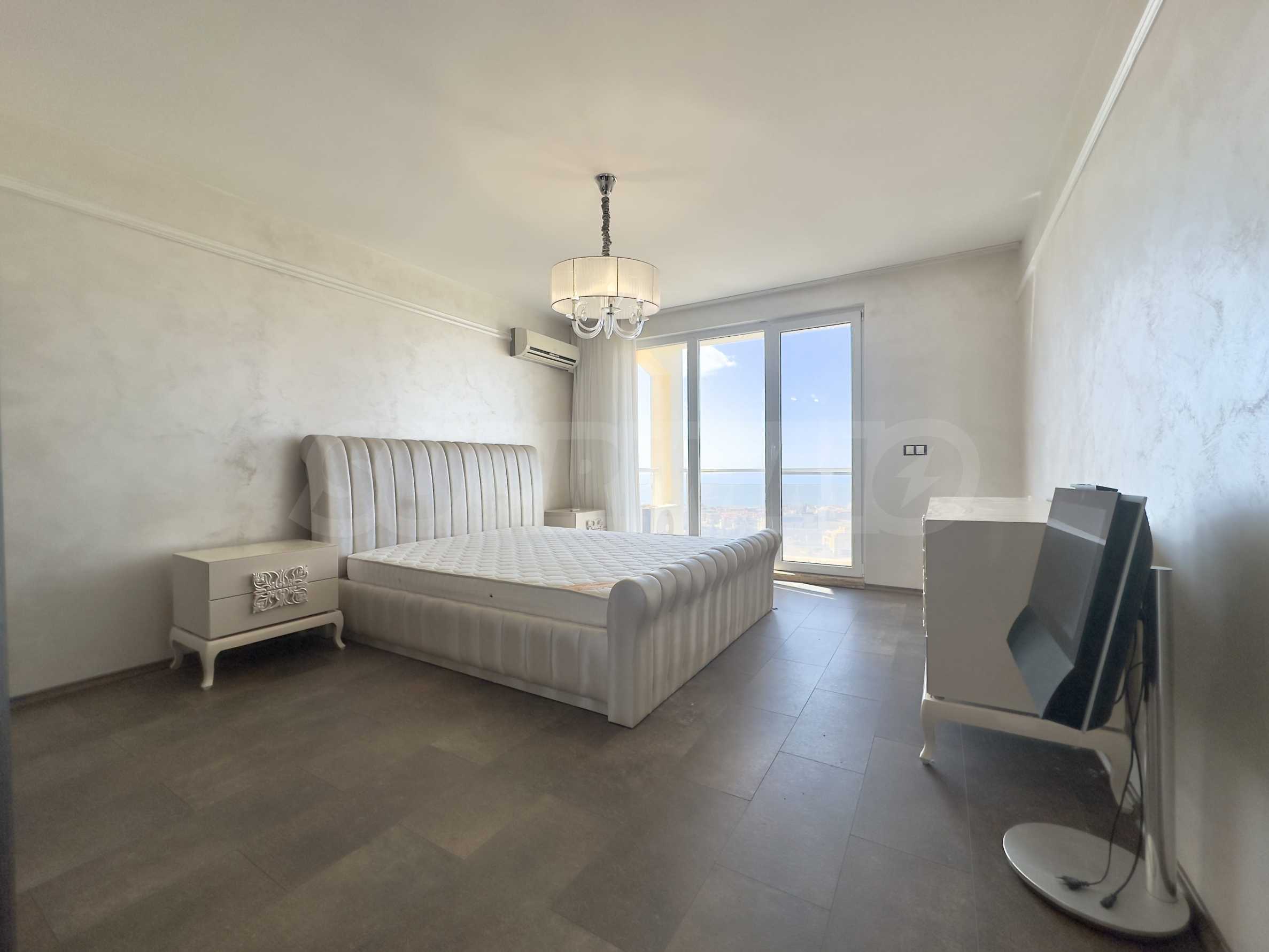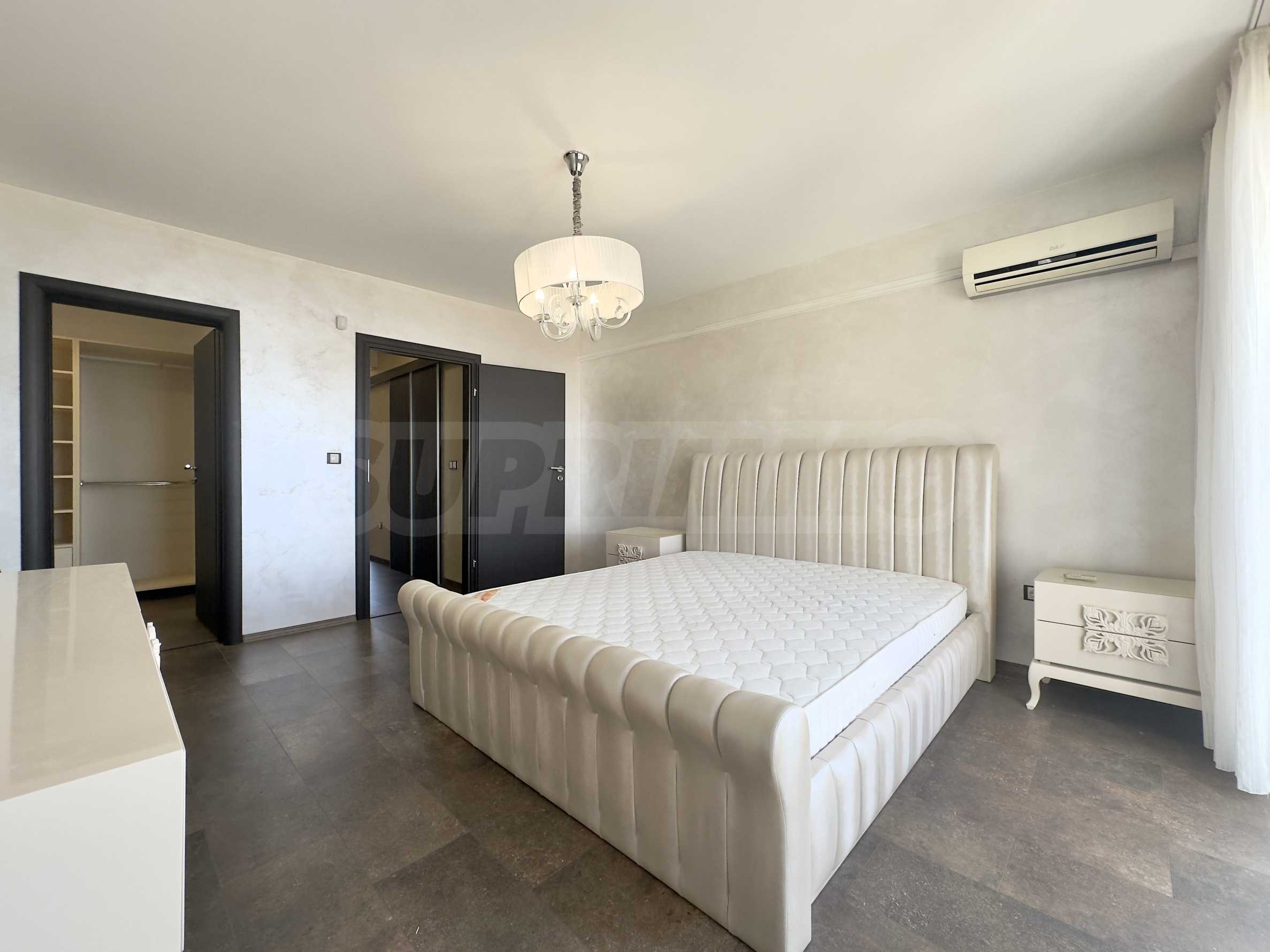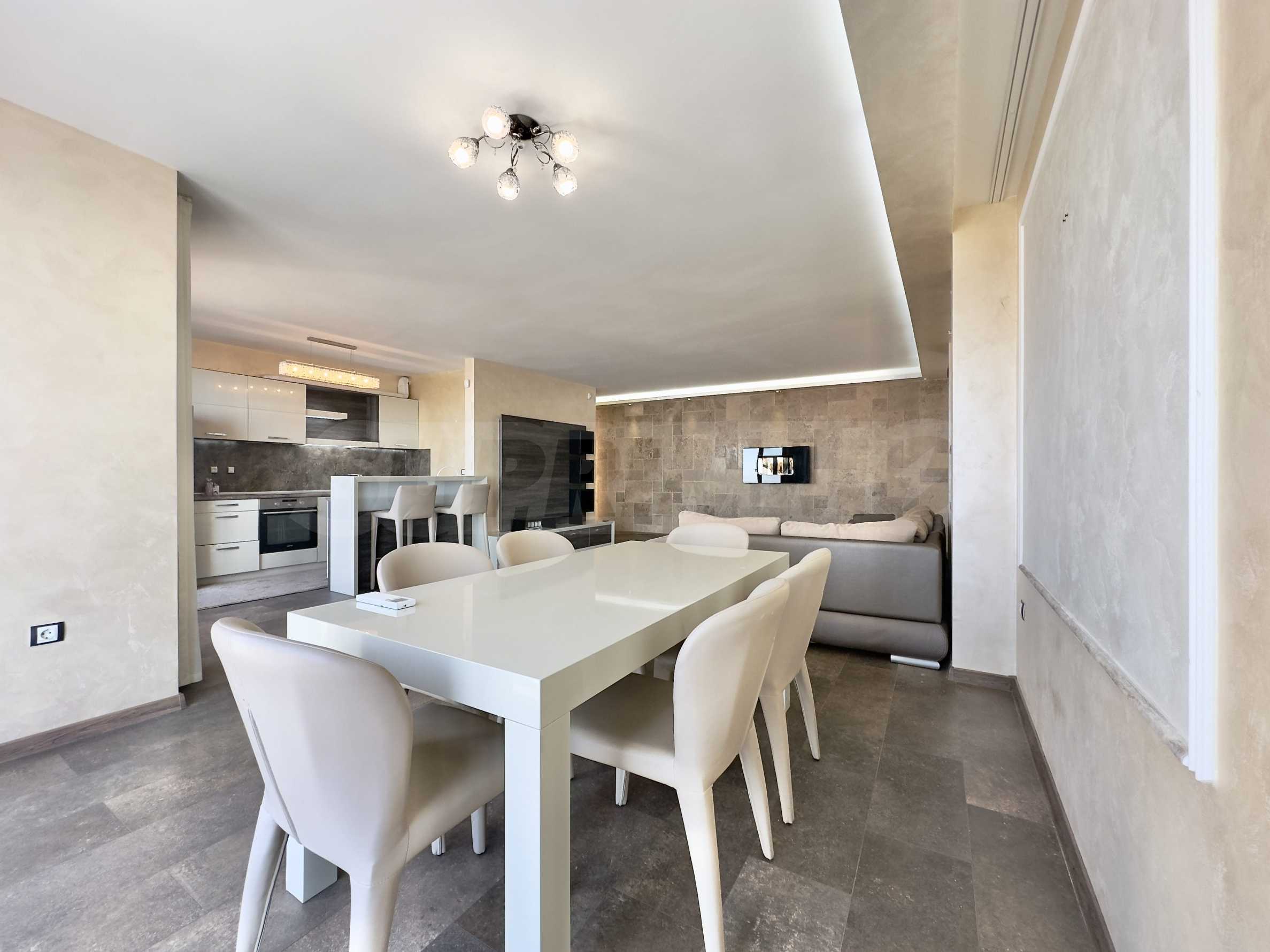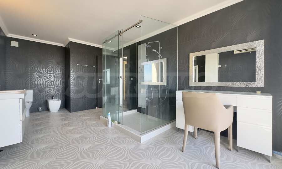 Каждая комната имеет выход на террасу с великолепным фронтальным видом на морской залив. Квартира полностью меблирована и оборудована новой высококачественной меблировкую и техникой. Отопление и охлаждение осуществляются кондиционерами в каждой комнате. На террасах установлены солнечные коллекторы, а также электрические тенты с дистанционным управлением.