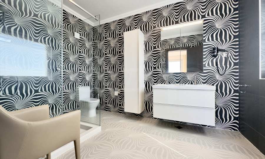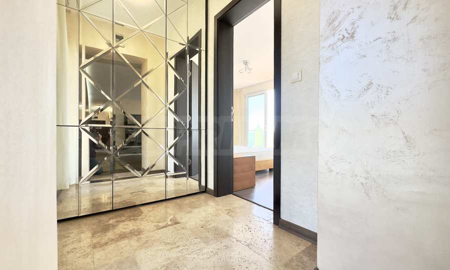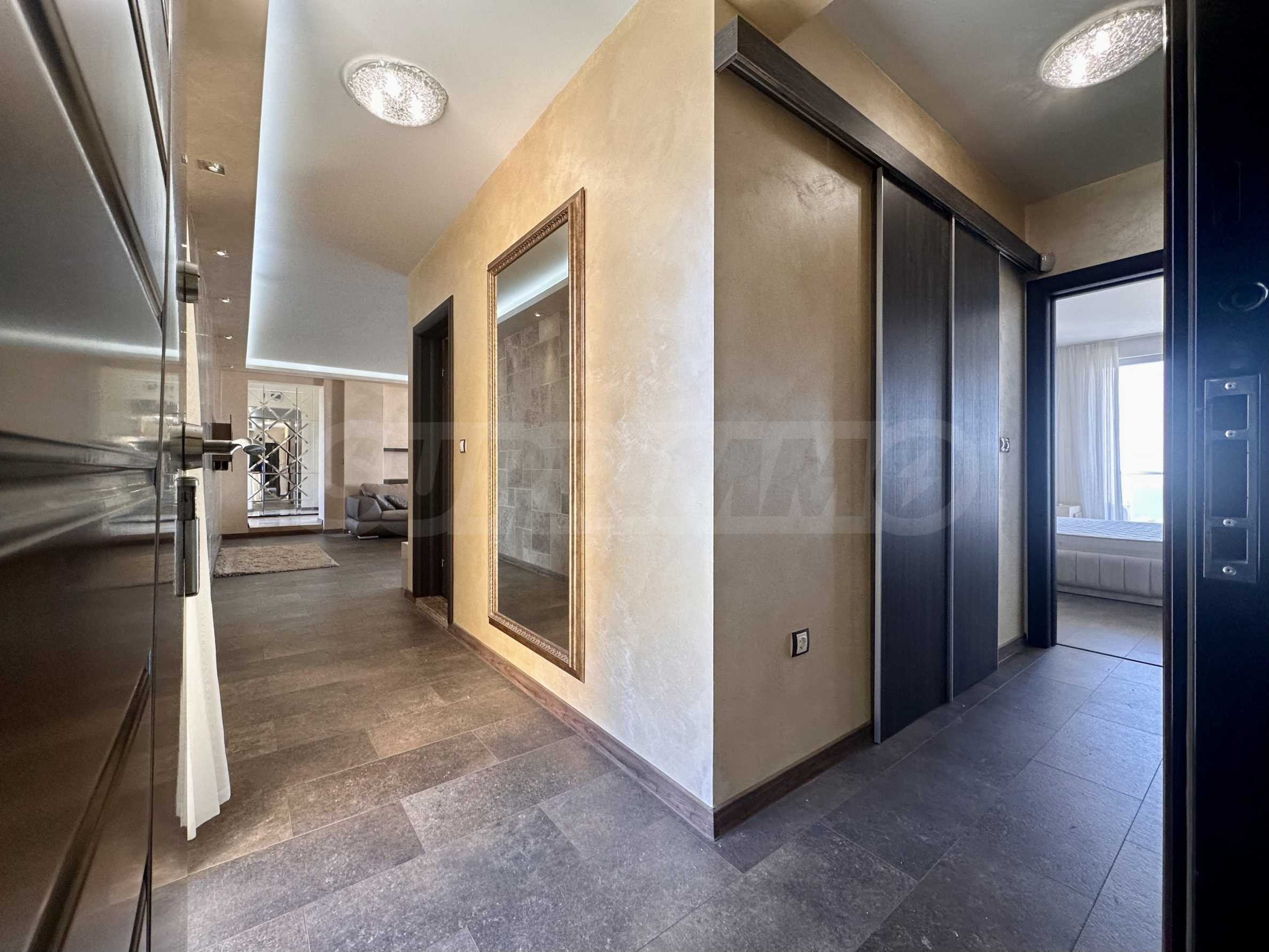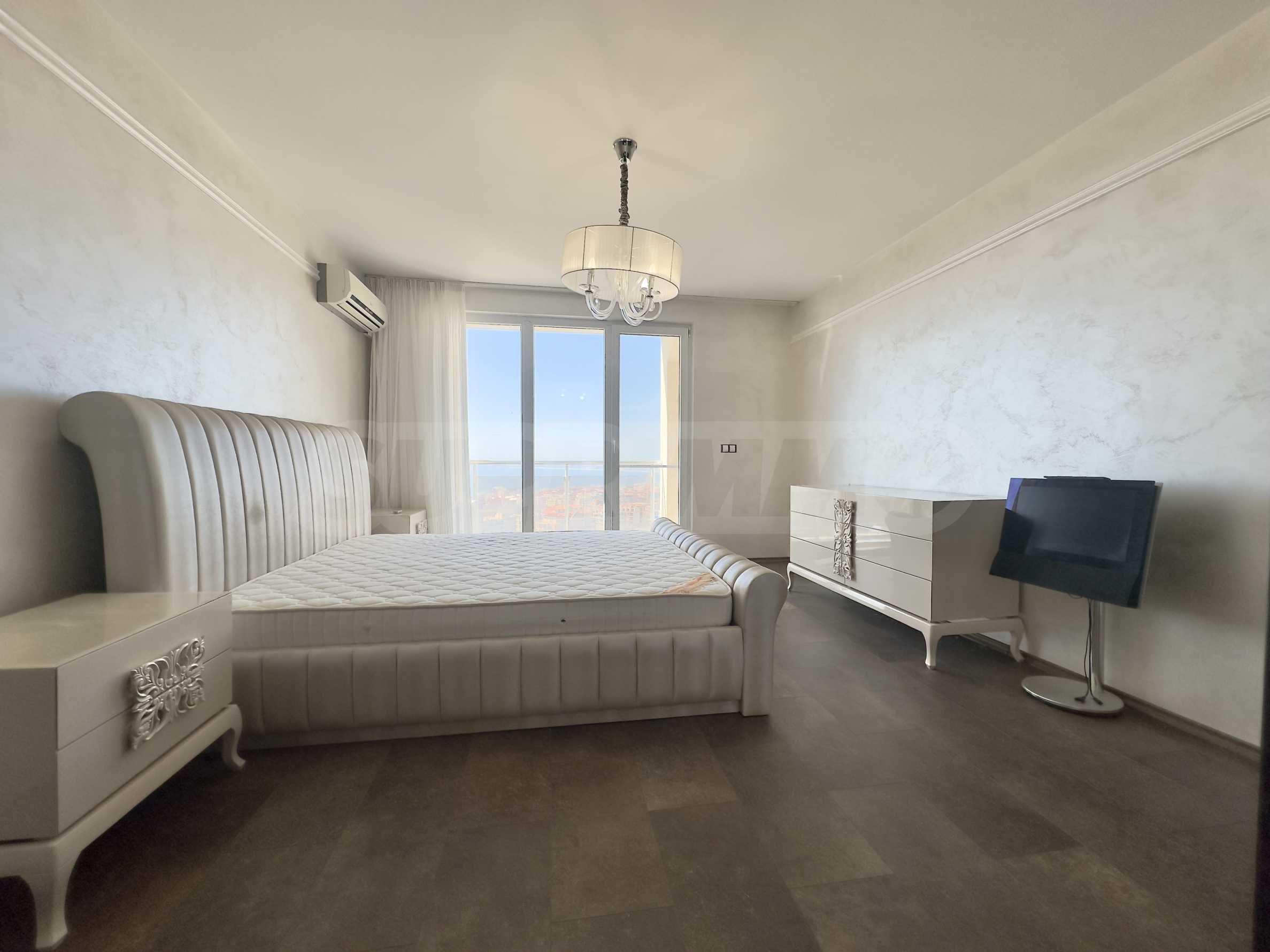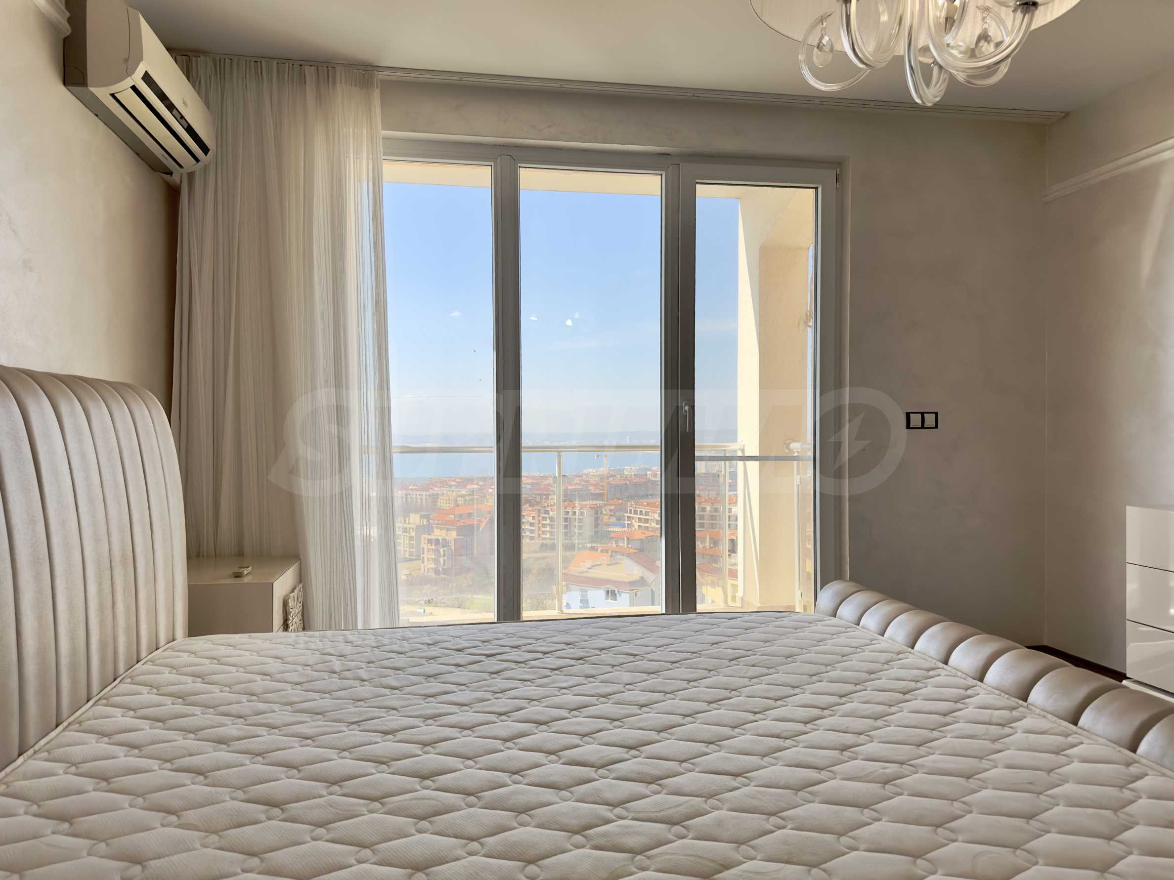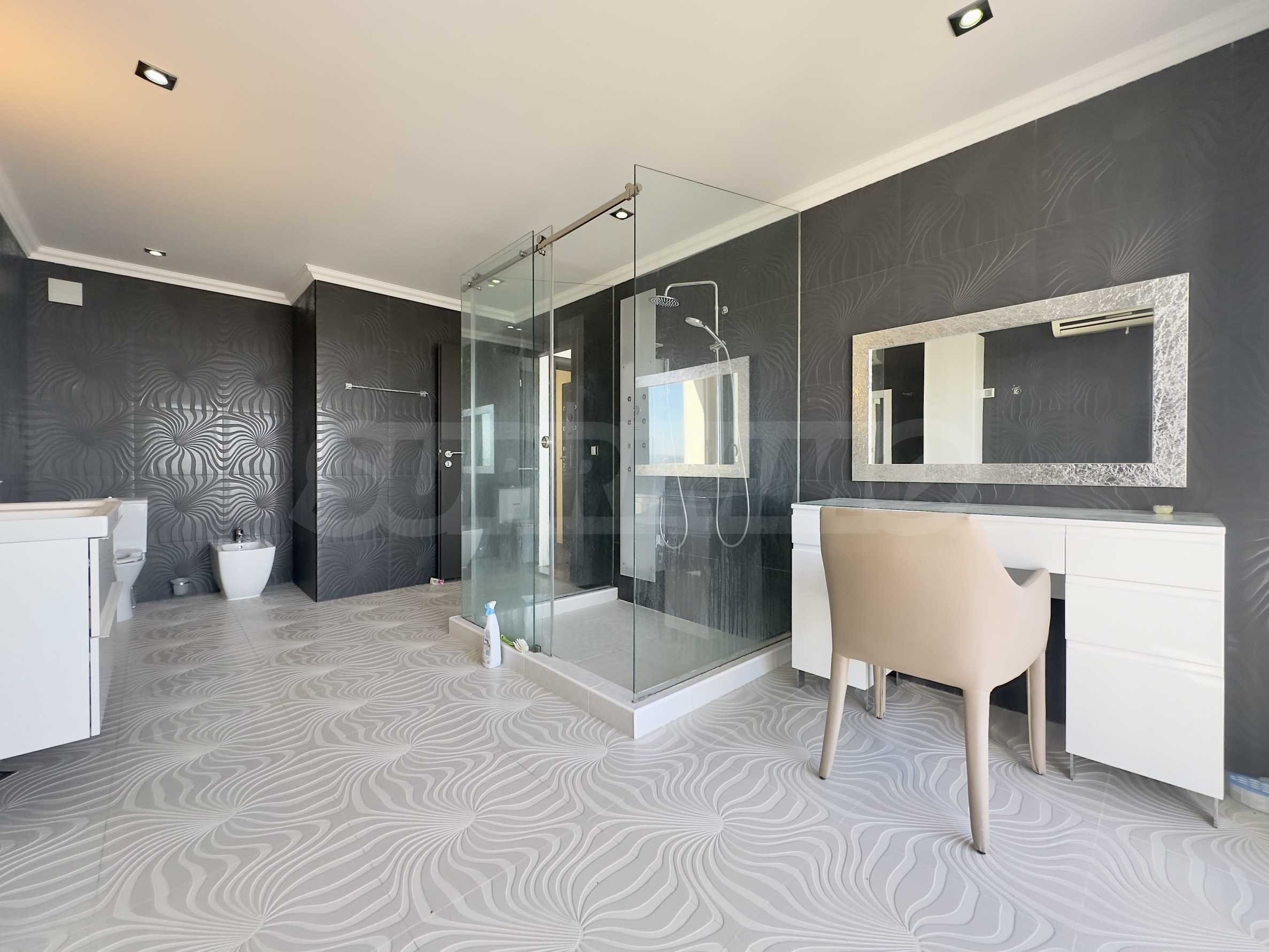 Каждая комната имеет выход на террасу с великолепным фронтальным видом на морской залив. Квартира полностью меблирована и оборудована новой высококачественной меблировкую и техникой. Отопление и охлаждение осуществляются кондиционерами в каждой комнате. На террасах установлены солнечные коллекторы, а также электрические тенты с дистанционным управлением.