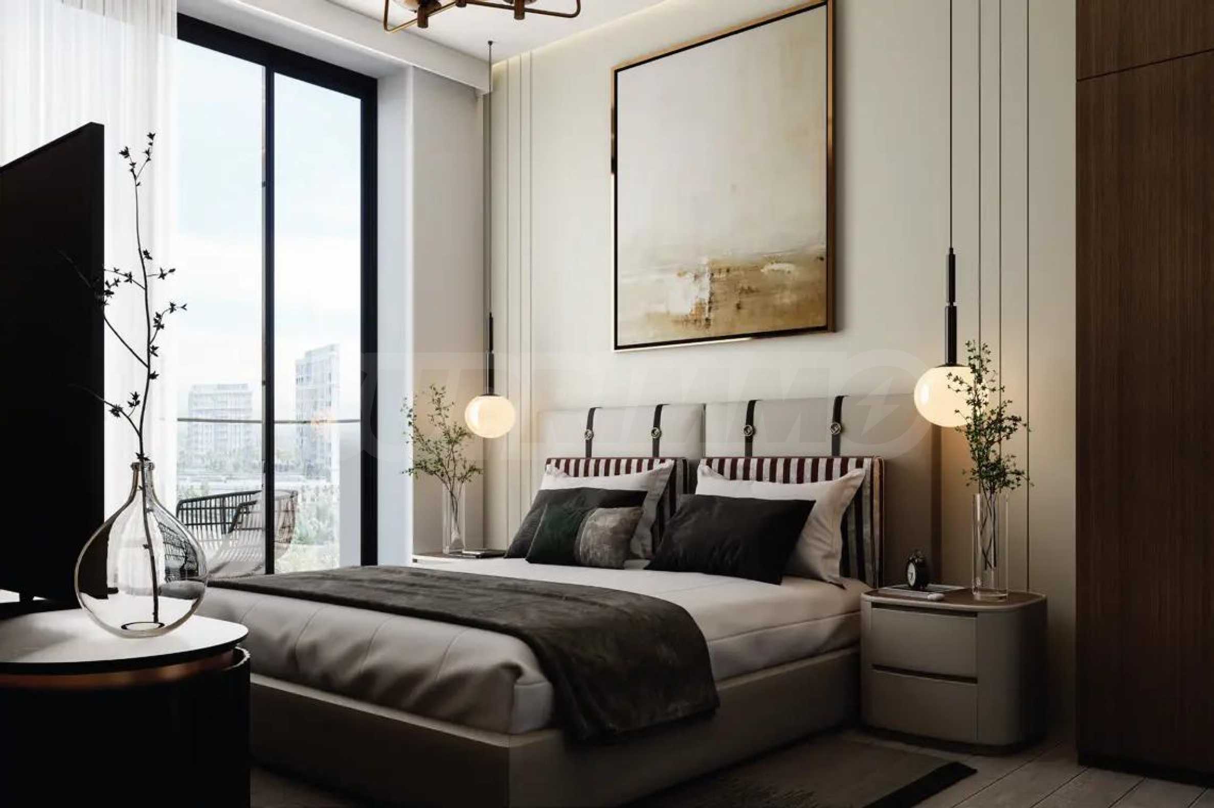 Квартиры сочетают в себе современный стиль и функциональность. Каждая квартира тщательно спланирована для максимального использования пространства, обеспечивая естественное освещение и комфорт. Большие окна и террасы обеспечивают не только обилие света, но и великолепный вид на населенный пункт и окрестности.