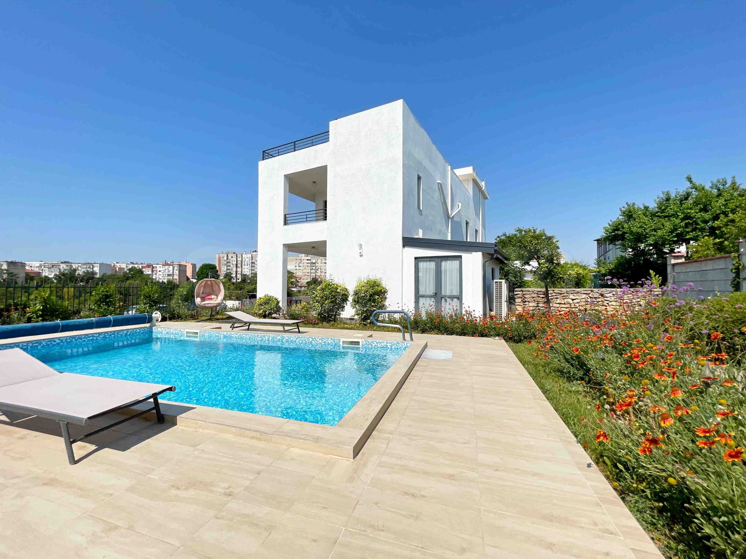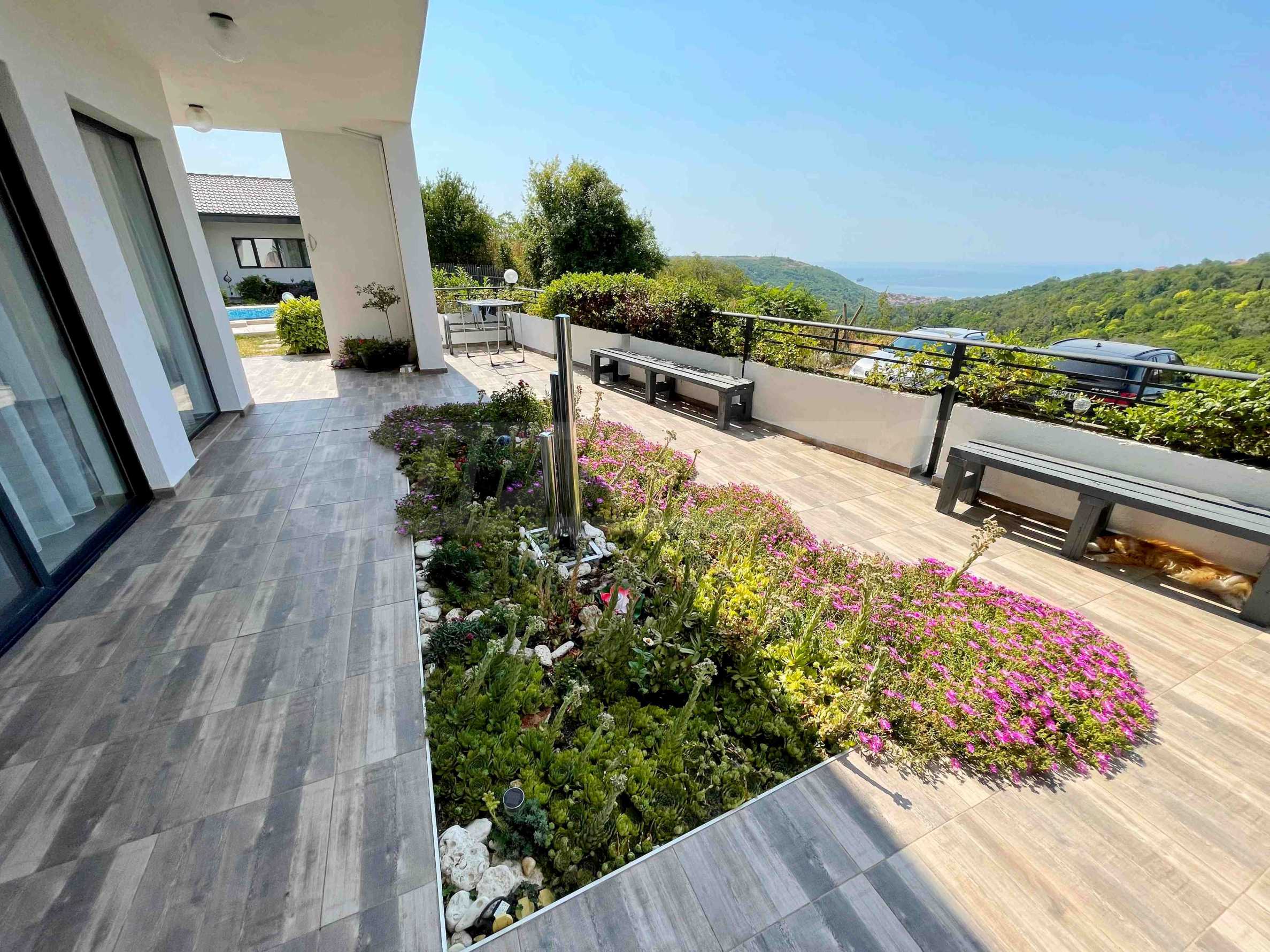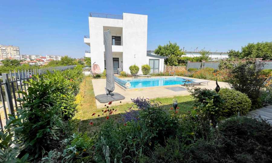 Представляем вашему вниманию замечательный трехуровневый дом с потрясающим панорамным видом на море и бассейном во дворе, в Балчике.