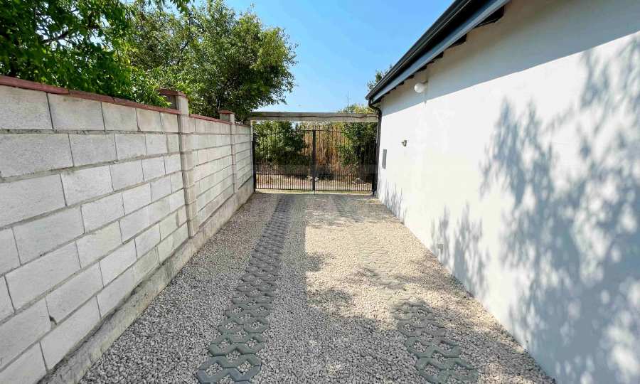 Во дворе имеется большое монолитное здание /которое может служить гостевым домом/, бассейн размером 4х7 м, парковка на несколько автомобилей и красивые аллеи со множеством цветов.