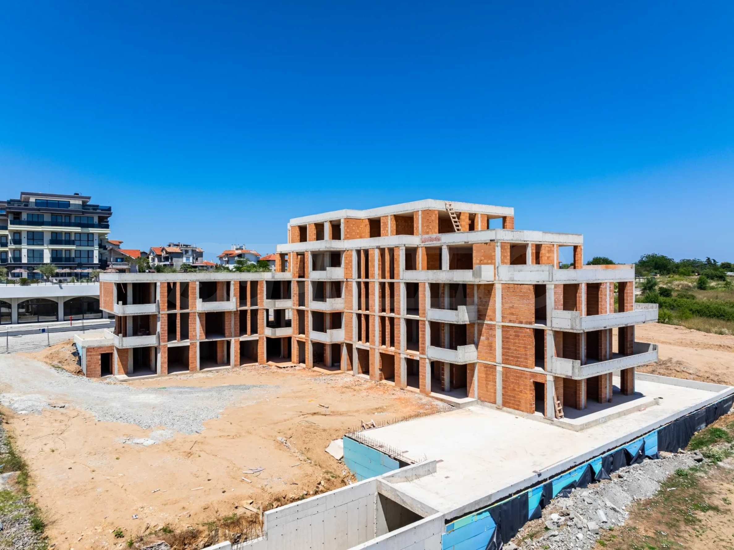 Квартира общей площадью 84,14 кв. м расположена на первом этаже, имеет веранду площадью 6,51 кв. м и собственный двор площадью 18,43 кв. м. Продаётся в состоянии полной отделки, отвечающем болгарским строительным нормам, со всеми современными системами, включая кондиционер, интернет, телевидение, систему безопасности и видеодомофон. Есть возможность отделки по индивидуальному проекту.