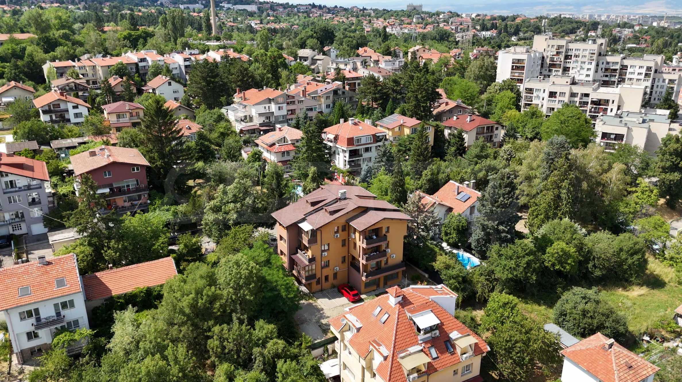 Здание расположено в сложившемся жилом районе с малоэтажной застройкой, озеленённой территорией и удобным выездом на бульвар Царя Бориса III и КАД. Здание построено на собственном земельном участке площадью 725 кв. м с площадью застройки 976 кв. м. Имеет два входа, благоустроенный двор и одиннадцать выделенных парковочных мест.