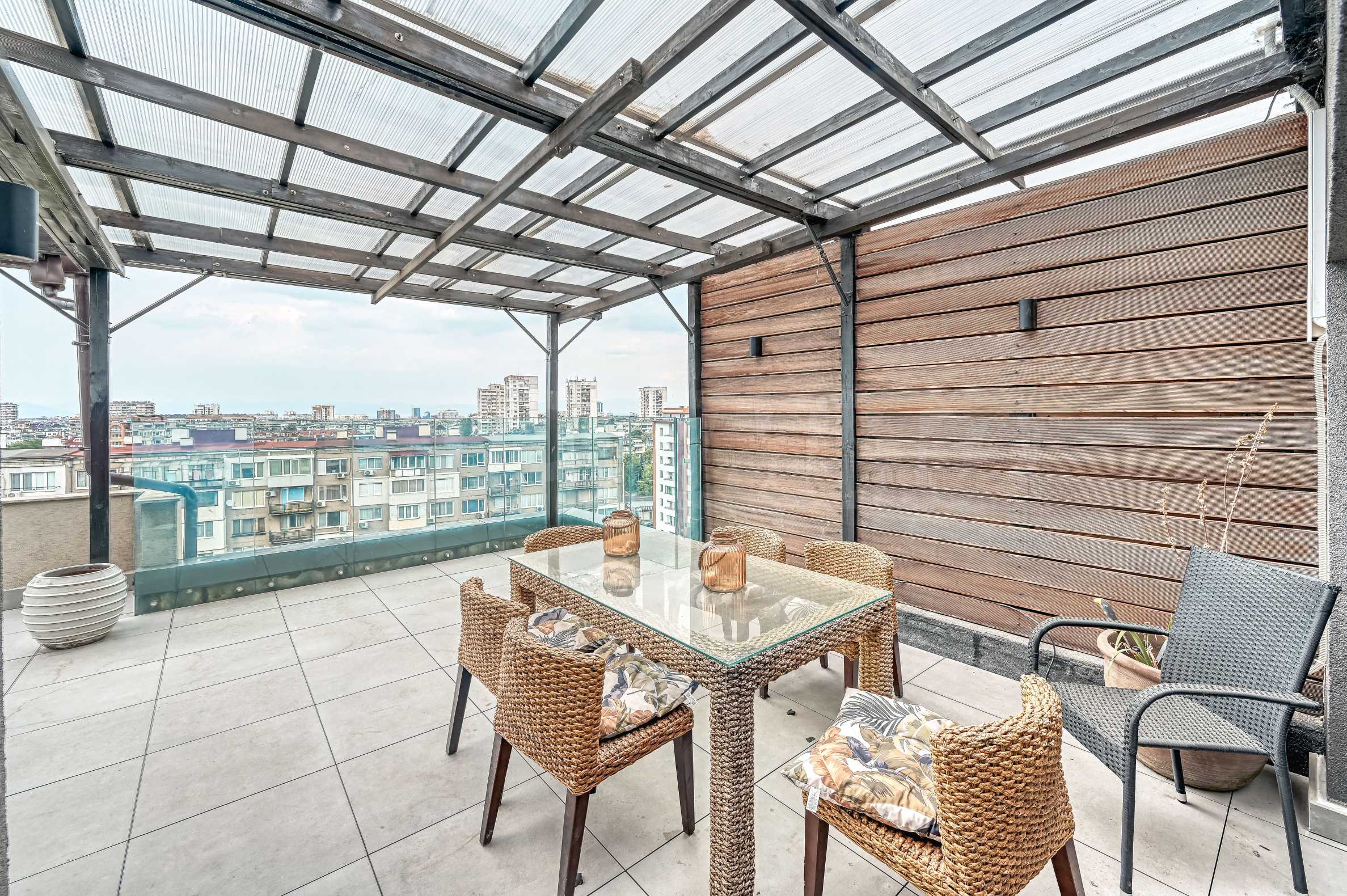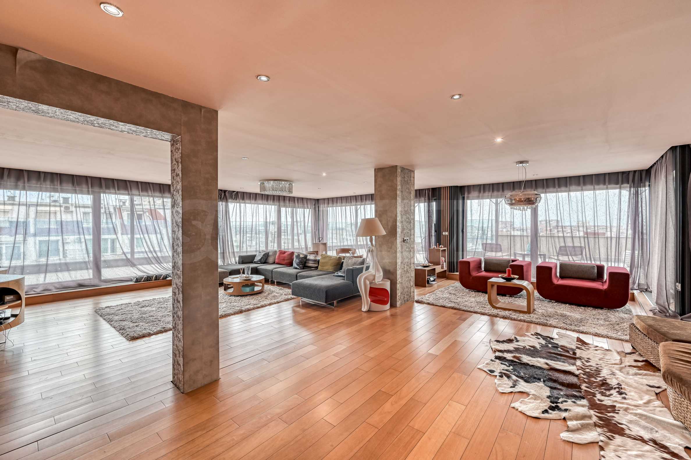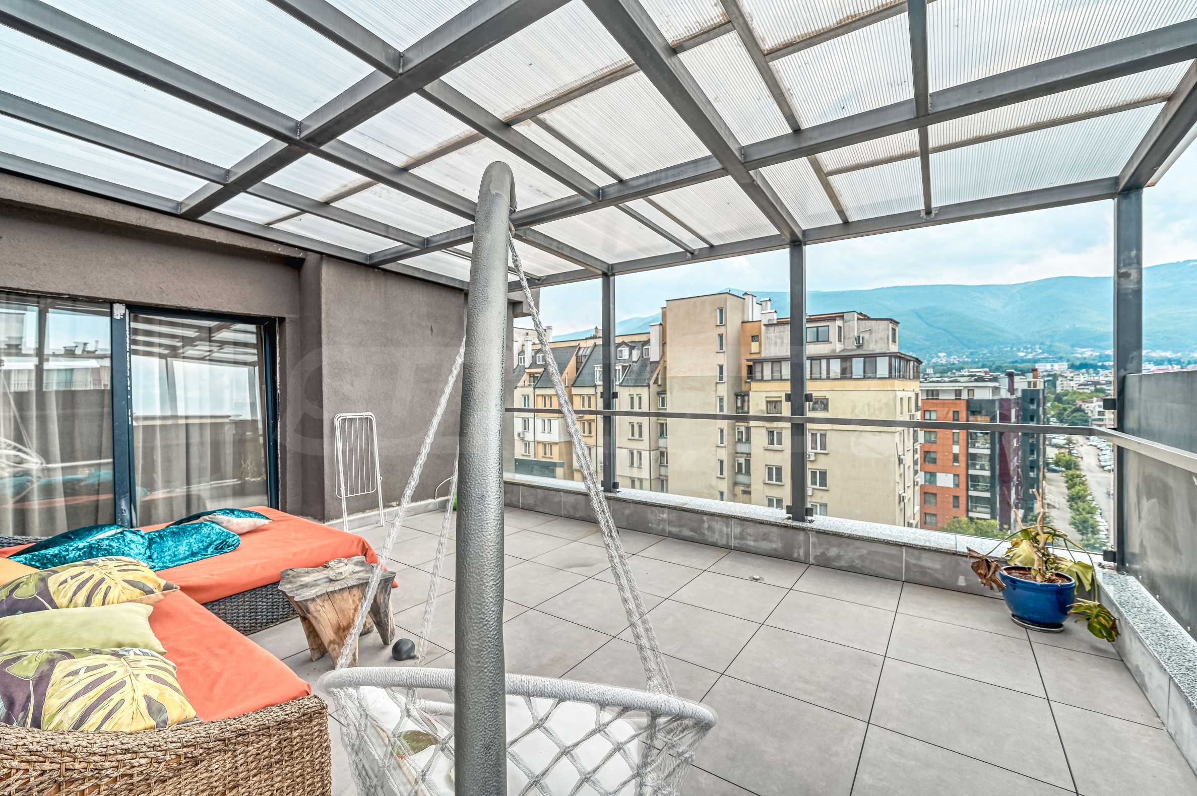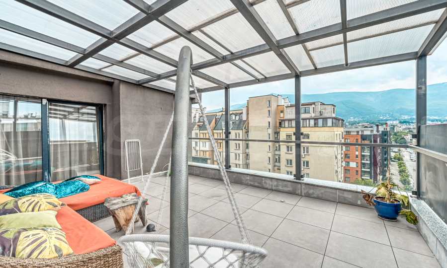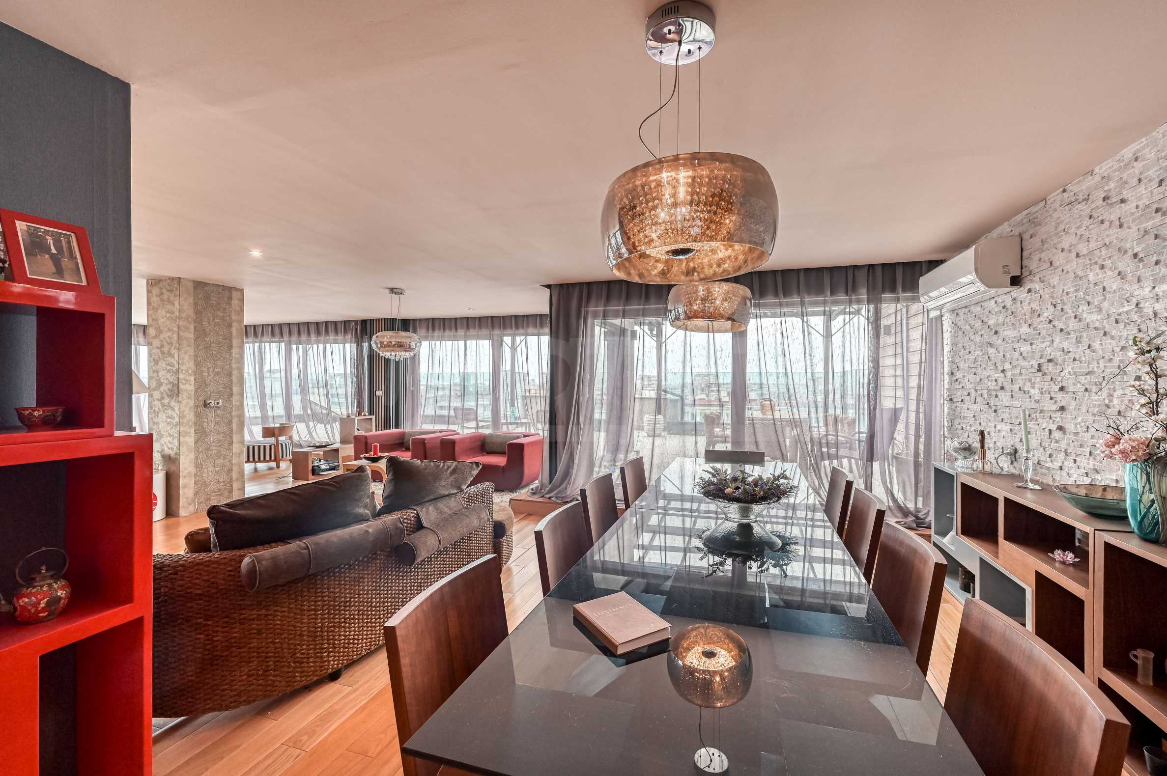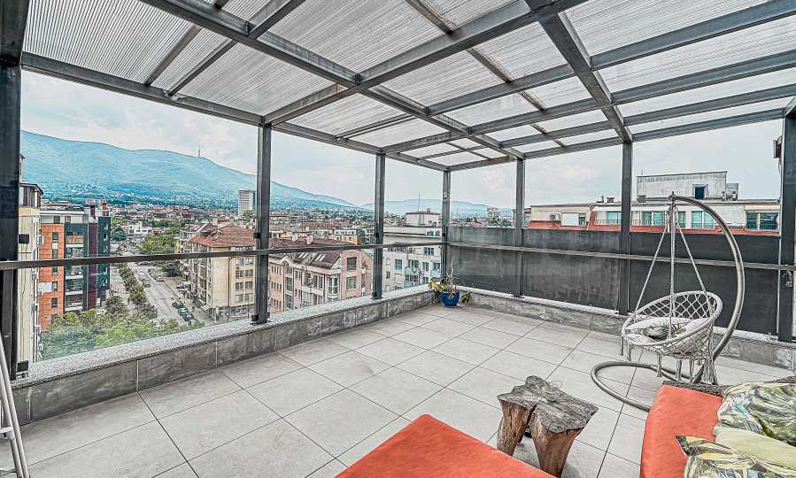 Представляем вам пентхаус на последнем этаже здания с исключительным панорамным видом, изысканным дизайном и впечатляющей террасой на крыше, расположенный в престижном месте на бульваре Тодора Каблешкова, рядом с торговым центром «Болгария». Квартира обставлена дизайнерской меблировкую высокого класса. Лифт ведет прямо в квартиру.