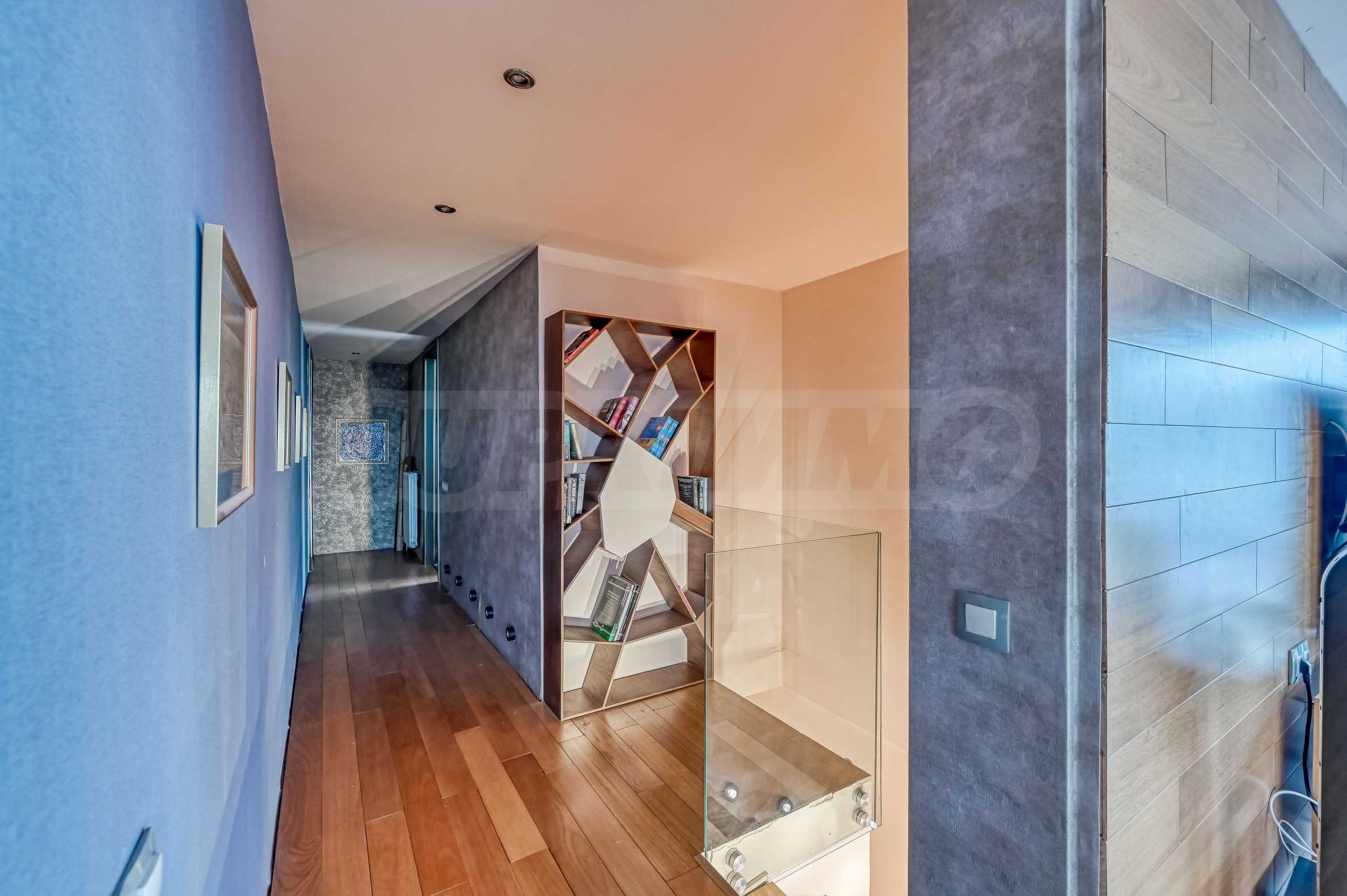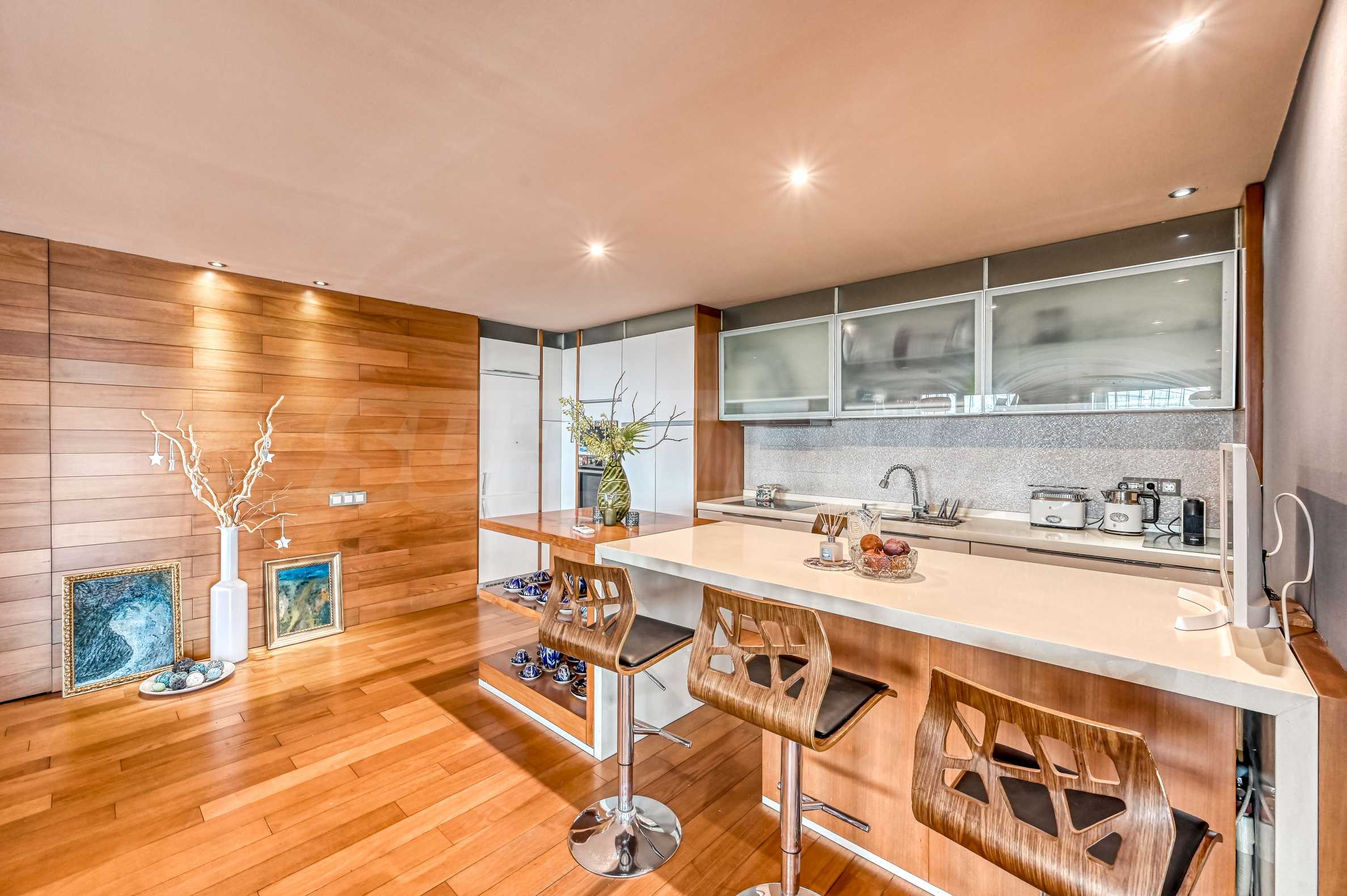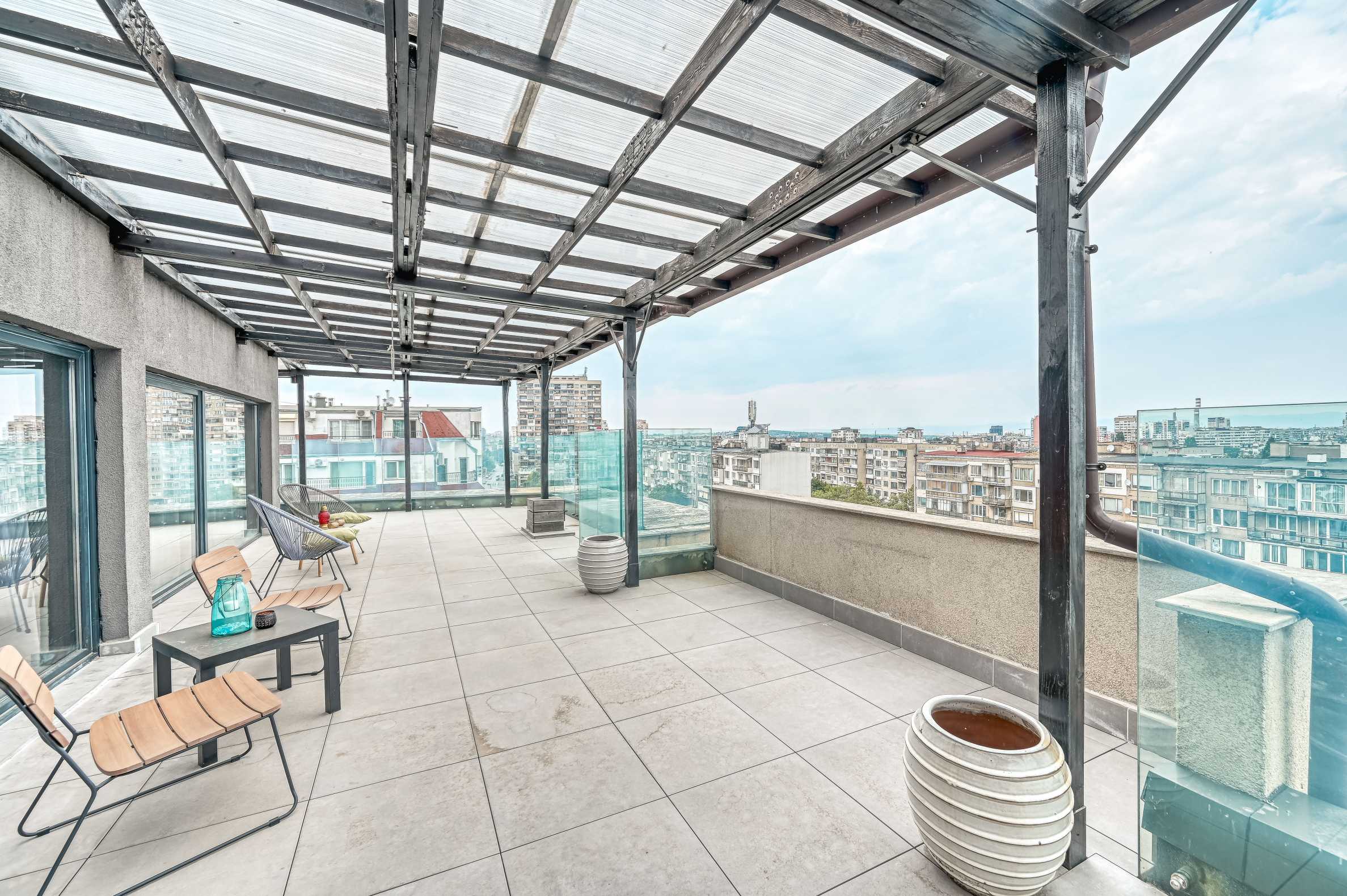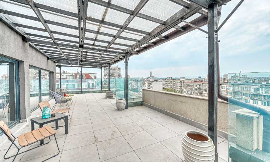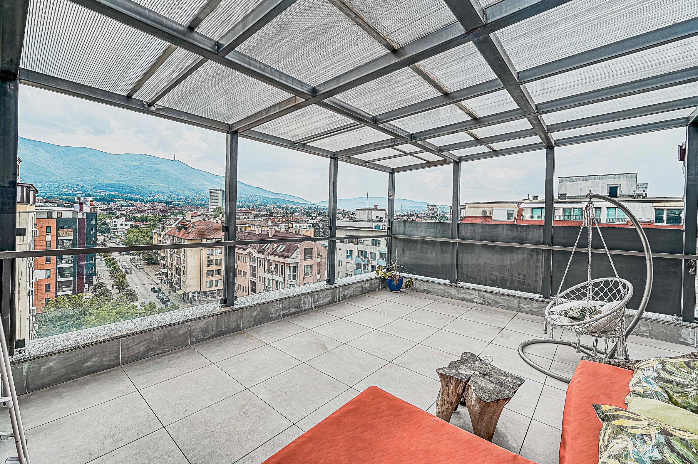 Представляем вам пентхаус на последнем этаже здания с исключительным панорамным видом, изысканным дизайном и впечатляющей террасой на крыше, расположенный в престижном месте на бульваре Тодора Каблешкова, рядом с торговым центром «Болгария». Квартира обставлена дизайнерской меблировкую высокого класса. Лифт ведет прямо в квартиру.