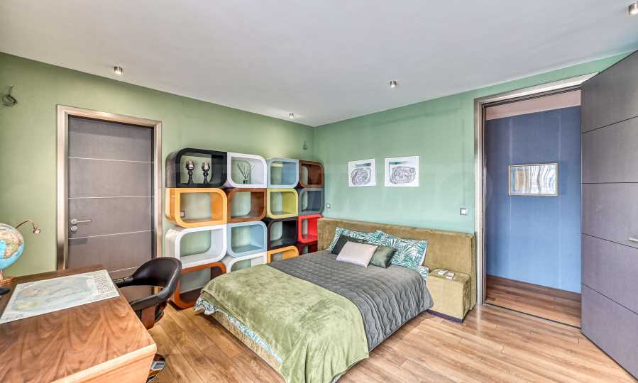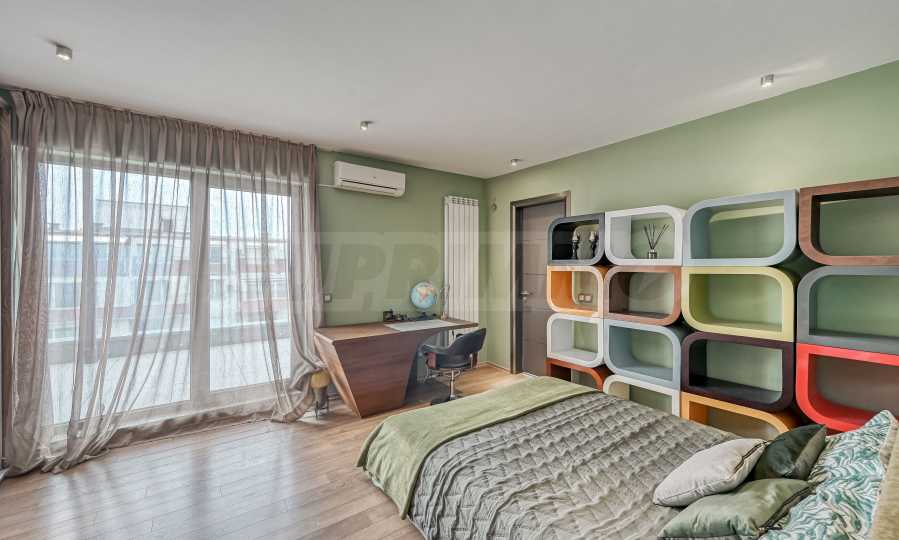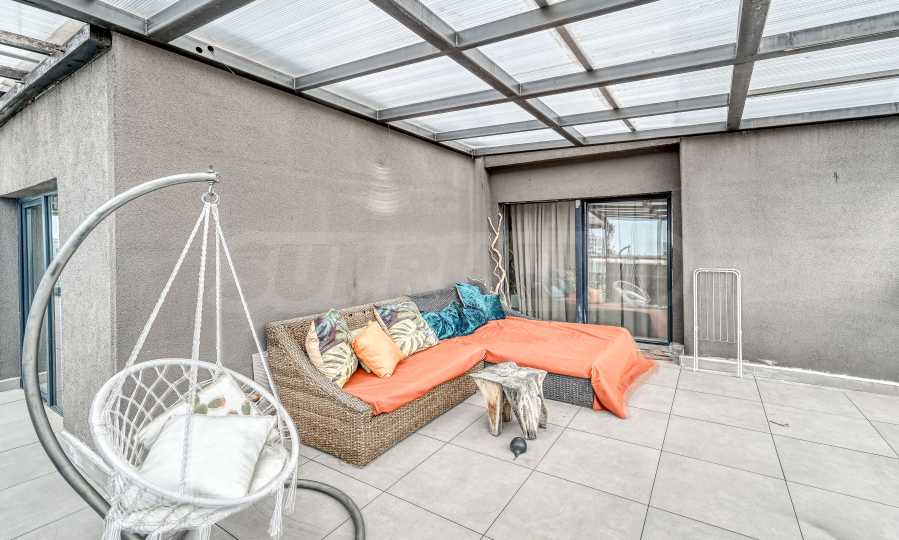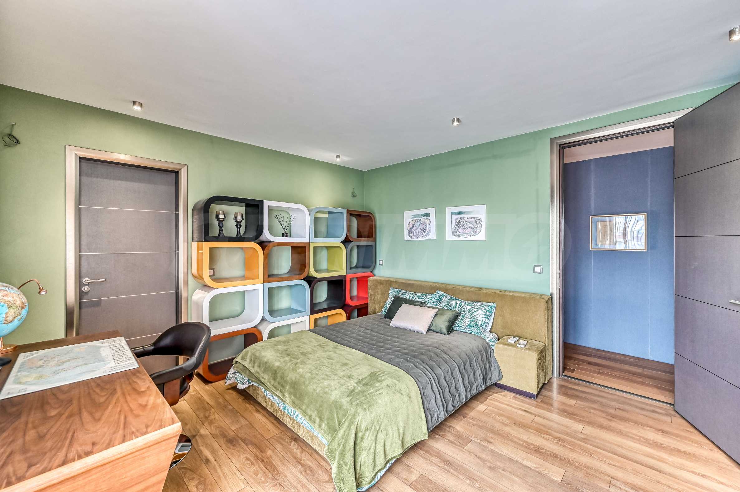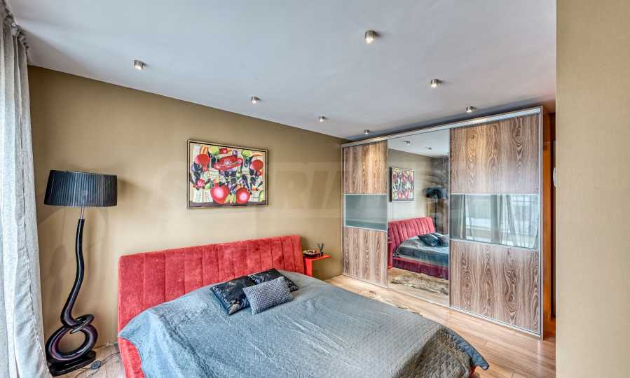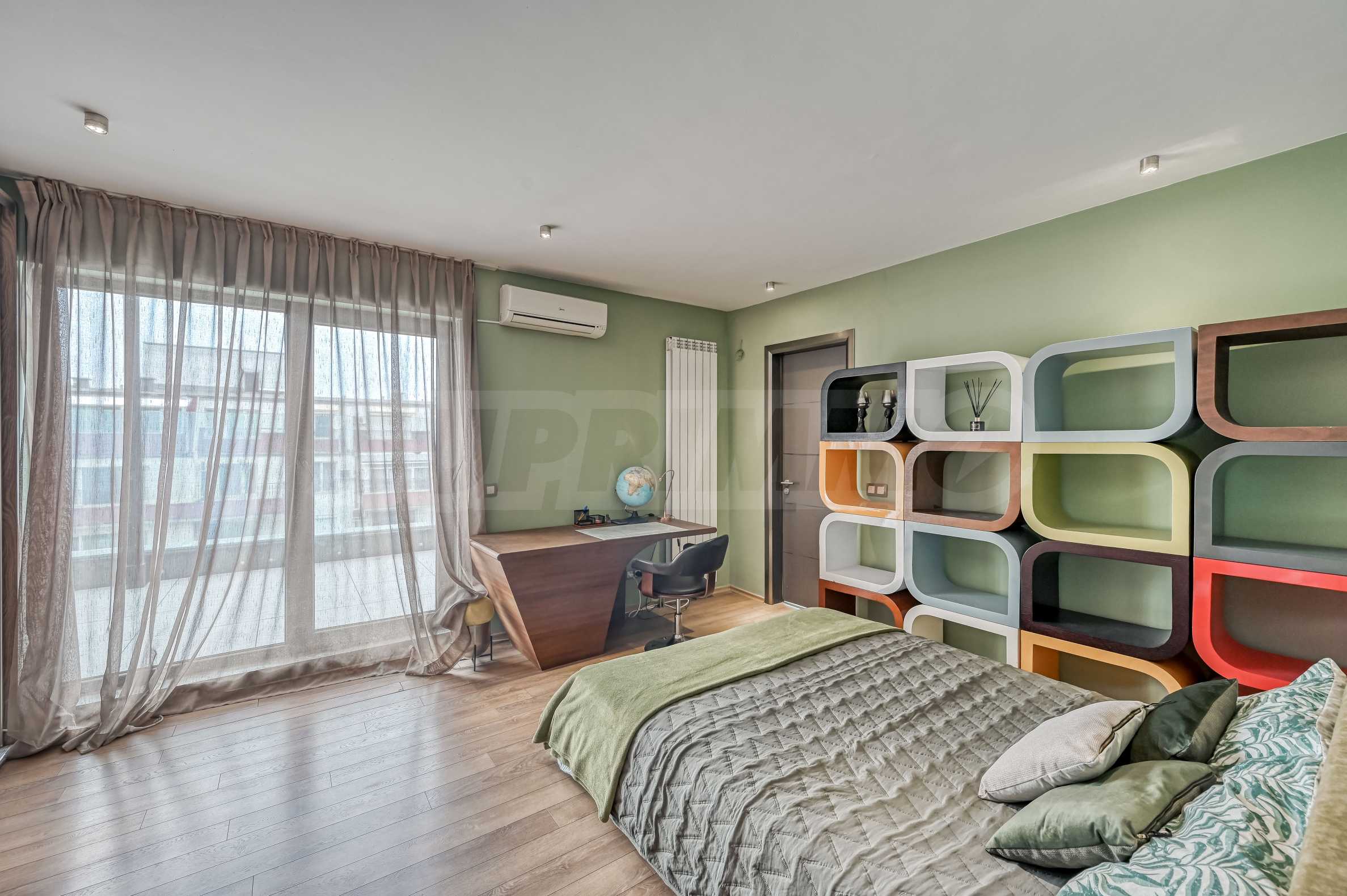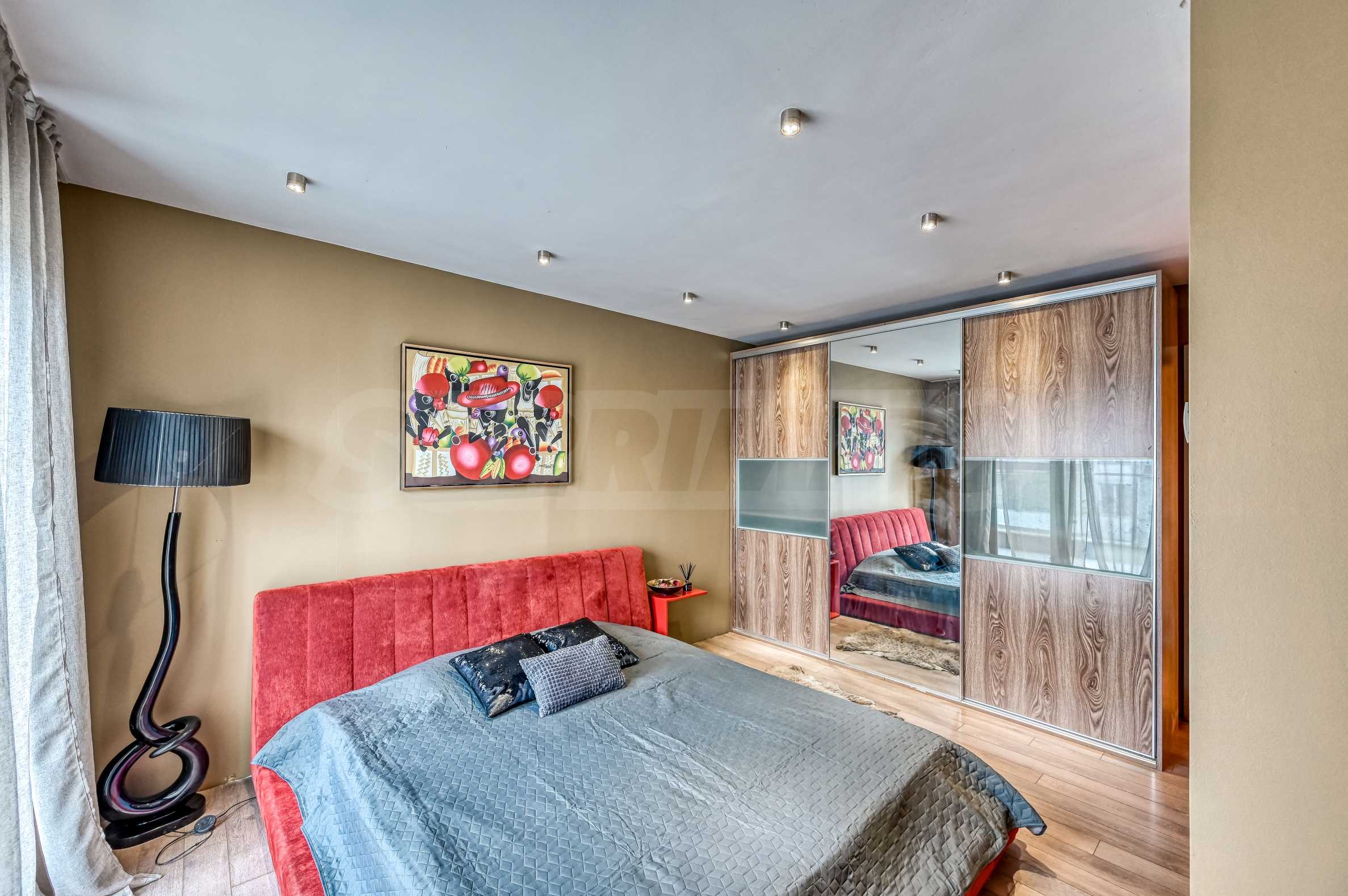 Представляем вам пентхаус на последнем этаже здания с исключительным панорамным видом, изысканным дизайном и впечатляющей террасой на крыше, расположенный в престижном месте на бульваре Тодора Каблешкова, рядом с торговым центром «Болгария». Квартира обставлена дизайнерской меблировкую высокого класса. Лифт ведет прямо в квартиру.