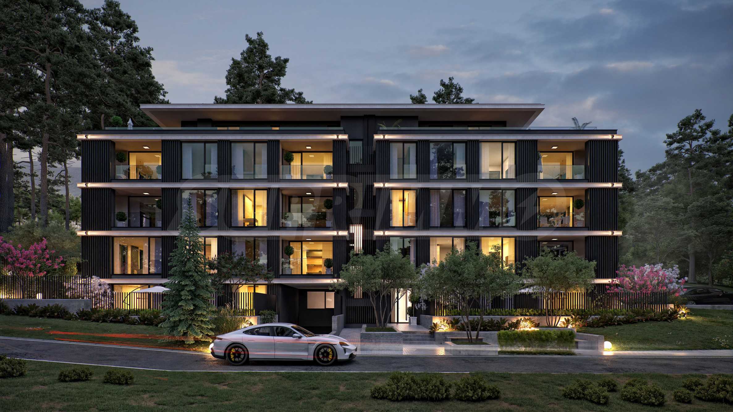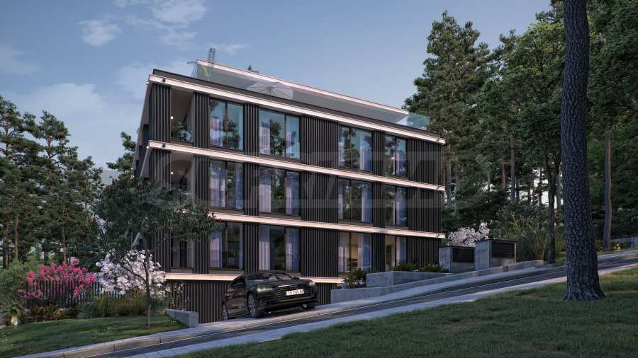 Квартиры включают три спальни и одну четырехкомнатную. По данным BDS, они предлагаются в частично готовом виде. Из окон квартир открывается вид на озеро или живописный сосновый лес за зданием, поскольку территория полностью окружена зеленью и уже застроена пригодными для проживания домами, без риска строительства в будущем поблизости.
