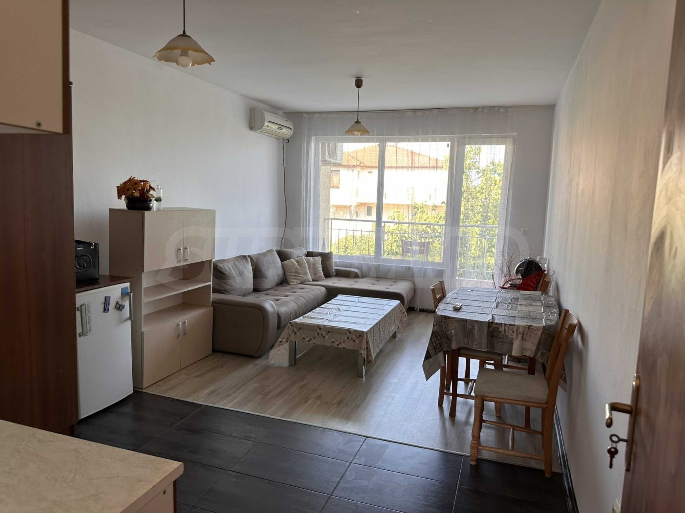 Мы эксклюзивно предлагаем в аренду однокомнатную квартиру в закрытом жилом комплексе «Смокинья», расположенном недалеко от автобусной остановки, в районе «Траката» города Варны.