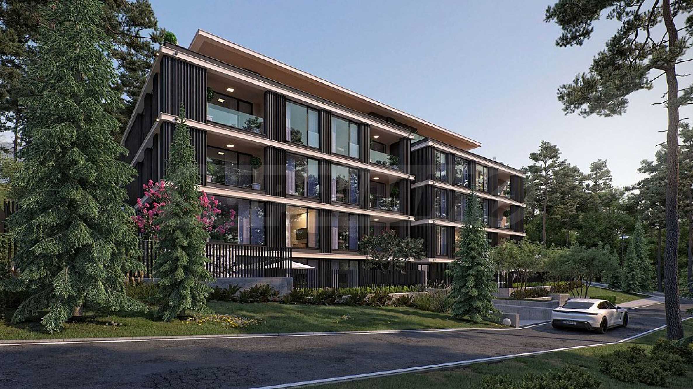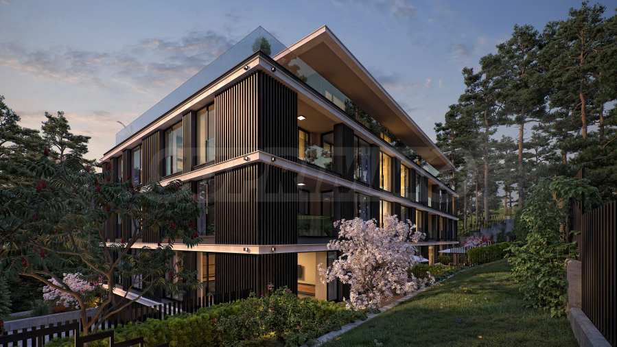 Квартиры включают три спальни и одну четырехкомнатную. По данным BDS, они предлагаются в частично готовом виде. Из окон квартир открывается вид на озеро или живописный сосновый лес за зданием, поскольку территория полностью окружена зеленью и уже застроена пригодными для проживания домами, без риска строительства в будущем поблизости.