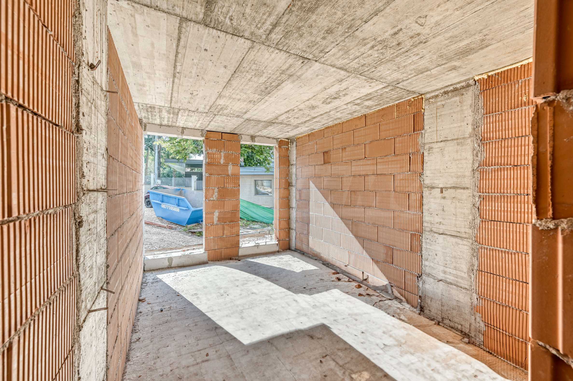 При строительстве использованы высококачественные материалы – кирпич Wienerberger, бетон В25, крыша с гидроизоляцией IKO, пятикамерные окна ПВХ с тройным остеклением и наружная теплоизоляция толщиной 10 см.