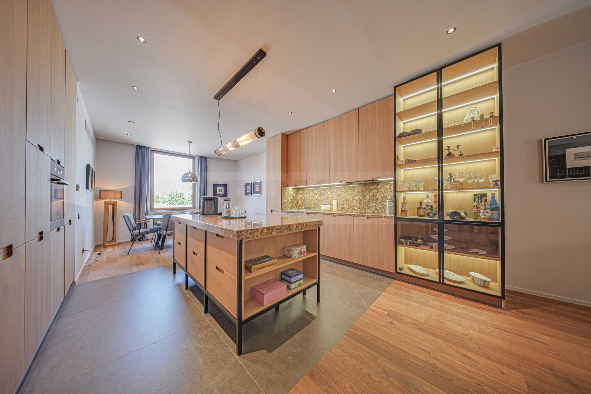 Первый этаж залит естественным светом и включает просторную гостиную, столовую и кухню открытой планировки. Высококачественные натуральные материалы, тёплые землистые тона и тщательно подобранные элементы дизайна создают атмосферу идеального баланса стиля и комфорта. В центре пространства находится большой кухонный остров — настоящее вдохновение для любого кулинарного приключения.