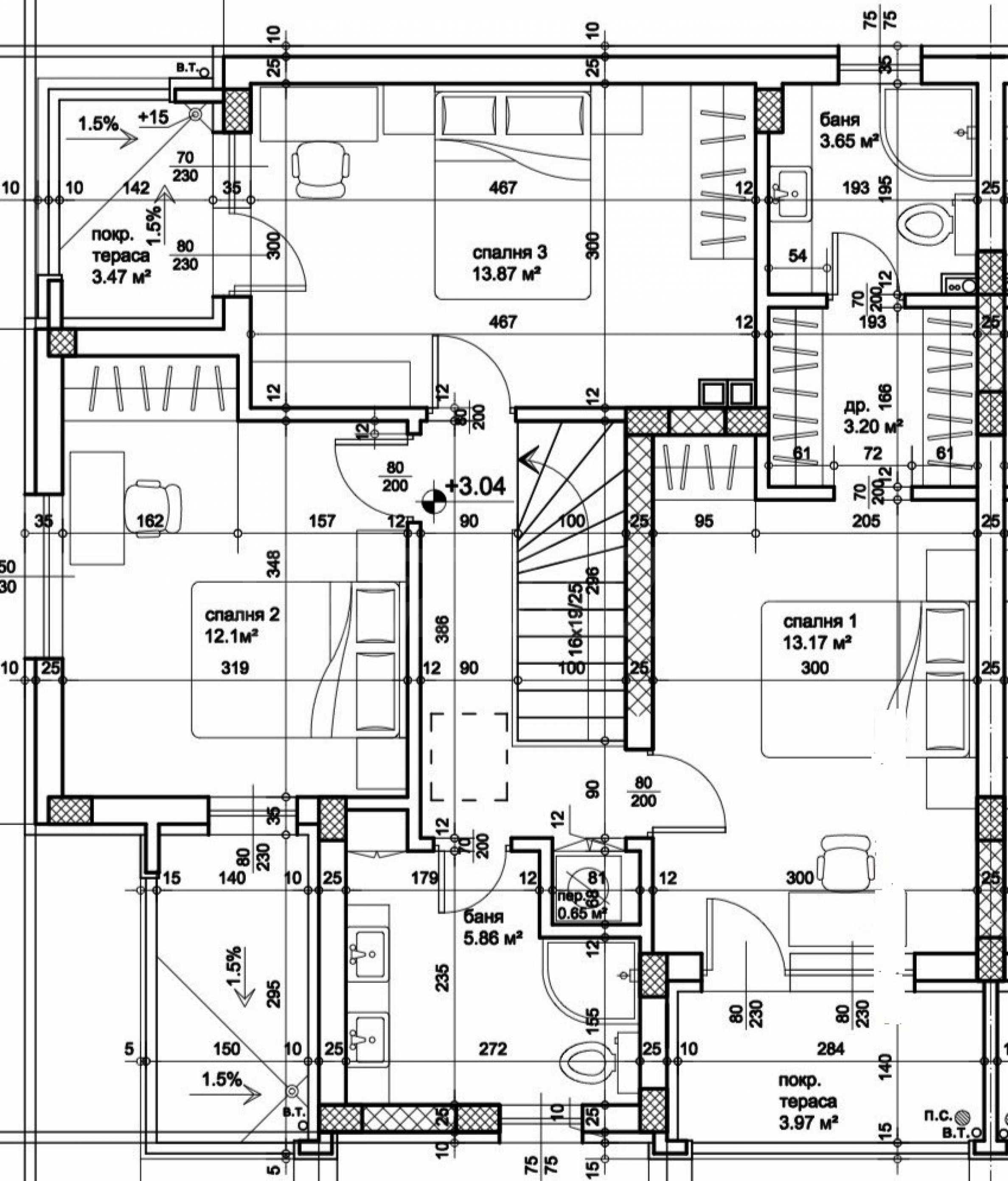 • второй этаж - три спальни, две ванные комнаты, гардеробная, кладовая, две террасы.