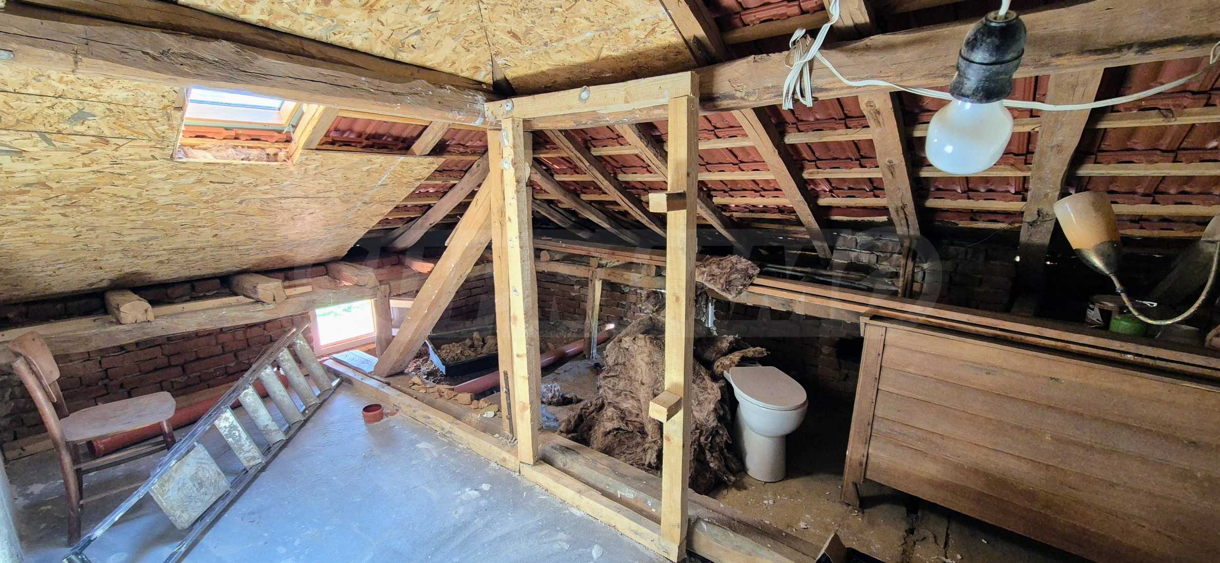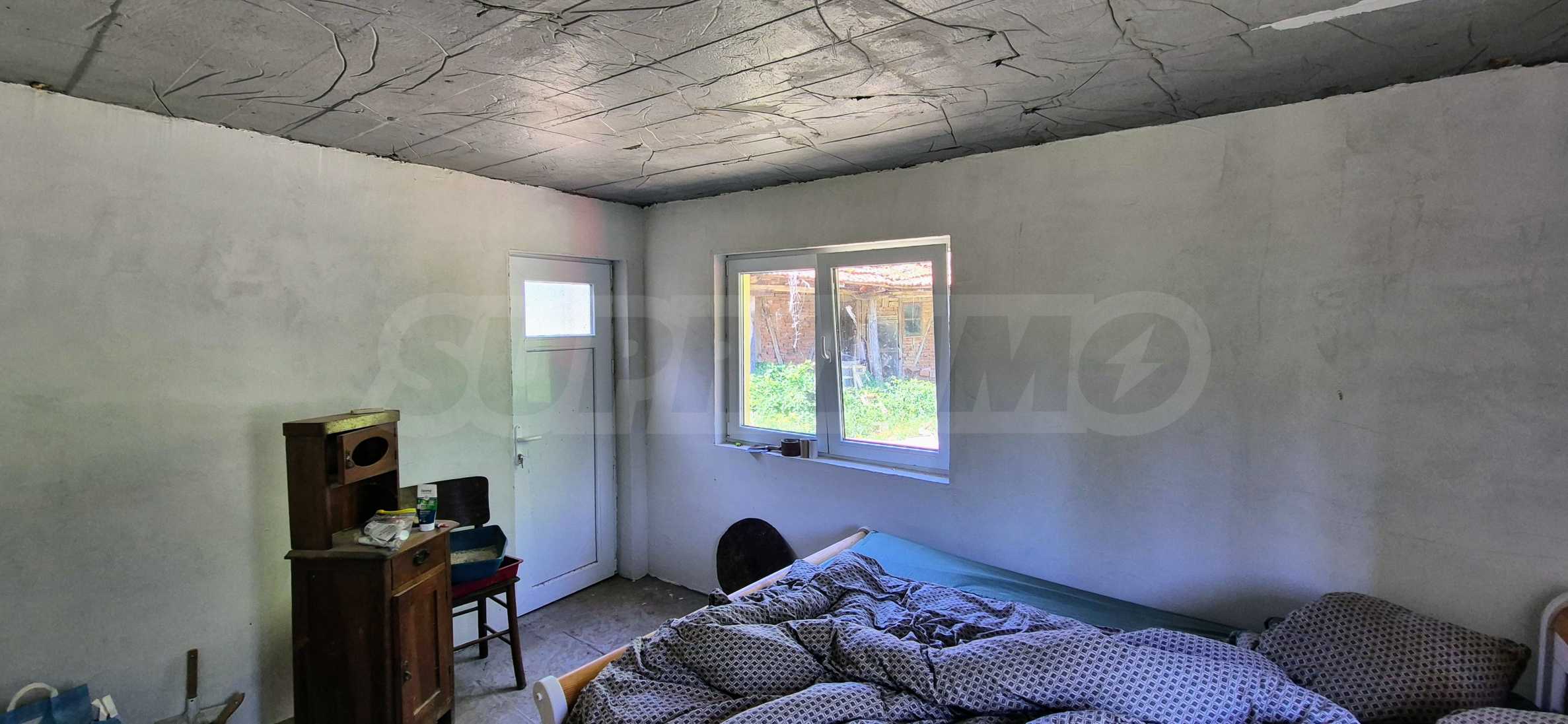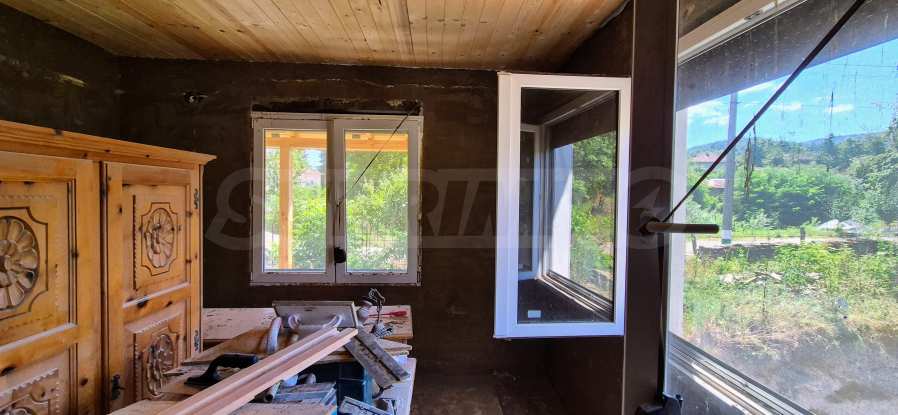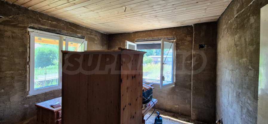 В доме новая крыша (без гидроизоляции), заменены пластиковые окна, новая электропроводка, установлены металлические ставни на окнах, частично выполнен ремонт. Внутри демонтировали потолки и полы, что открывает возможность новой планировки и отделки по вкусу и потребностям будущих владельцев. Санузла нет.