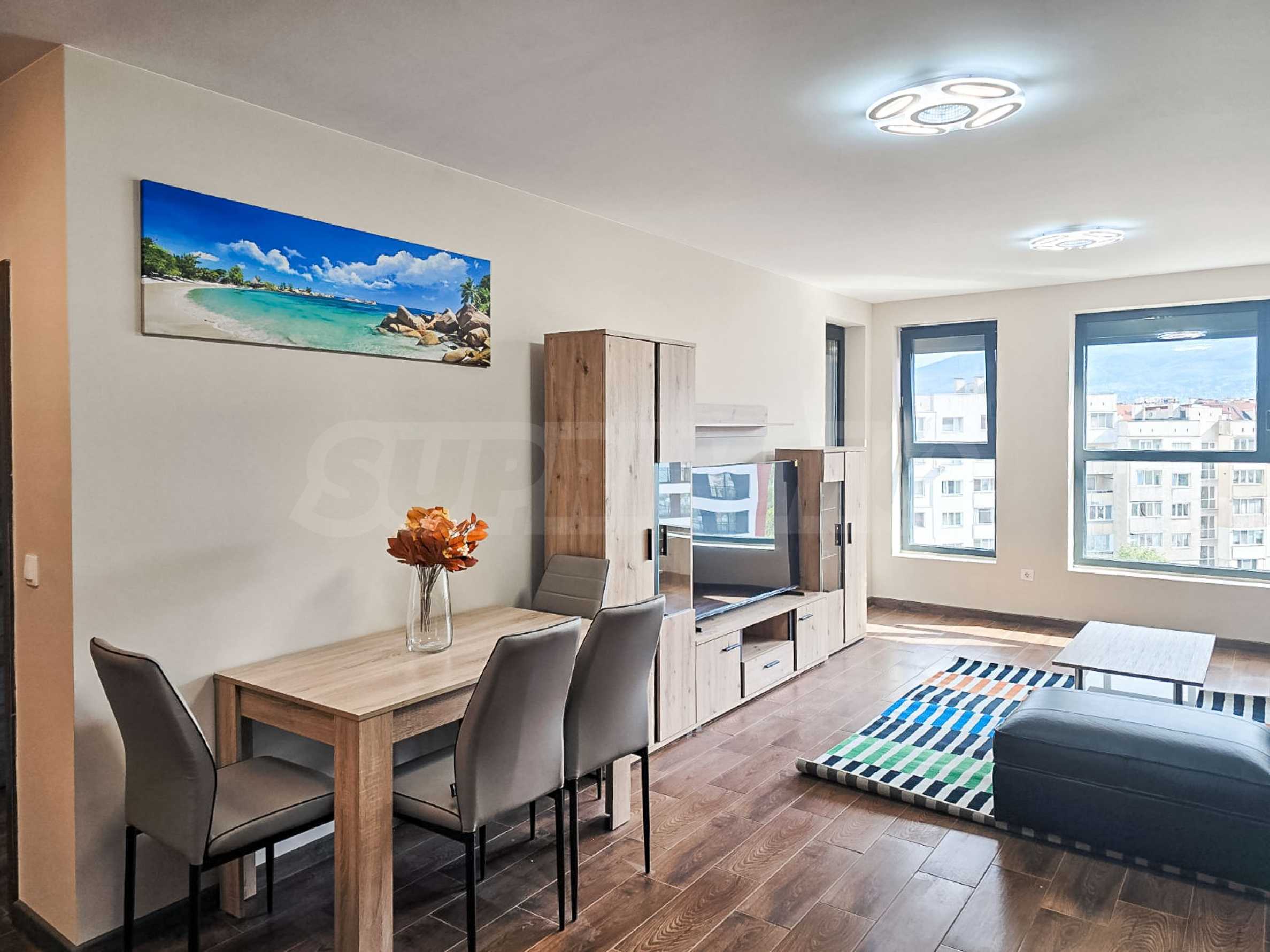 Предлагаем в аренду уютную, комфортабельно меблированную двухкомнатную квартиру в самом сердце Софии — в роскошном закрытом комплексе напротив парка Возрождения, недавно открывшегося Аквапарка, торгового центра Mall of Sofia и в минуте ходьбы от станции метро «Опалченска». В непосредственной близости находятся Lidl, различные торговые аутлеты, рестораны и удобное транспортное сообщение.
