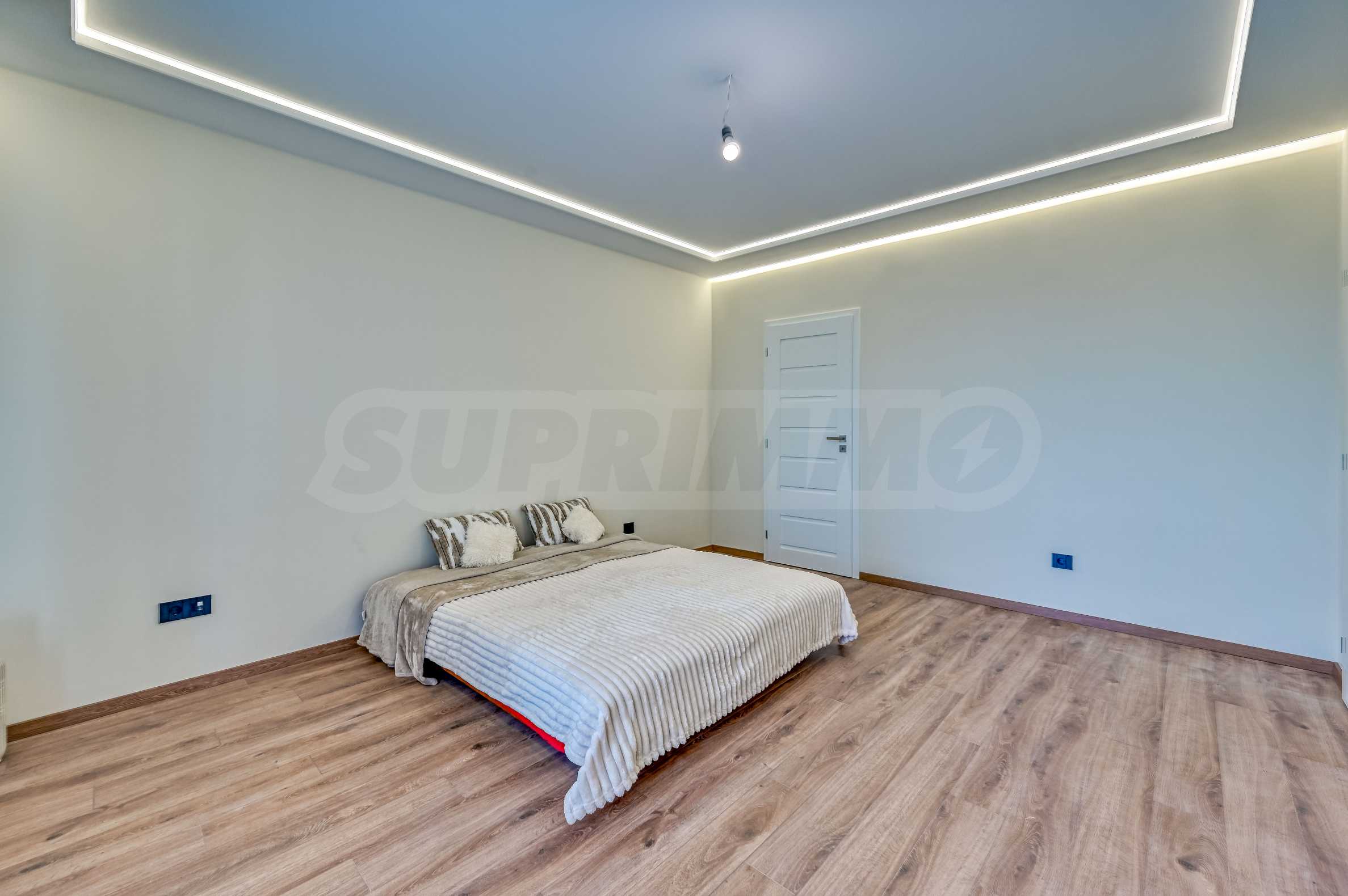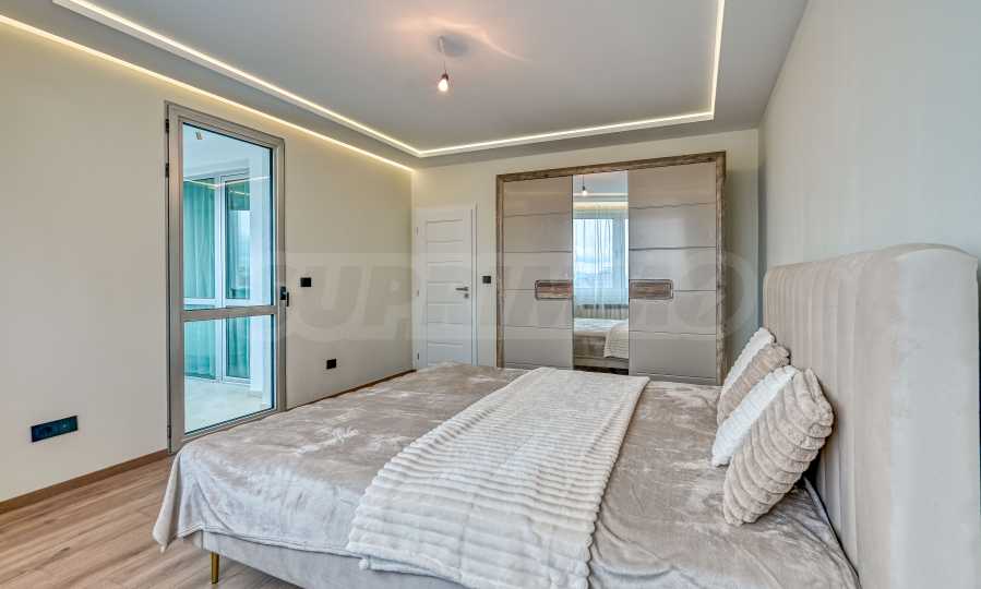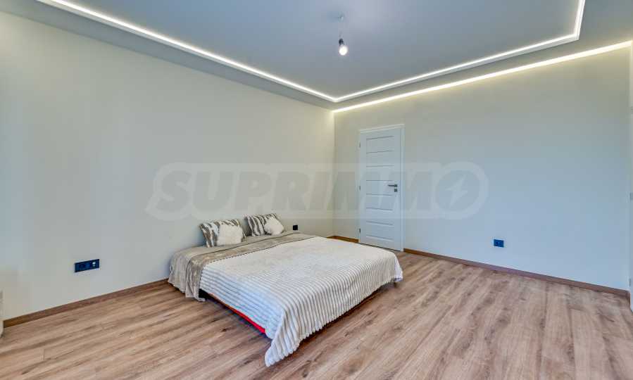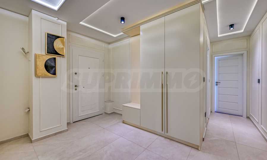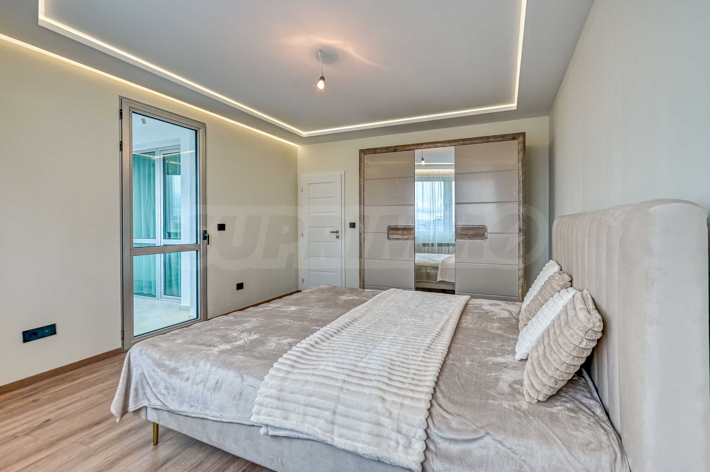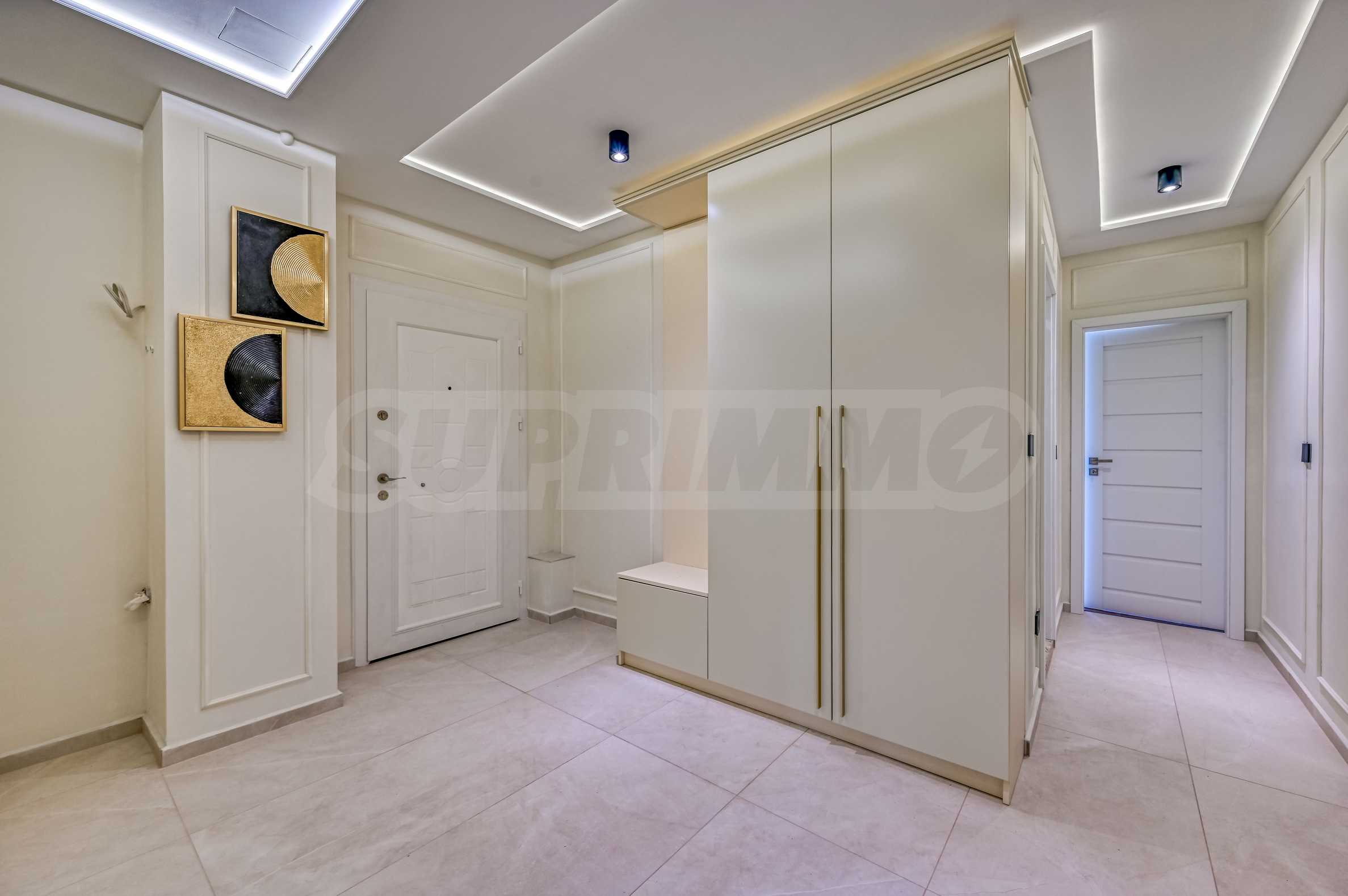 Квартира отличается простором, чистым дизайном и высококачественной отделкой. Она расположена на площади 120 кв. м и включает в себя просторную гостиную со столовой и полностью оборудованной кухней площадью 46 кв. м, главную спальню, вторую спальню, которую можно обставить по желанию арендатора, две ванные комнаты и террасу с видом на населенный пункт и гору Витоша.