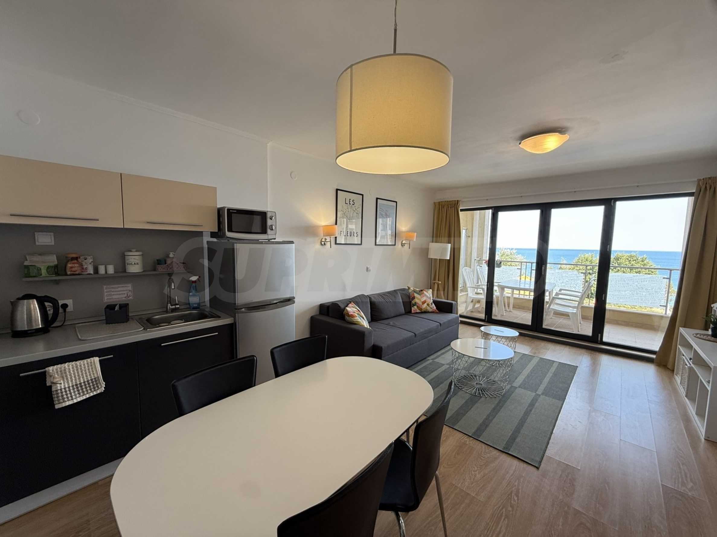 Представляем вам двухкомнатную квартиру в закрытом комплексе на первой линии от моря в Бяле. Отличное расположение в тихом и спокойном месте, рядом с продуктовым магазином и ресторанами.