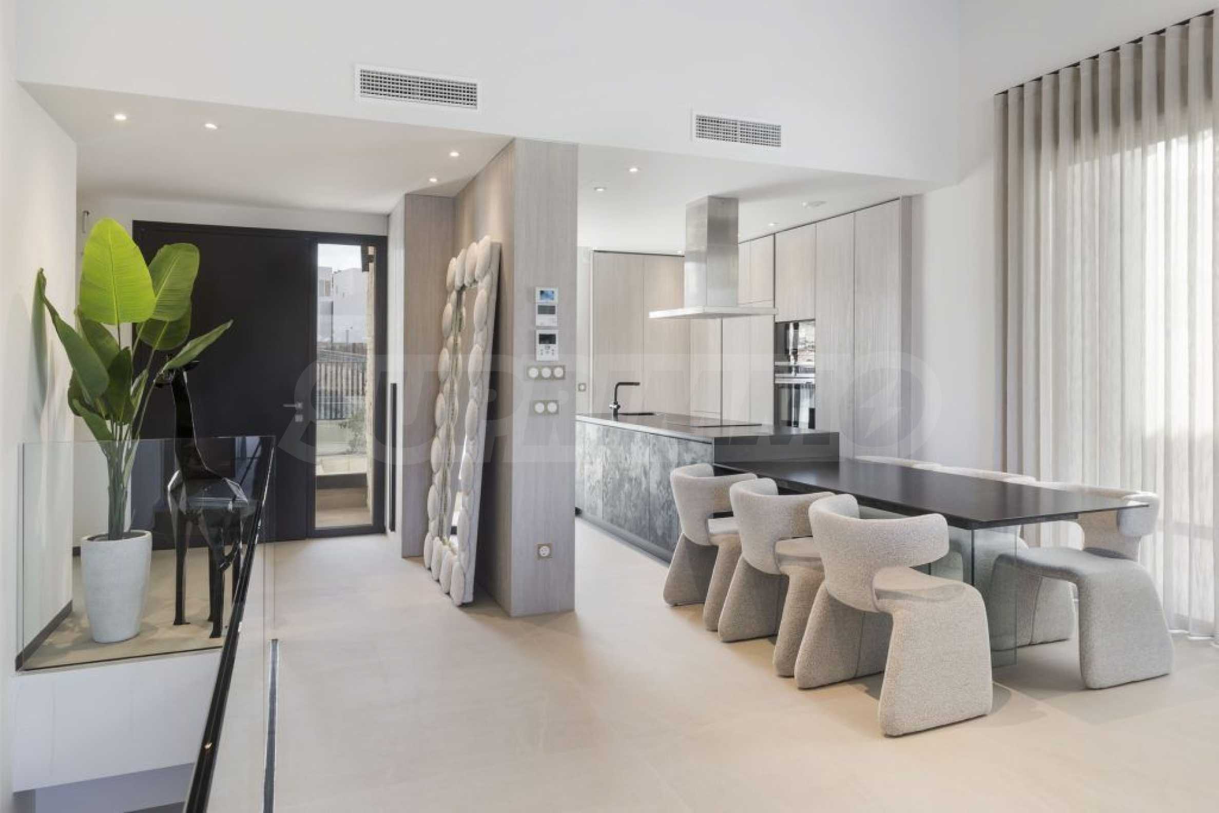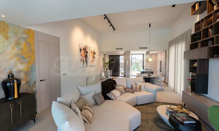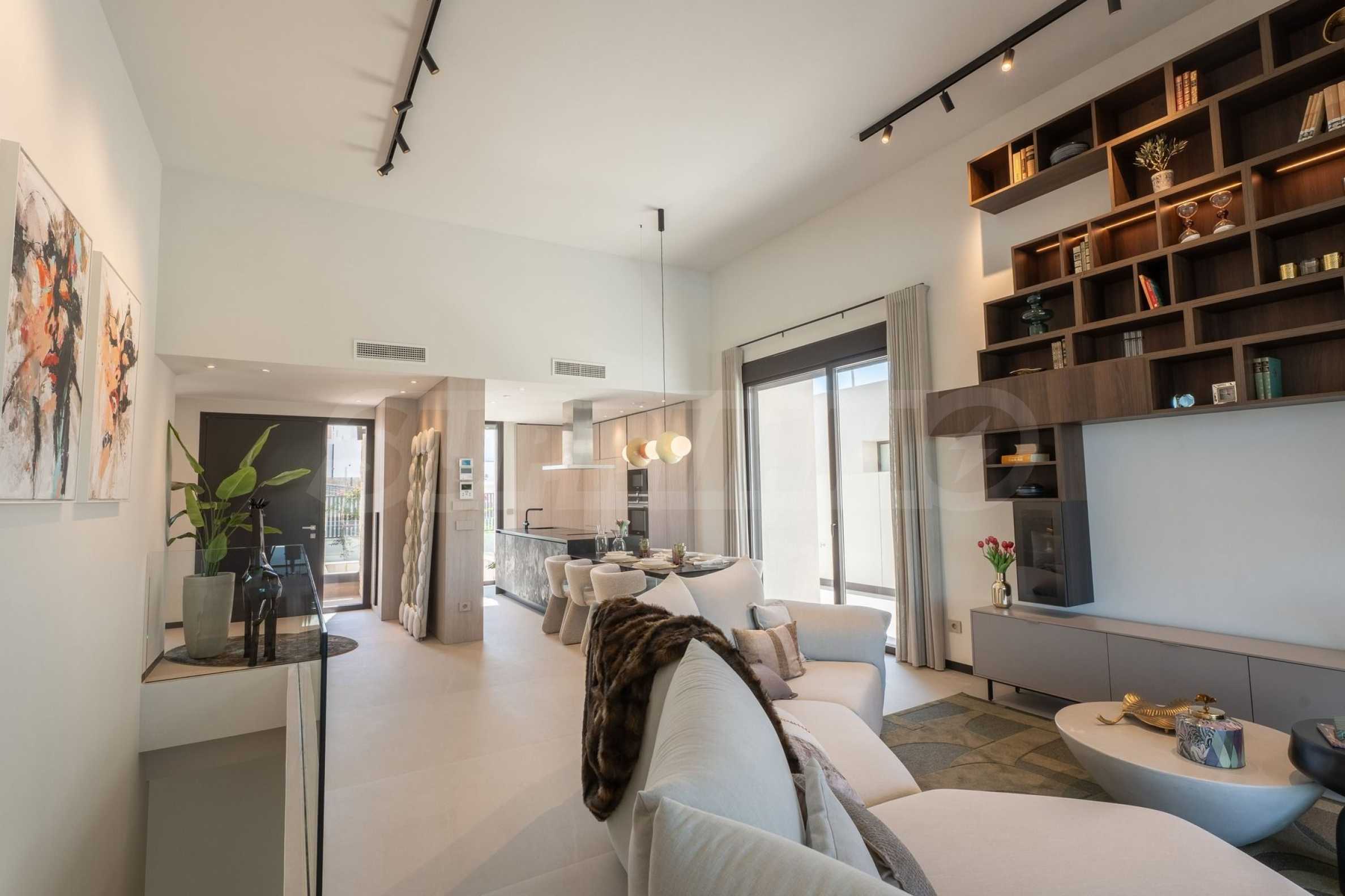 Виллы предлагаются «под ключ» — с входными и межкомнатными дверями, напольными покрытиями, окнами из ПВХ, оборудованными кухнями и ванными комнатами. Высококачественные материалы в простых современных тонах позволяют создать интерьер, отражающий ваш индивидуальный стиль.