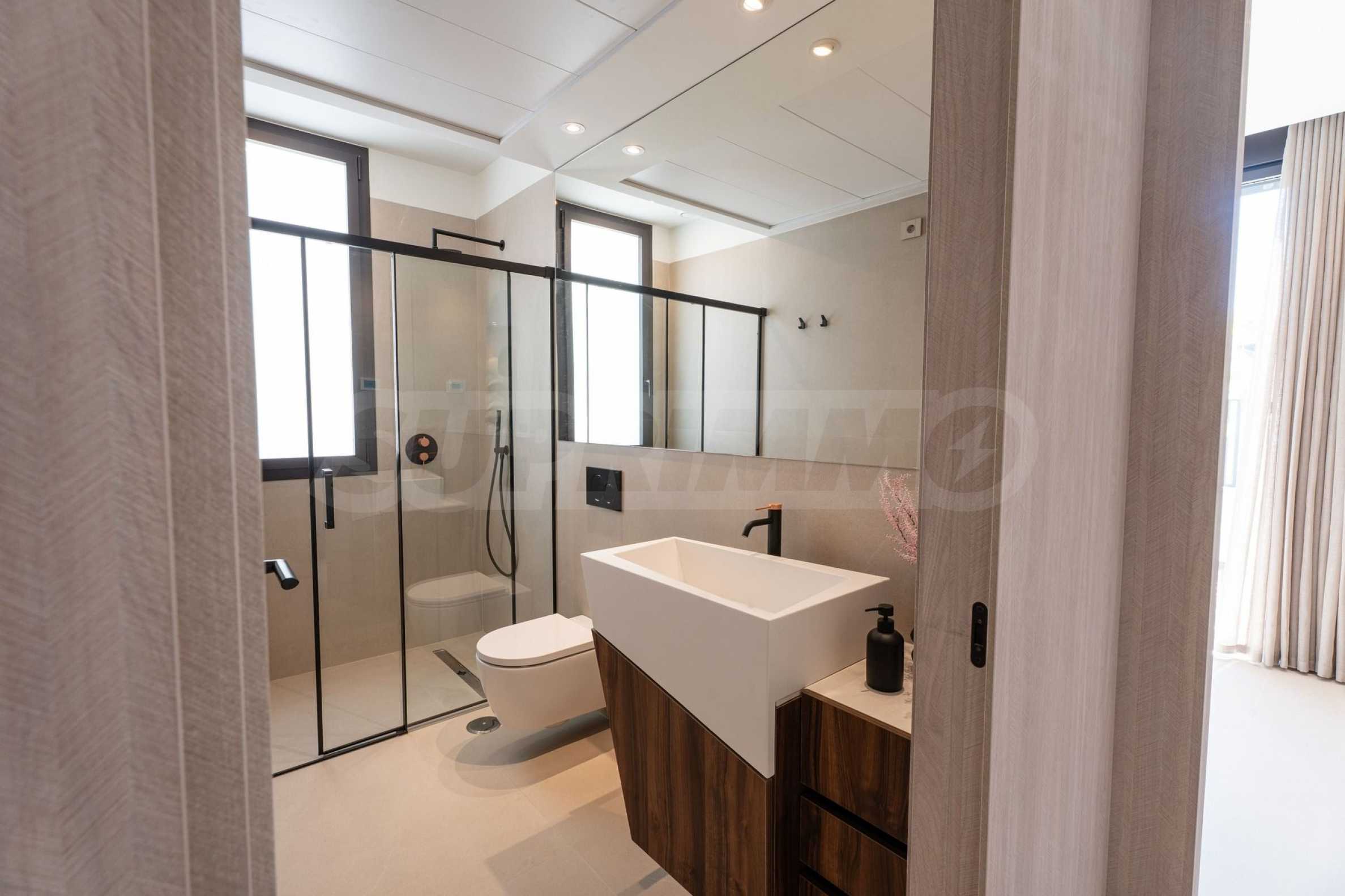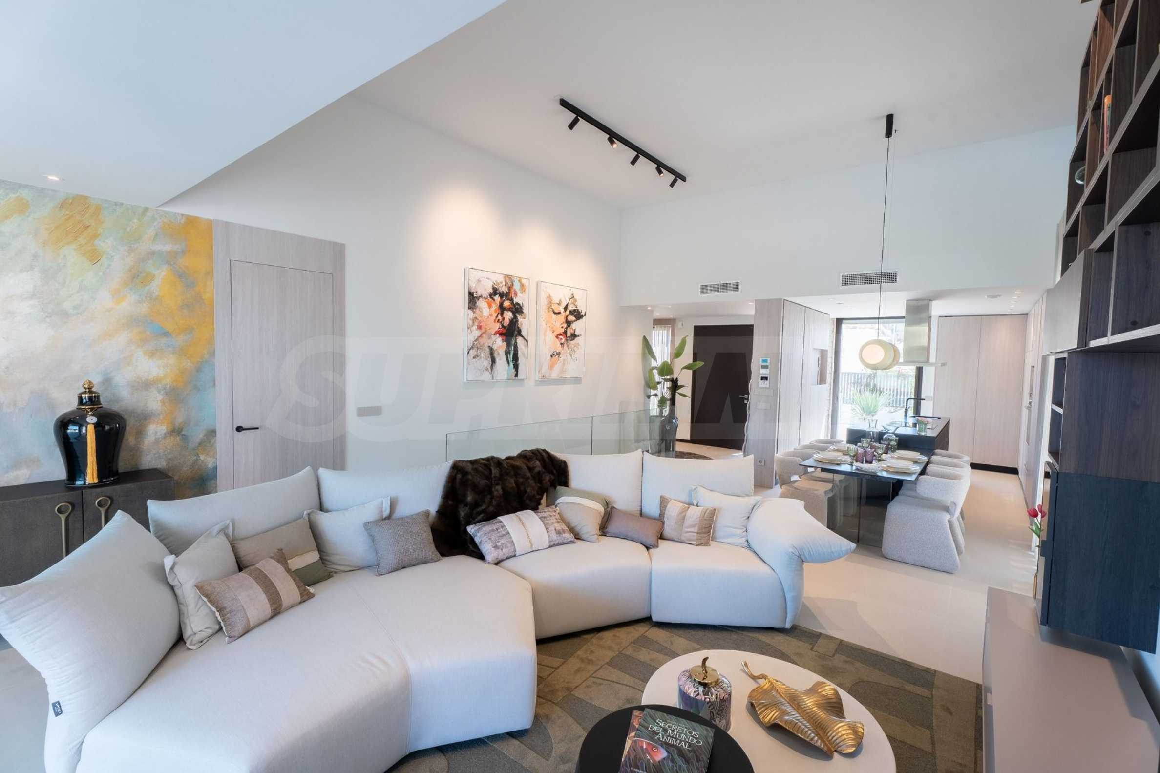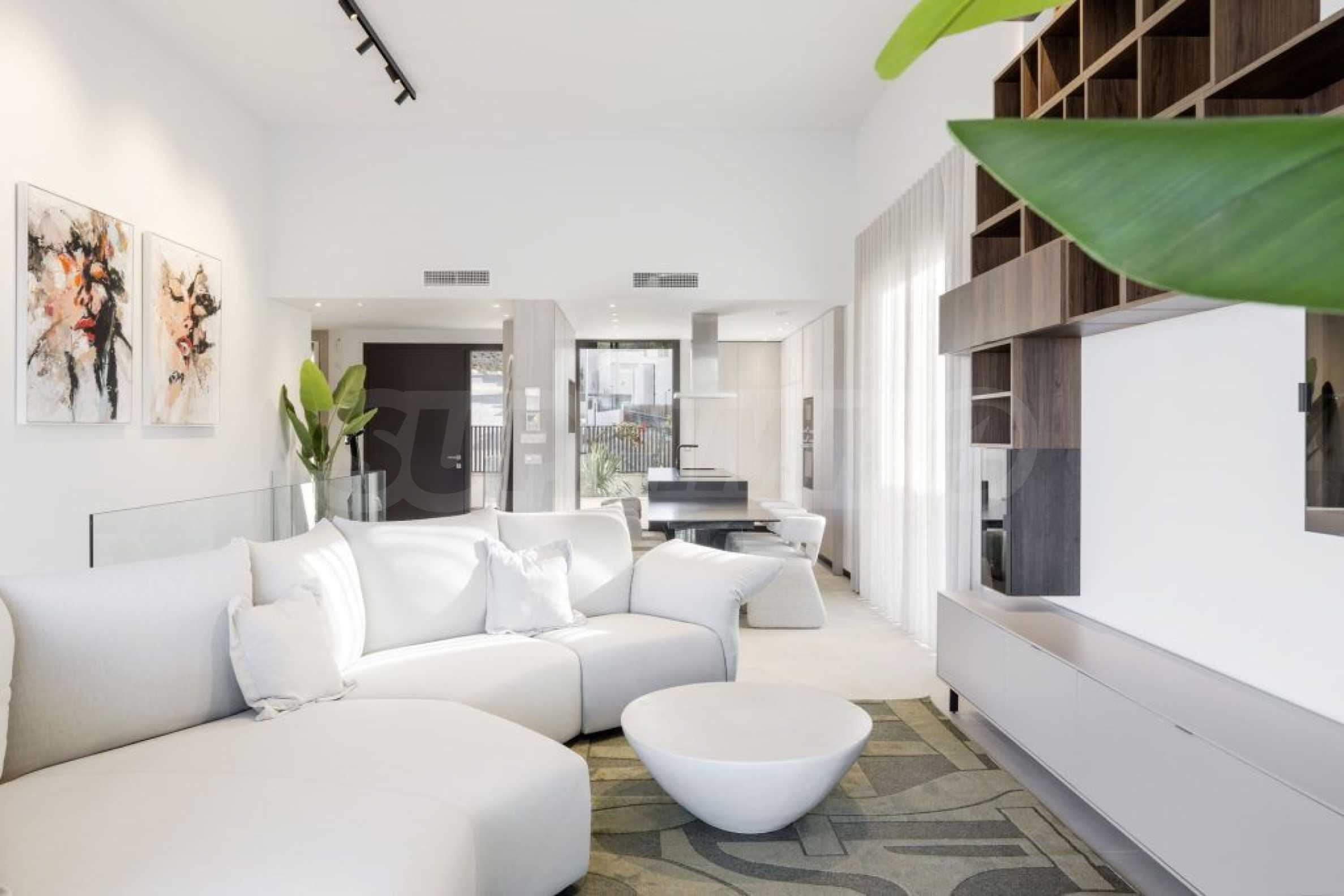Виллы предлагаются «под ключ» — с входными и межкомнатными дверями, напольными покрытиями, окнами из ПВХ, оборудованными кухнями и ванными комнатами. Высококачественные материалы в простых современных тонах позволяют создать интерьер, отражающий ваш индивидуальный стиль.