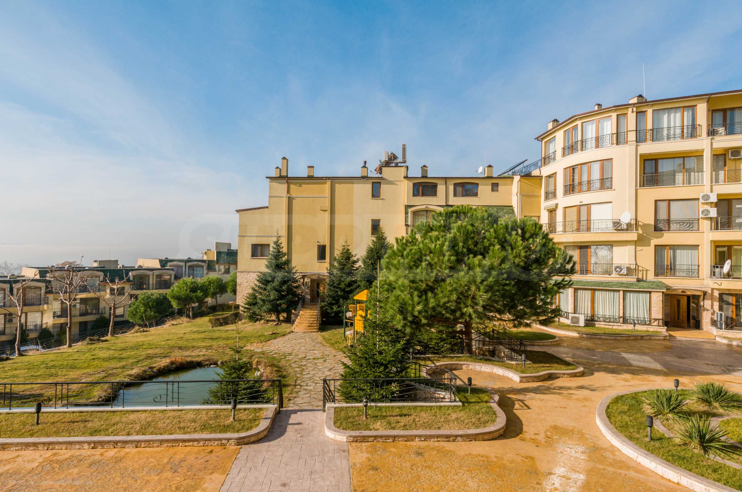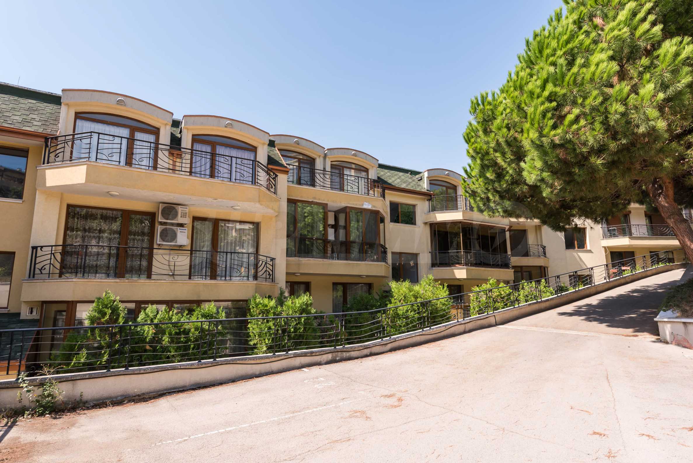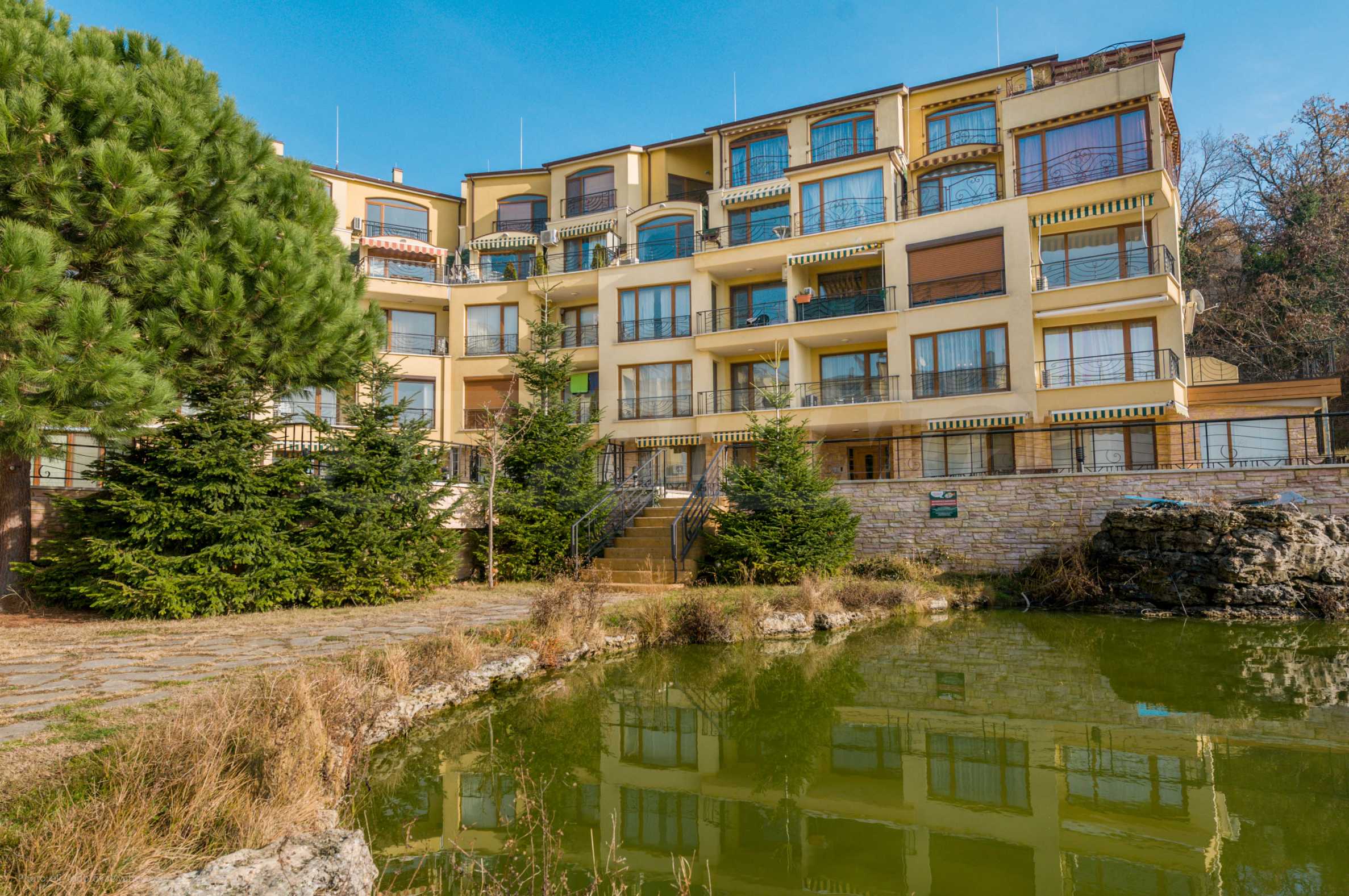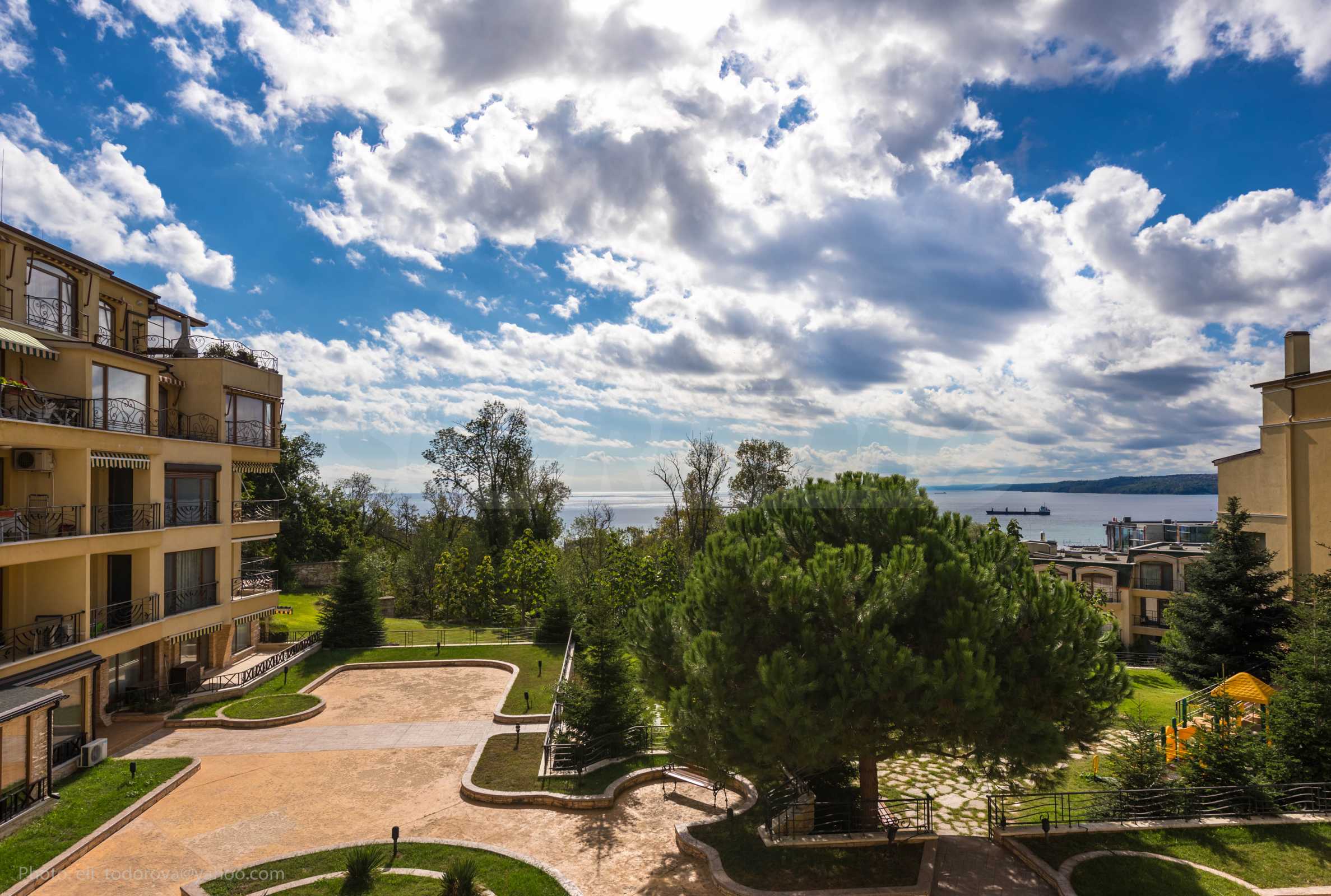 Расположение комплекса удобное и престижное: рядом автобусная остановка. В районе есть частная школа, ресторан, два мини-маркета, множество бутик-отелей и вилл, а также резиденция «Евксиноград» (900 м пешком) и пляж (850 м).