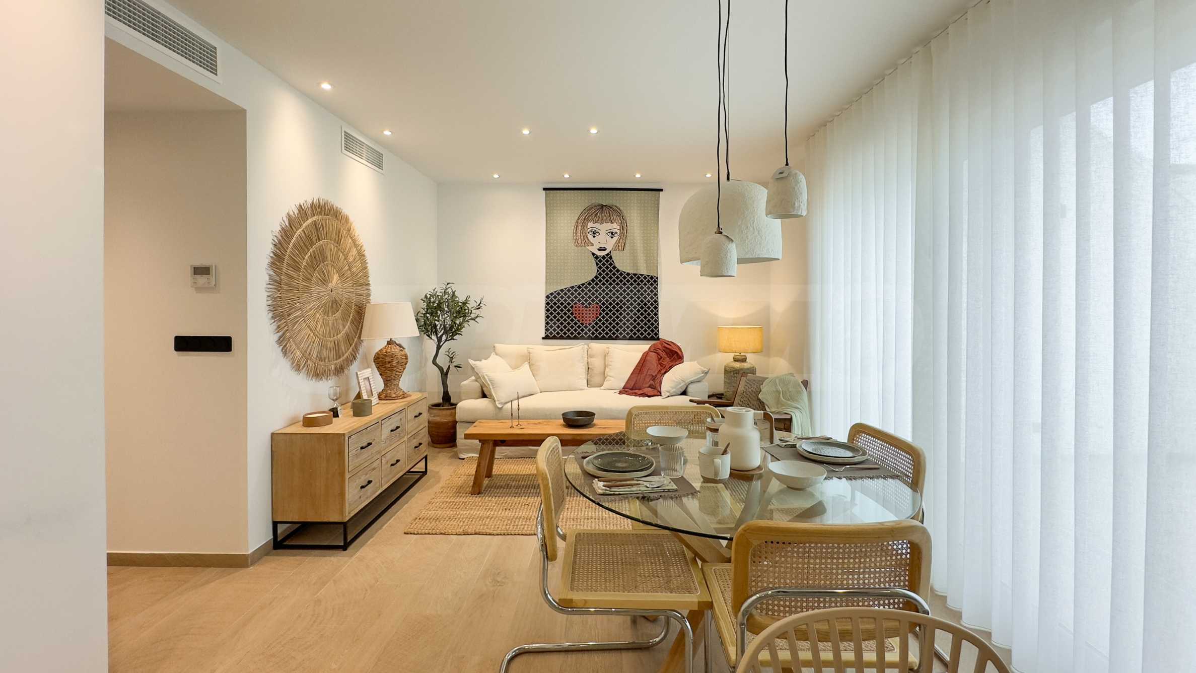 Представляем вам впечатляющую двухкомнатную квартиру, расположенную на втором этаже современного жилого дома. Общая площадь квартиры составляет 90,40 кв. м, из которых 17,25 кв. м отведены под просторную террасу для загара — прекрасное место для утреннего кофе или отдыха на свежем воздухе.