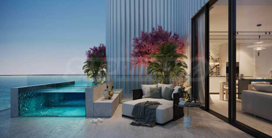 Войдя внутрь, вы окунётесь в атмосферу неподдельной элегантности. Полы из благородного дерева и стены с декоративными каменными акцентами создают гармонию природы и современного дизайна. Окна с раздвижными механизмами открывают просторные террасы, превращая их в естественное продолжение дома. Каждая терраса — настоящий оазис для отдыха с собственным бассейном, выполненным из камня и стекла, — идеальный баланс современности и природы.