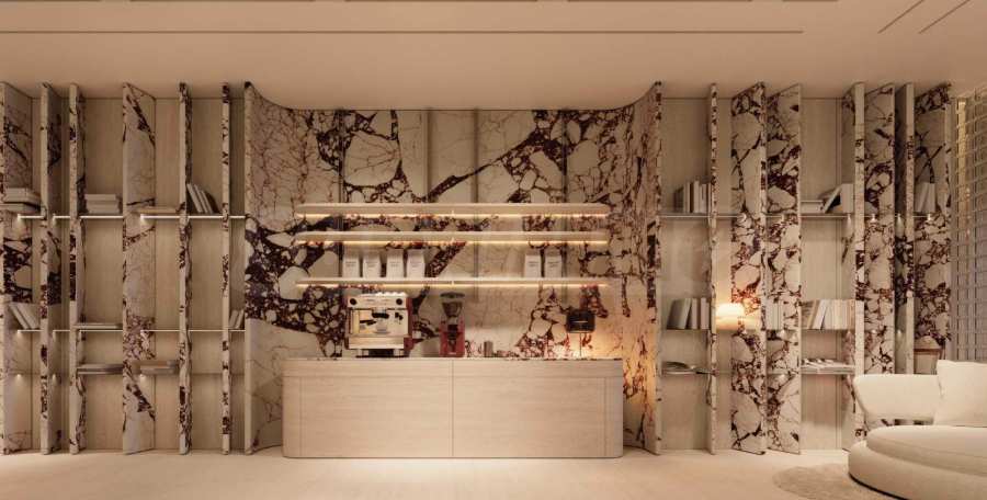 Лобби встречает гостей исключительно просторным и впечатляющим интерьером с меблировкую Cassina и стеклянными стенами чешского бренда Lasvit. В оформлении стен также использованы элементы из натурального камня, которые не только придают общему облику изысканность, но и создают ощущение естественной связи с природой. Ощущение уюта и комфорта окутывает вас в лаунж-зонах для отдыха и встреч с друзьями и соседями, а кофе-бар будет ждать вас каждый день, чтобы зарядиться энергией на целый день.