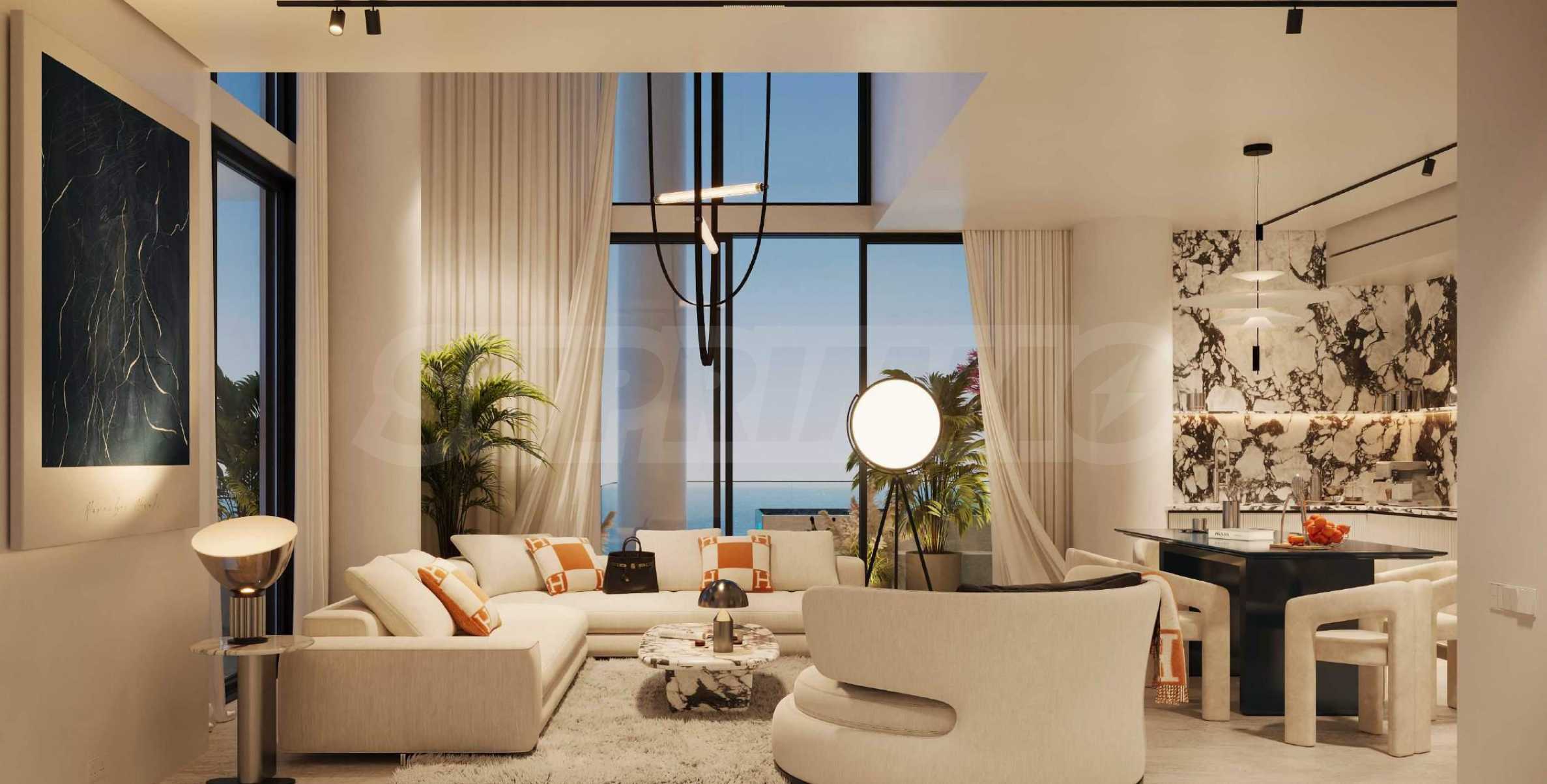 Если бы нам пришлось описать суть виллы «Дель Брунелло» одним словом, это, несомненно, простор. Площадь этих резиденций варьируется от 102 до впечатляющих 1538 кв. м, и они словно созданы для того, чтобы развернуть на сцене спектакль вашей жизни. Высокие потолки и панорамные окна открывают панорамные виды, окутывающие своей красотой: утро начинается с тихого плеска морских волн, а вечер заканчивается очарованием сияющего городского горизонта. В коллекции представлены двух-, трёх-, пяти- и многокомнатные апартаменты на одном или двух уровнях. В некоторых резиденциях предусмотрены отдельные комнаты для персонала – изысканная деталь, дополняющая ощущение абсолютной роскоши.