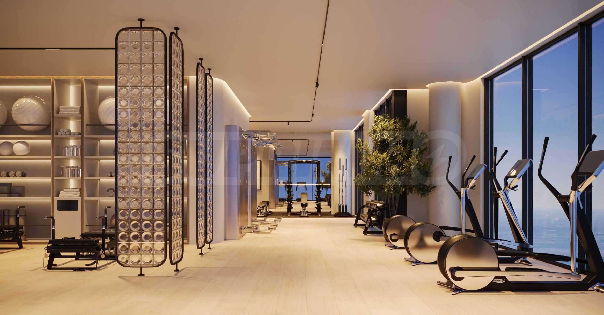В здании также есть полностью оборудованный тренажерный зал с высококлассным оснащением, а также зоны для пилатеса — популярного метода тренировок, доказавшего свою эффективность среди женщин. Также предусмотрены массажный кабинет и сауна — идеальное завершение настоящего СПА-процедуры, не выходя из дома.