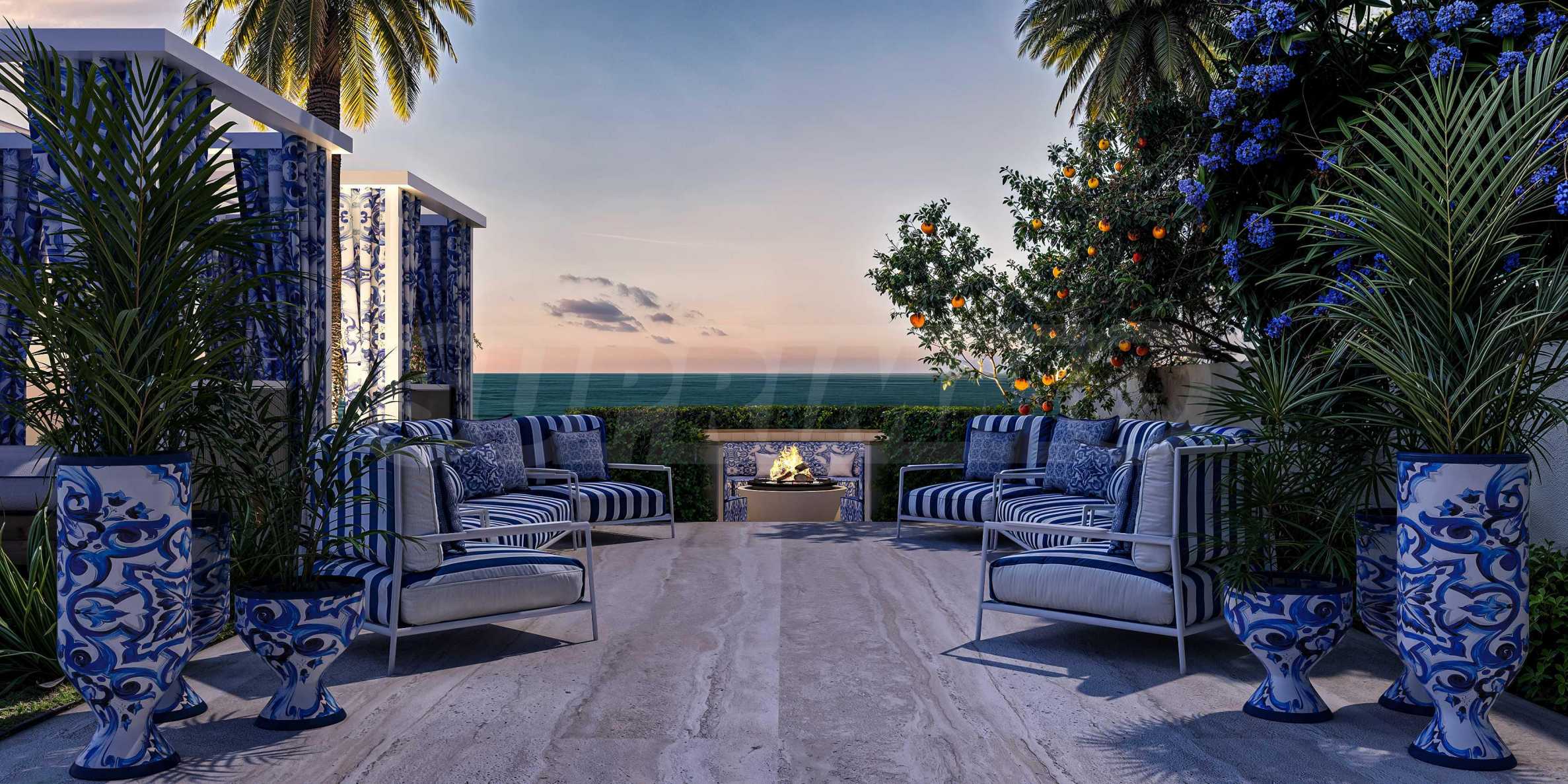 Расположенная у моря вилла Del Brunello предлагает доступ к частному пляжу, предназначенному только для жильцов. Дизайн зон отдыха, кабинок для переодевания, зонтиков и даже пляжных полотенец был доверен Dolce&Gabbana – итальянской иконе моды и дизайна интерьеров. Они также являются авторами концепции оформления бассейна, где средиземноморский стиль создает незабываемую атмосферу. Чтобы сохранить итальянский дух, в здании есть джелатерия с настоящим мороженым.