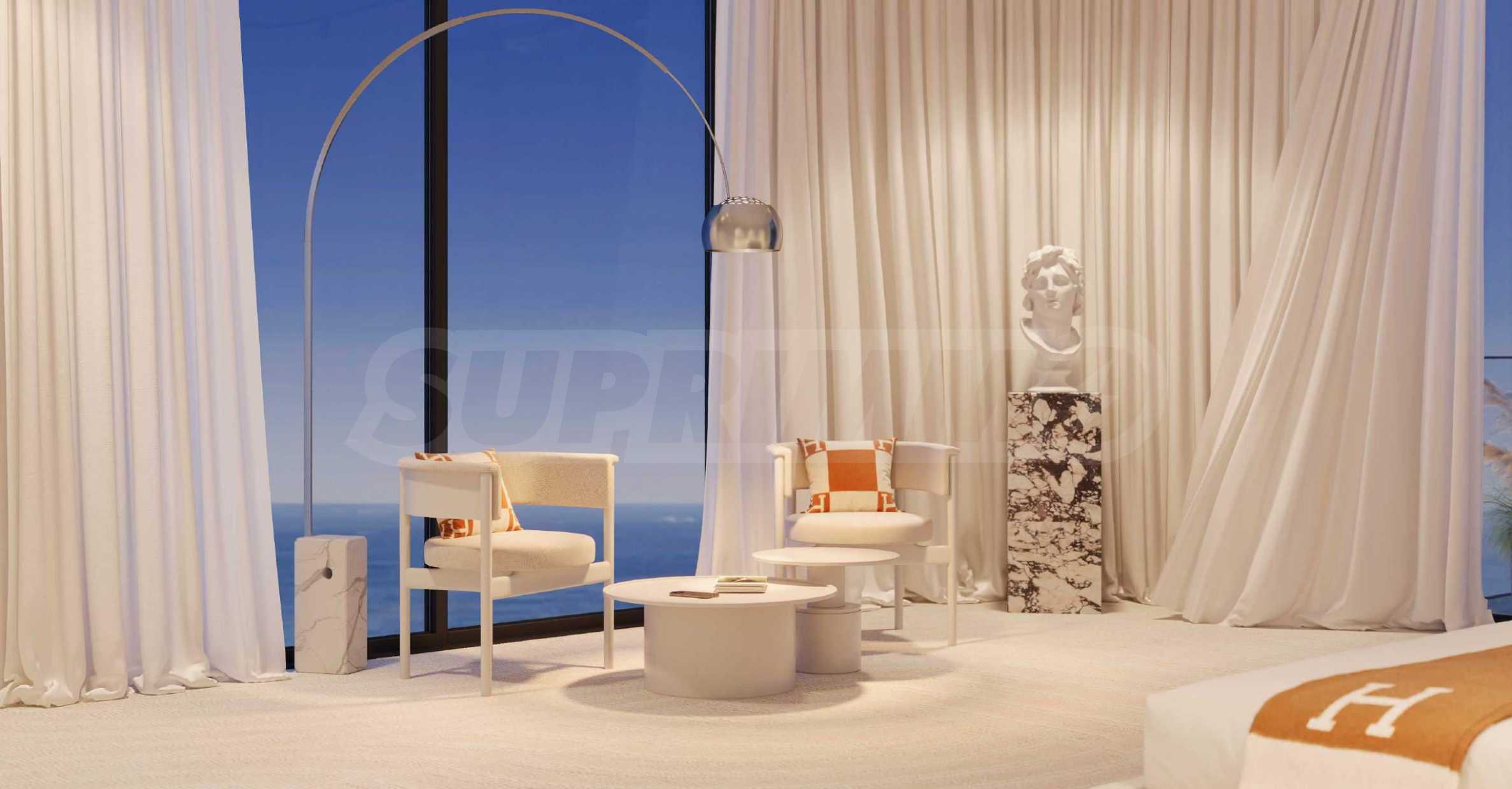 Мы решили представить вам резиденцию площадью 354,76 кв. м – пространство, в котором каждый сантиметр продуман до мелочей, чтобы воплотить в себе максимальный комфорт, изысканность и ощущение роскоши. Расположенные на двух уровнях и соединенные элегантной внутренней лестницей, апартаменты впечатляют своей функциональной и гармоничной планировкой. На первом этаже вы найдете великолепную гостиную с кухней и столовой, две просторные спальни с собственными ванными комнатами и гардеробными, а также еще две спальни с собственными ванными комнатами и выходом на солнечную террасу. На втором этаже расположена комната для вашего личного персонала с собственной ванной комнатой – изысканная деталь, которая усиливает ощущение комфорта, уединения и абсолютной конфиденциальности для всех жильцов. Высокие потолки и панорамные окна открывают захватывающие панорамные виды – утро начинается с гармонии морских волн, а вечер заканчивается волшебством сверкающего городского горизонта.