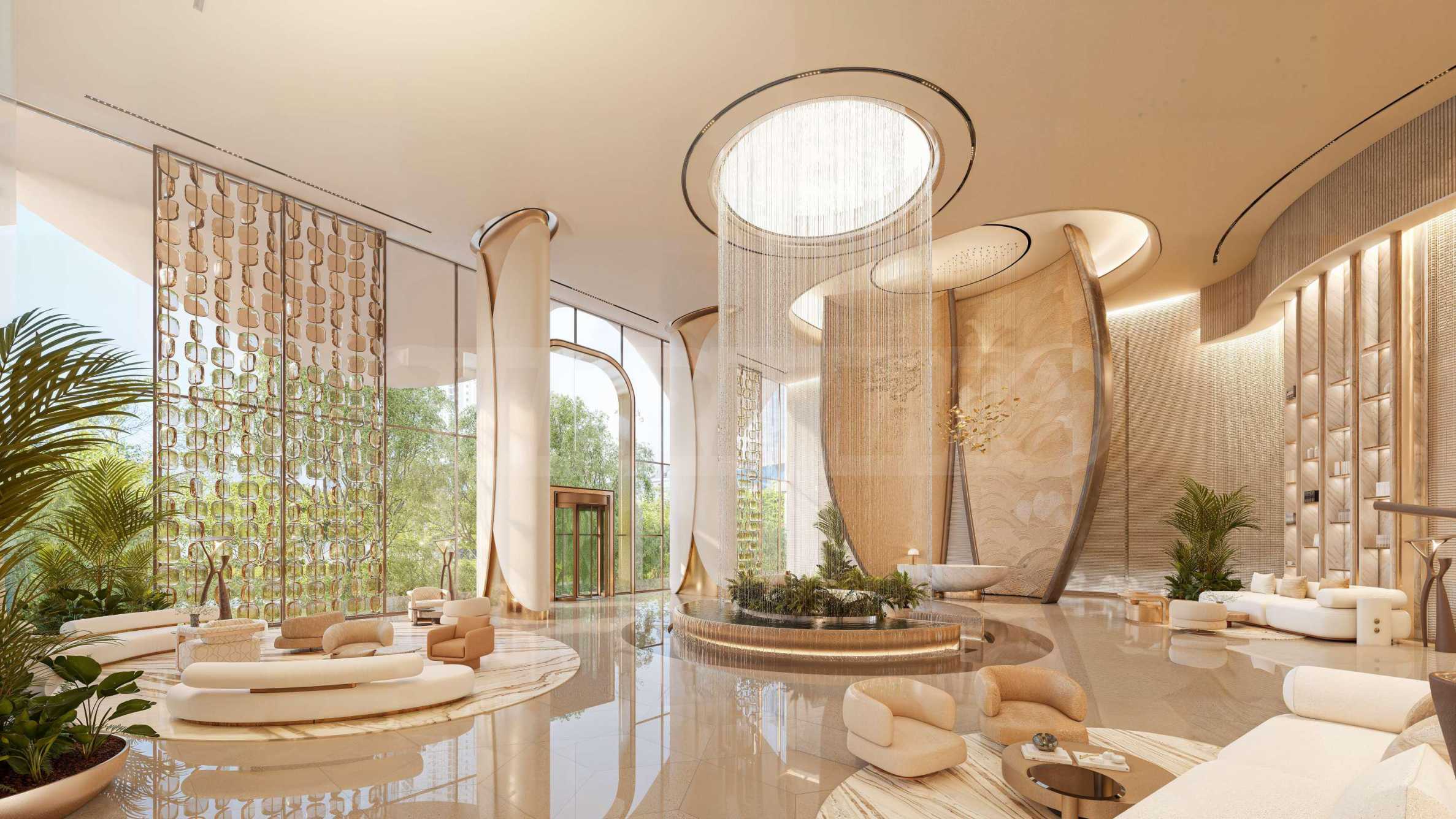Башня, возвышающаяся на впечатляющие 60 этажей, поражает изысканной архитектурой и вниманием к каждой детали. Расположенная прямо на берегу моря, она сияет днем и отражает городские огни ночью, становясь символом элегантности и вневременного стиля. Внешний дизайн сочетает в себе плавные изгибы стекла и металла, дополненные изысканными декоративными акцентами, которые сразу же привлекают внимание. Помимо подиумных уровней, здание также имеет особый двухсветный этаж в центре башни, который, помимо обогащения силуэта, также вмещает ряд удобств для жильцов.